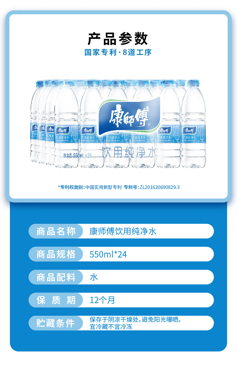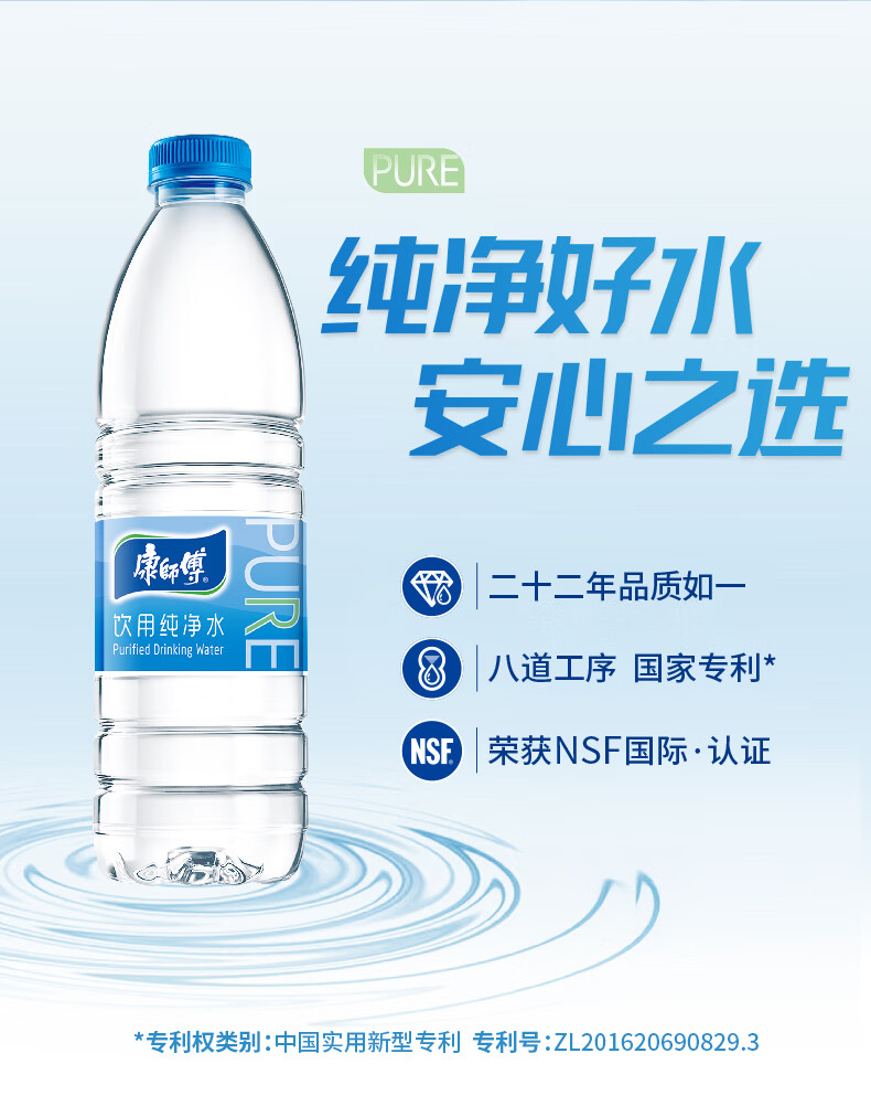 康师傅饮用纯净水550ml*24瓶 饮用水家庭办公用水 整箱装 热门商品