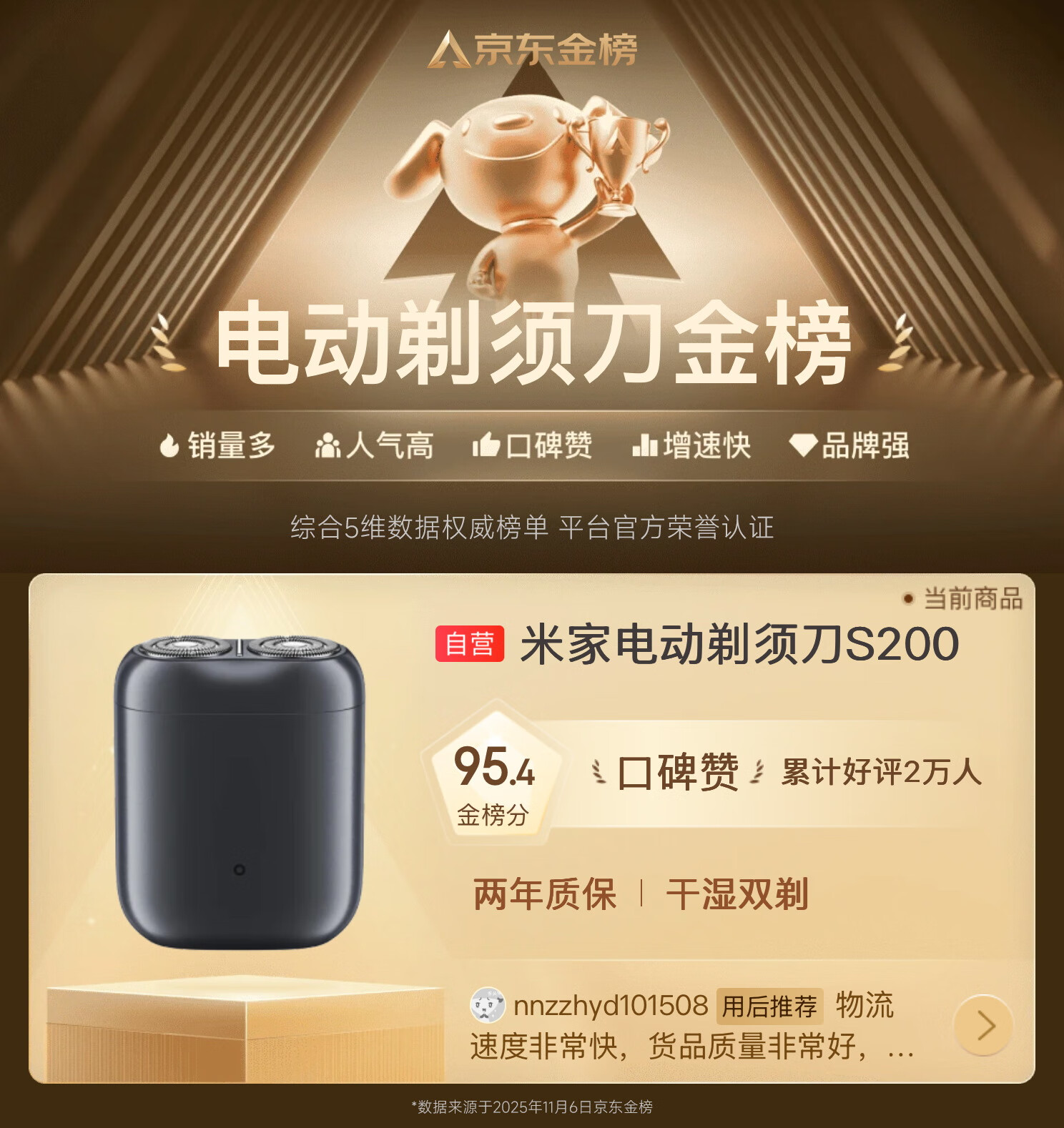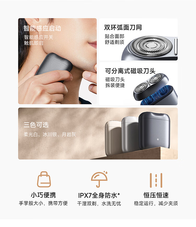 米家【年货礼物】电动剃须刀S200小米刮胡刀小巧便携迷你mini 智能感应剃须送男友新年礼物推荐 月岩灰