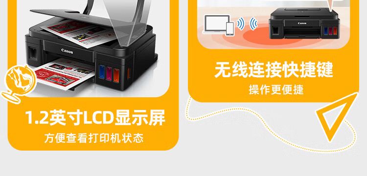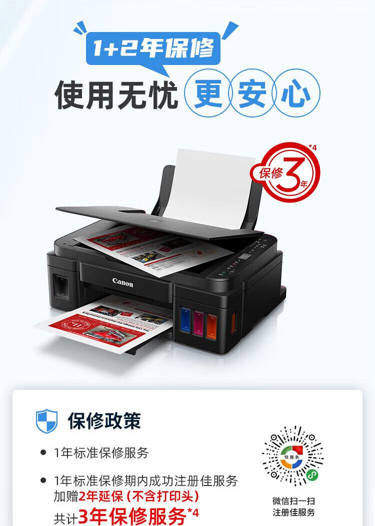 佳能(Canon)G3810大容量可加墨彩色多功能无线一体机(打印/复印/扫描/作业打印/微信远程WiFi 学生/家用)