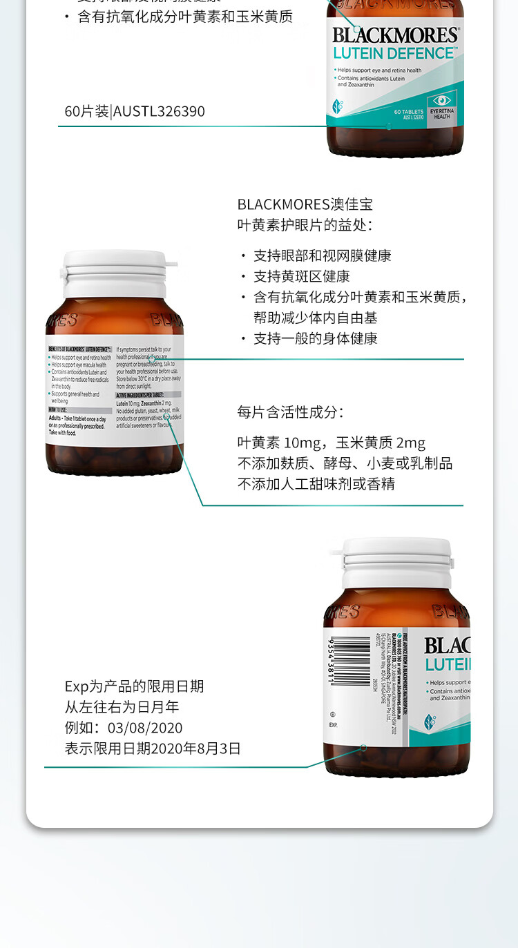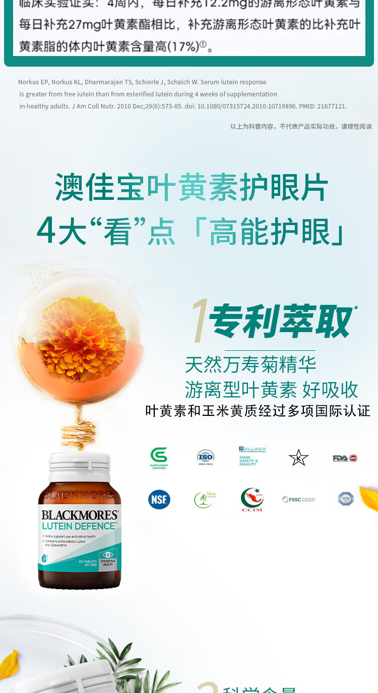 澳佳宝成人叶黄素护眼 含玉米黄质缓解眼睛酸涩疲劳 进口京东自营60片