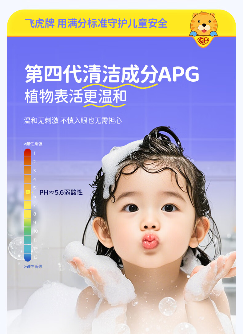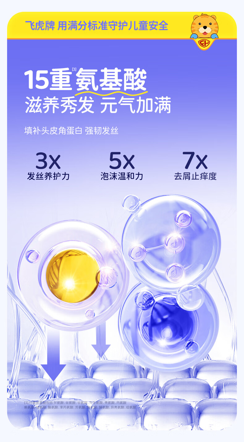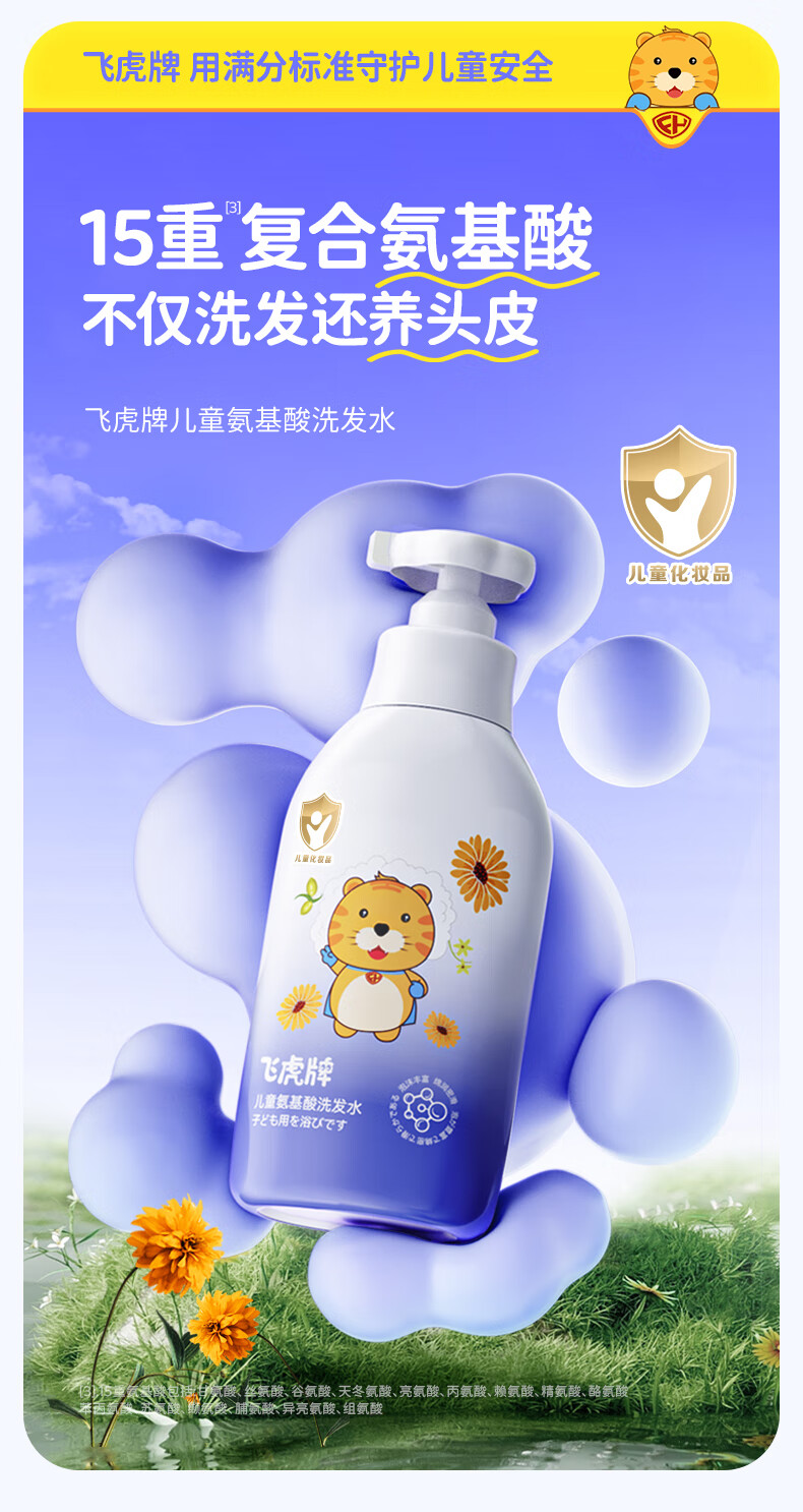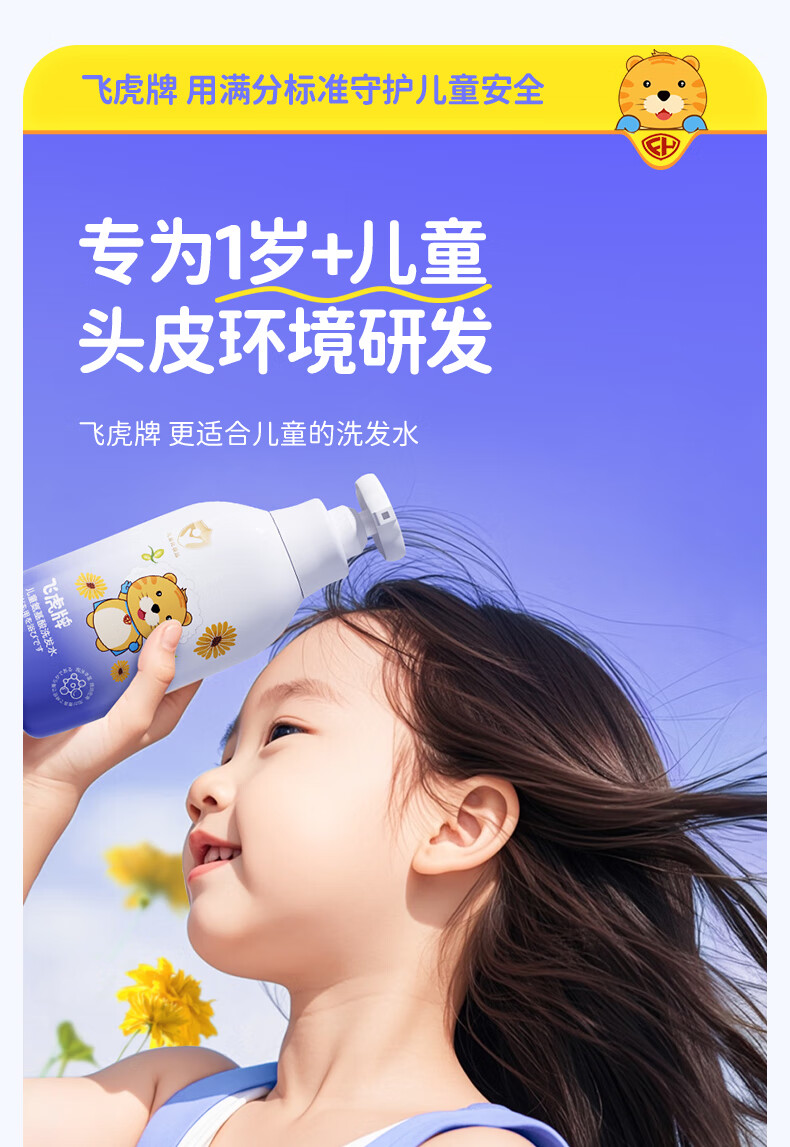 飞虎牌儿童氨基酸洗发水1-6-12-15岁男女孩柔顺去屑止痒去油温和300g