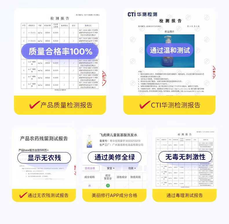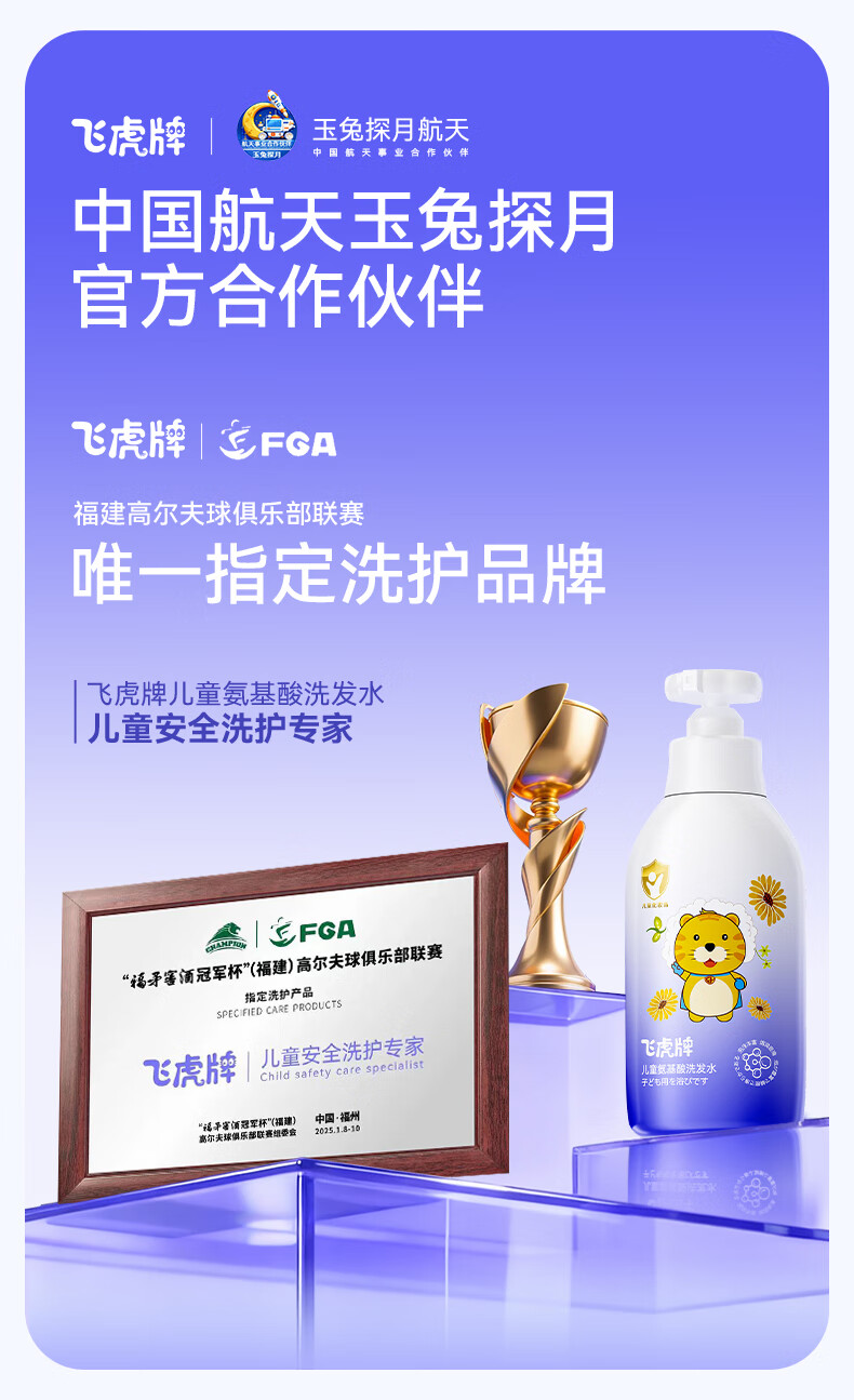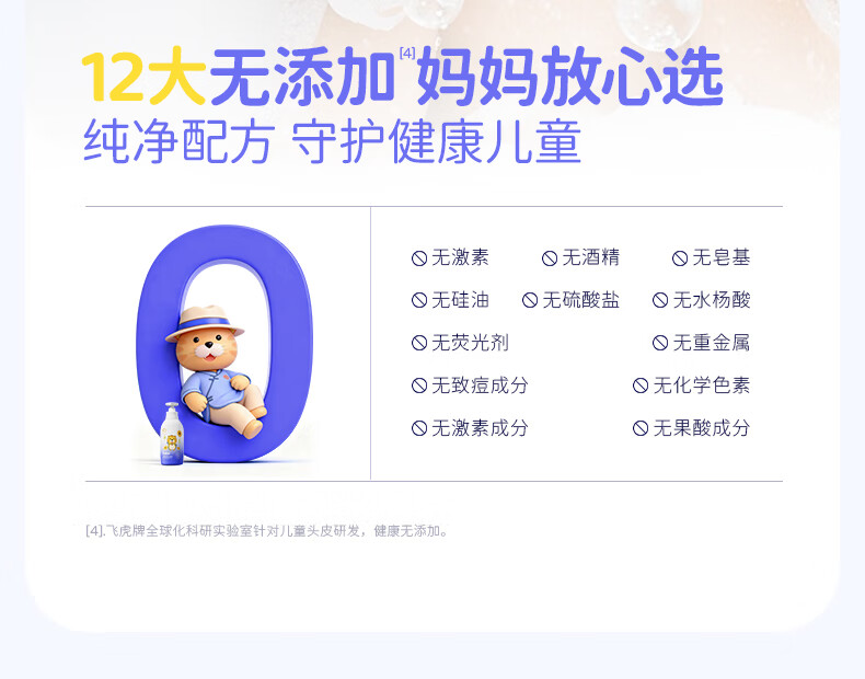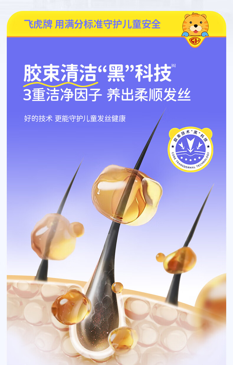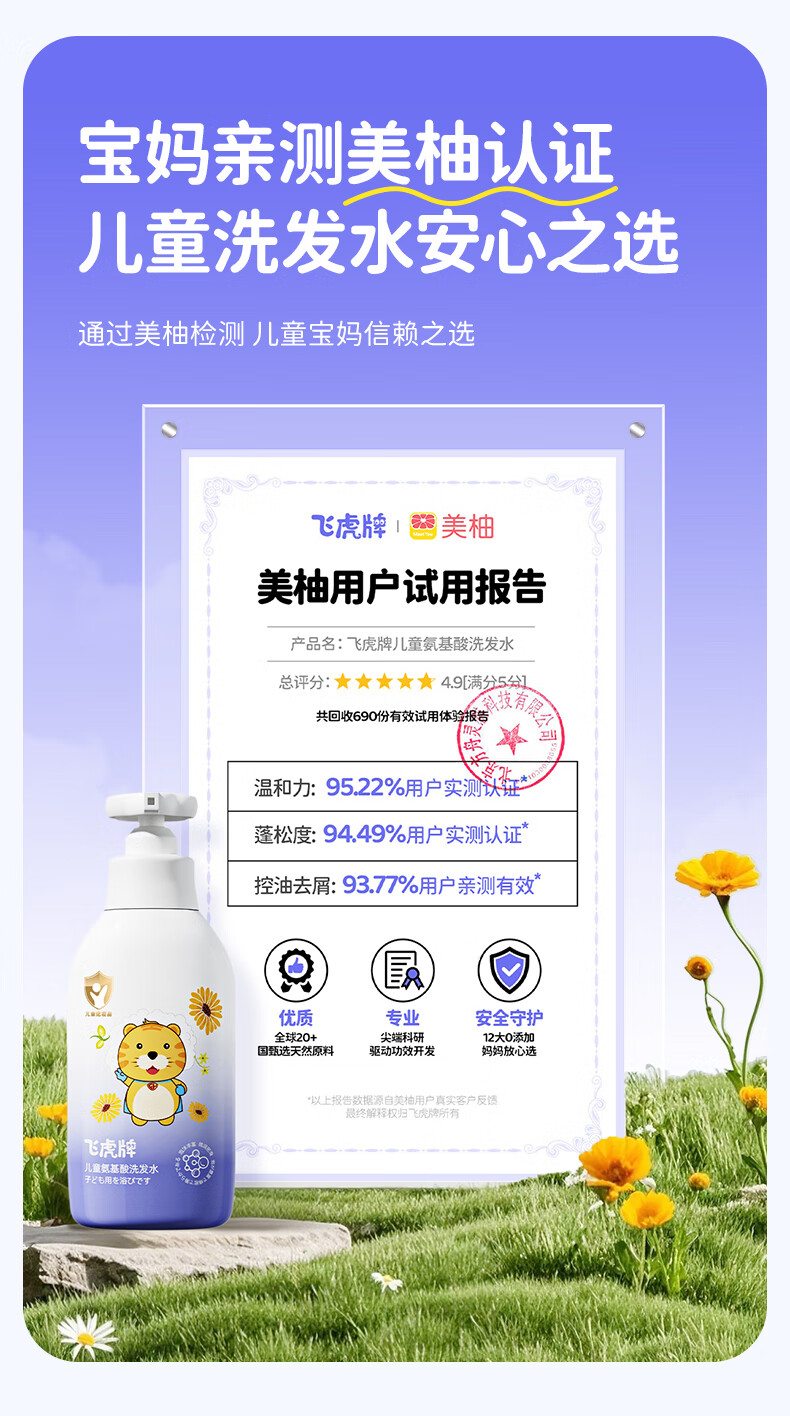 飞虎牌儿童氨基酸洗发水1-6-12-15岁男女孩柔顺去屑止痒去油温和300g