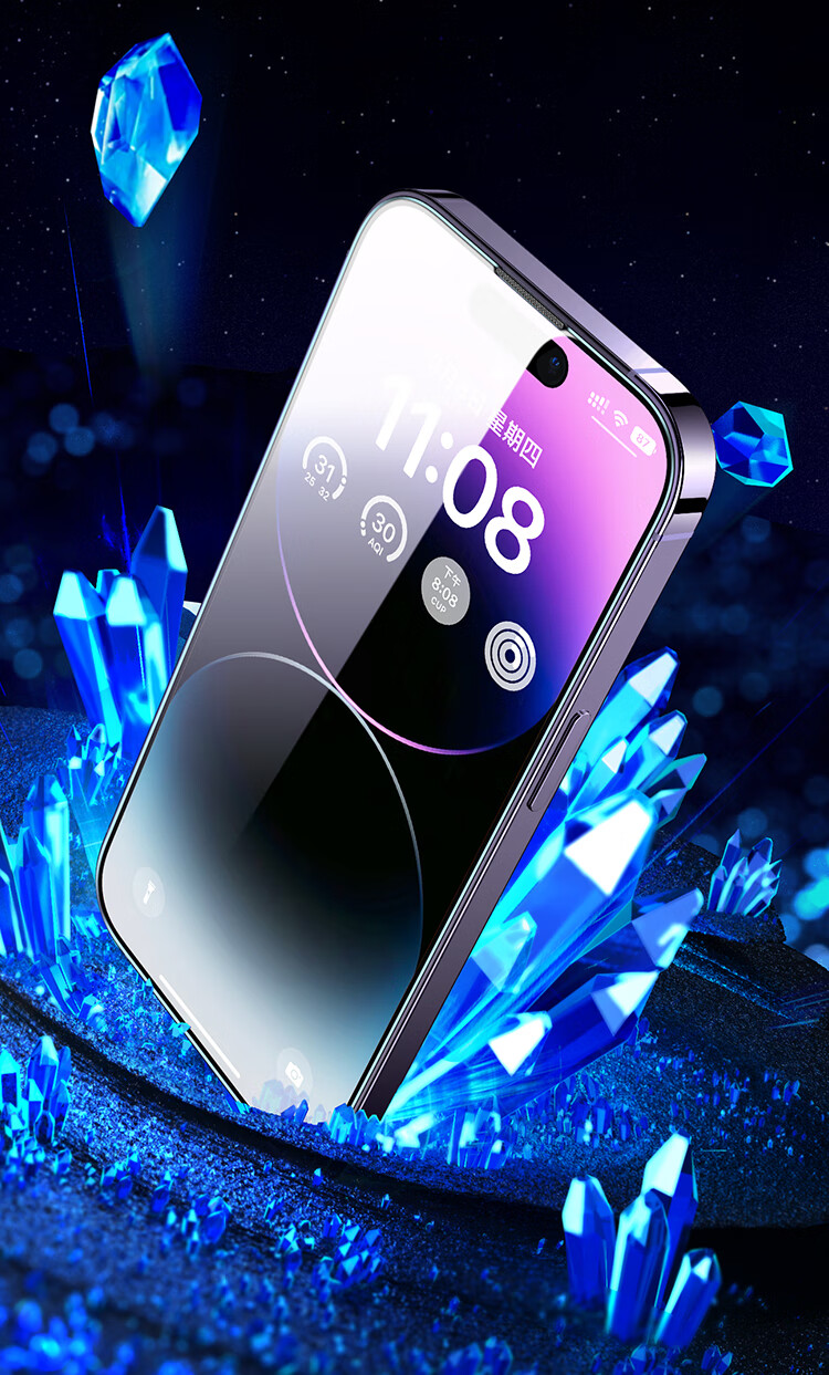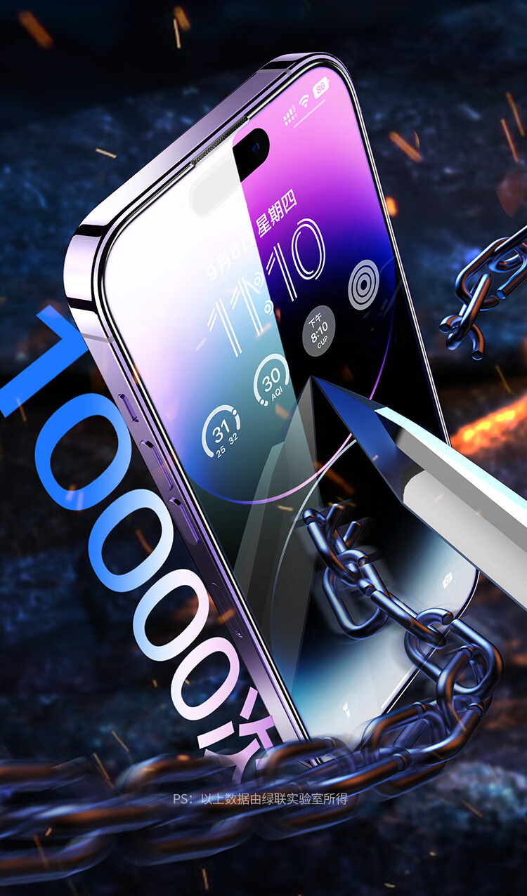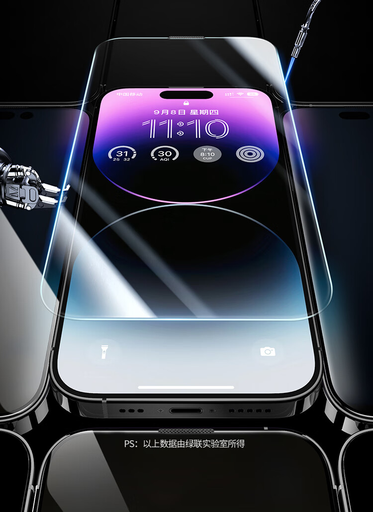 绿联 适用苹果14Pro钢化膜iPhone14Pro手机膜高清全屏覆盖超薄防指纹防摔保护膜-2片装