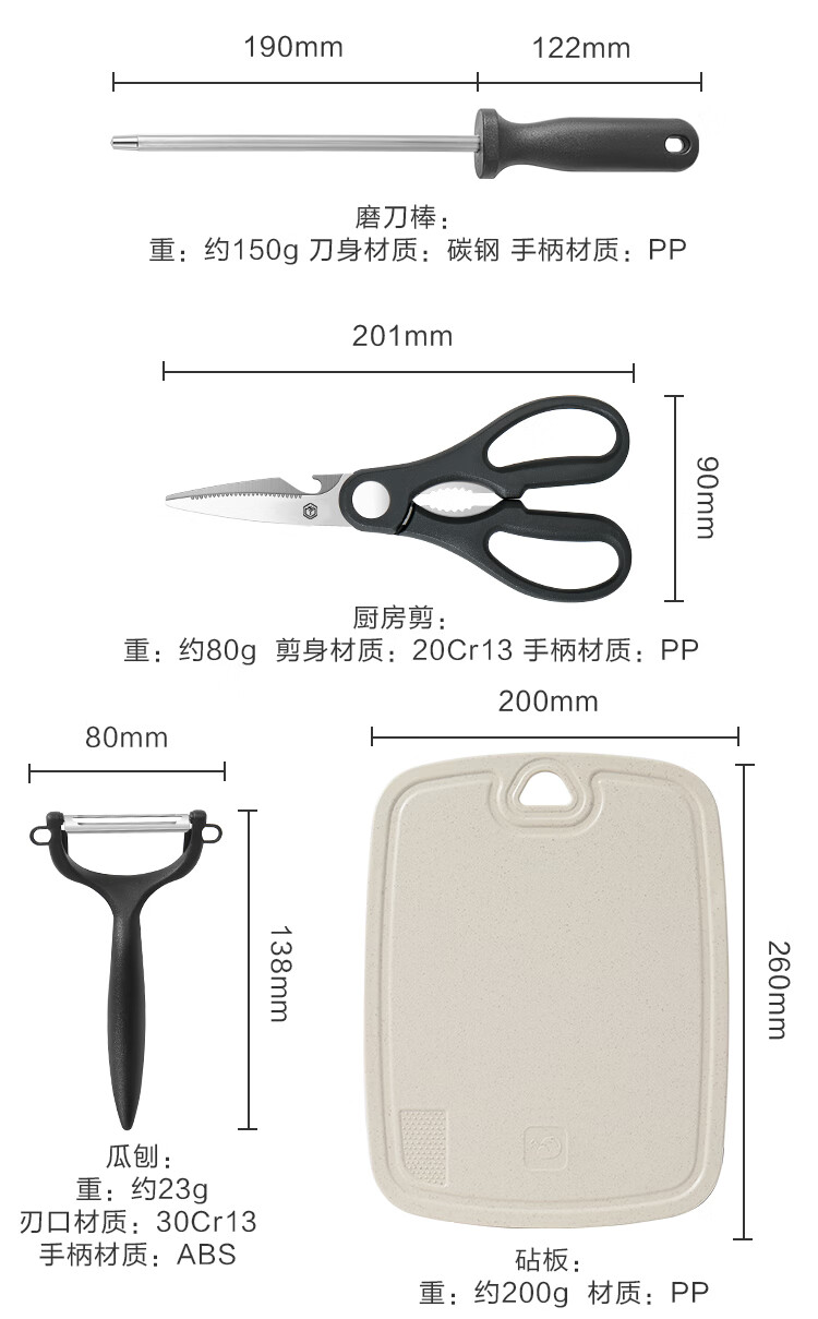 京东京造 刀具全套 菜刀菜板厨房水果刀砍骨切片套装 乌檀木10件套