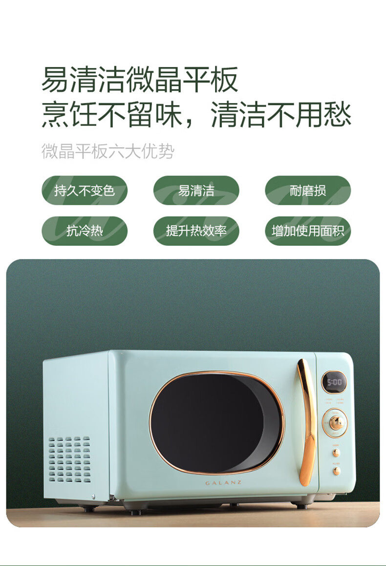 格兰仕微波炉家用烤箱一体机复古奶油风高颜值平板易清洁智能菜单便捷操作速热光波炉 KABG 家庭优选 绿色