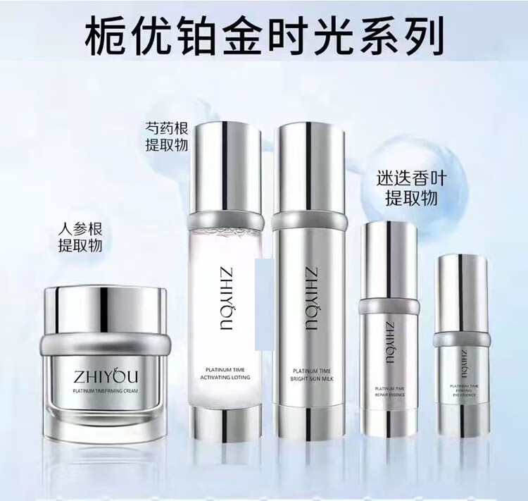栀优付爱宝铂金时光五件套水乳精华霜眼霜护肤套盒补水保湿水润 水100ml