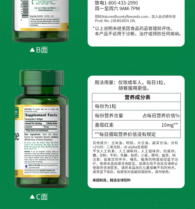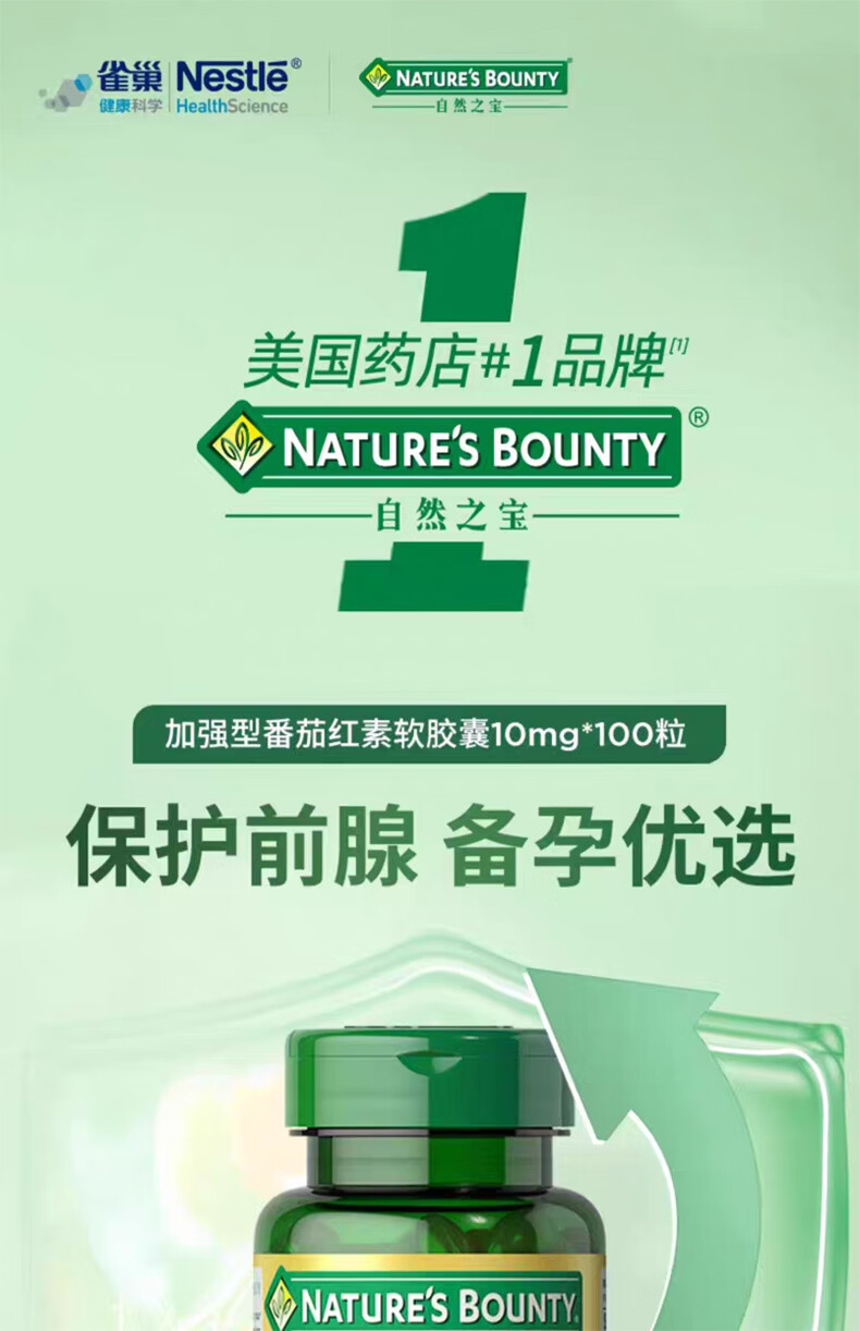 自然之宝高浓缩番茄红素软胶囊高纯度锯棕榈成人男士备孕保健美国原装进口 番茄红素100粒*1瓶体验装(保护前列腺健康)