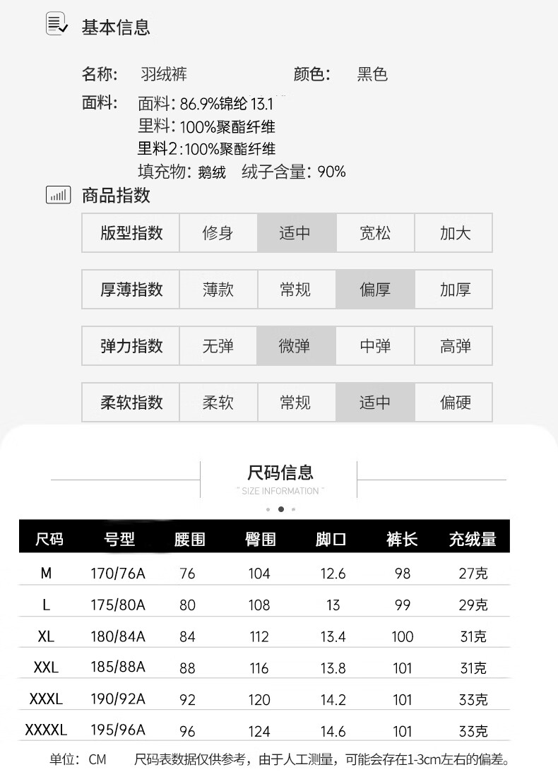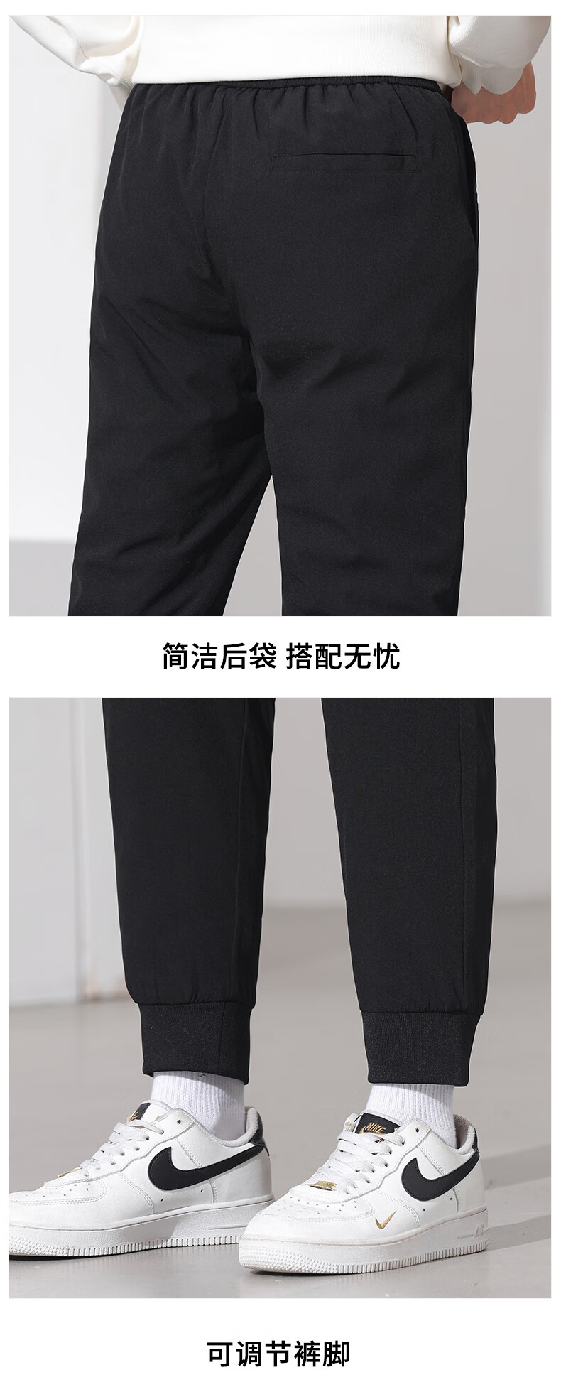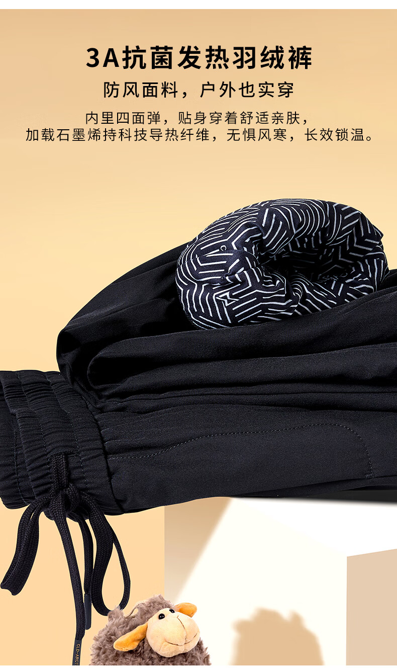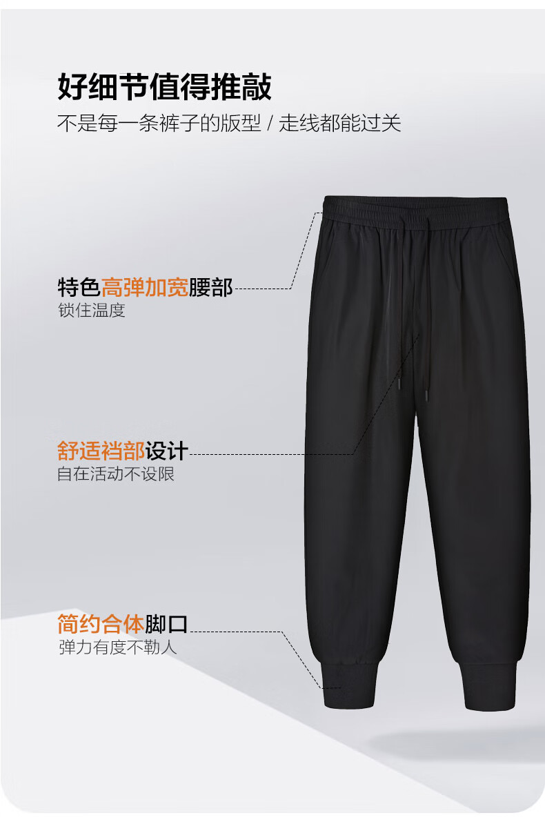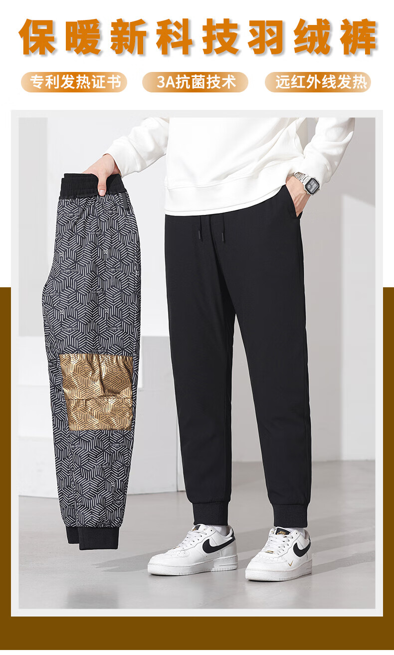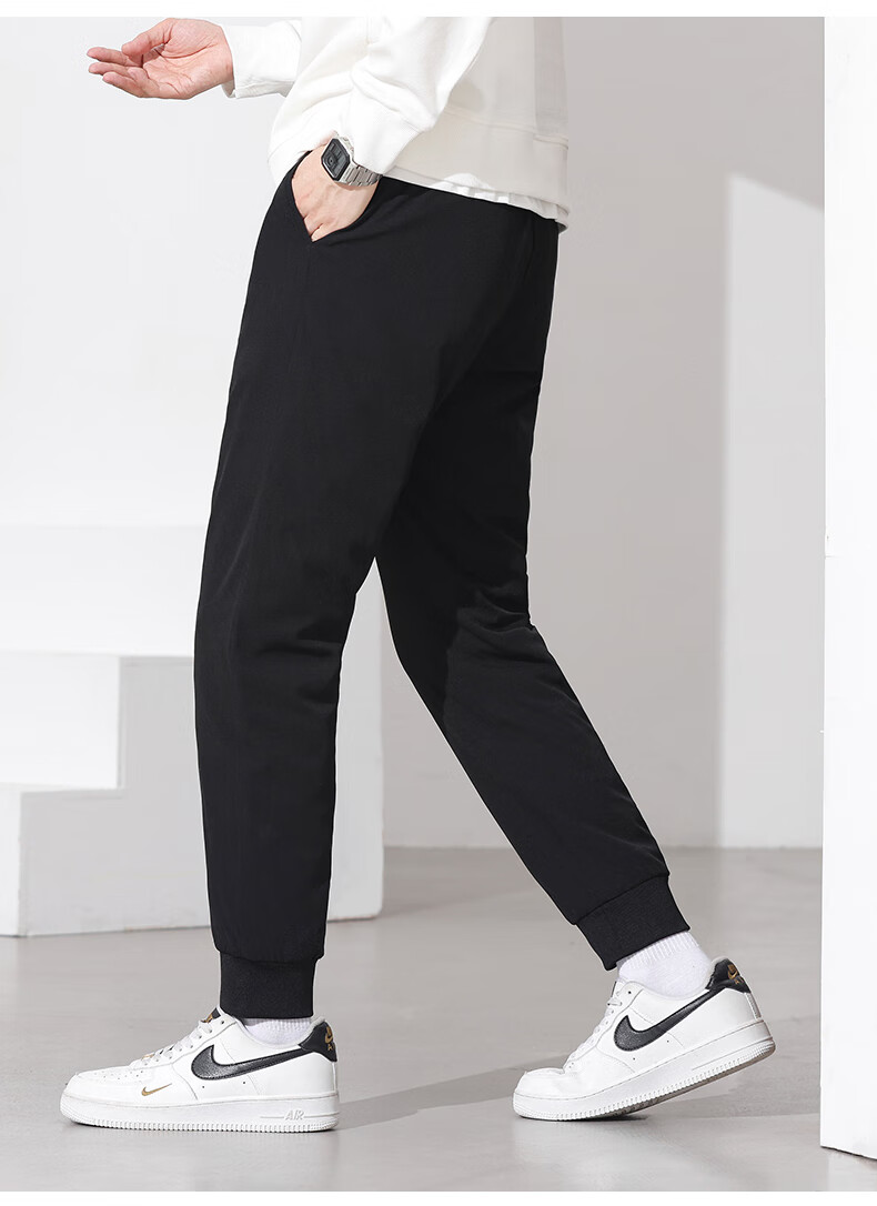 雪中飞黑色休闲户外羽绒裤冬季男士通勤简约百搭加厚保暖舒适鹅绒束脚裤 黑色 4XL
