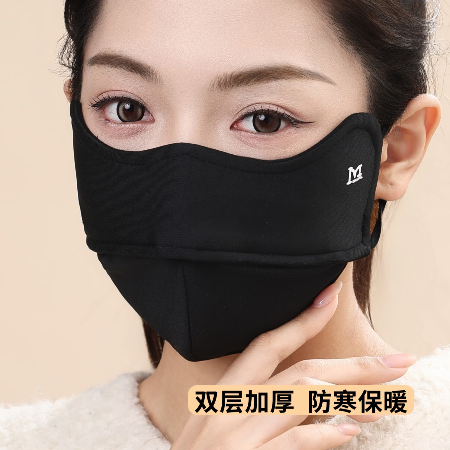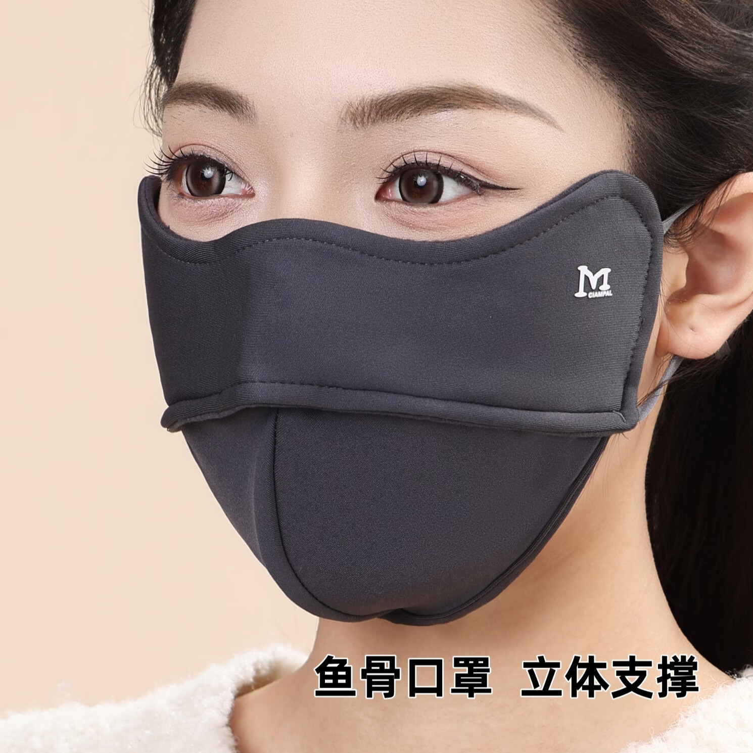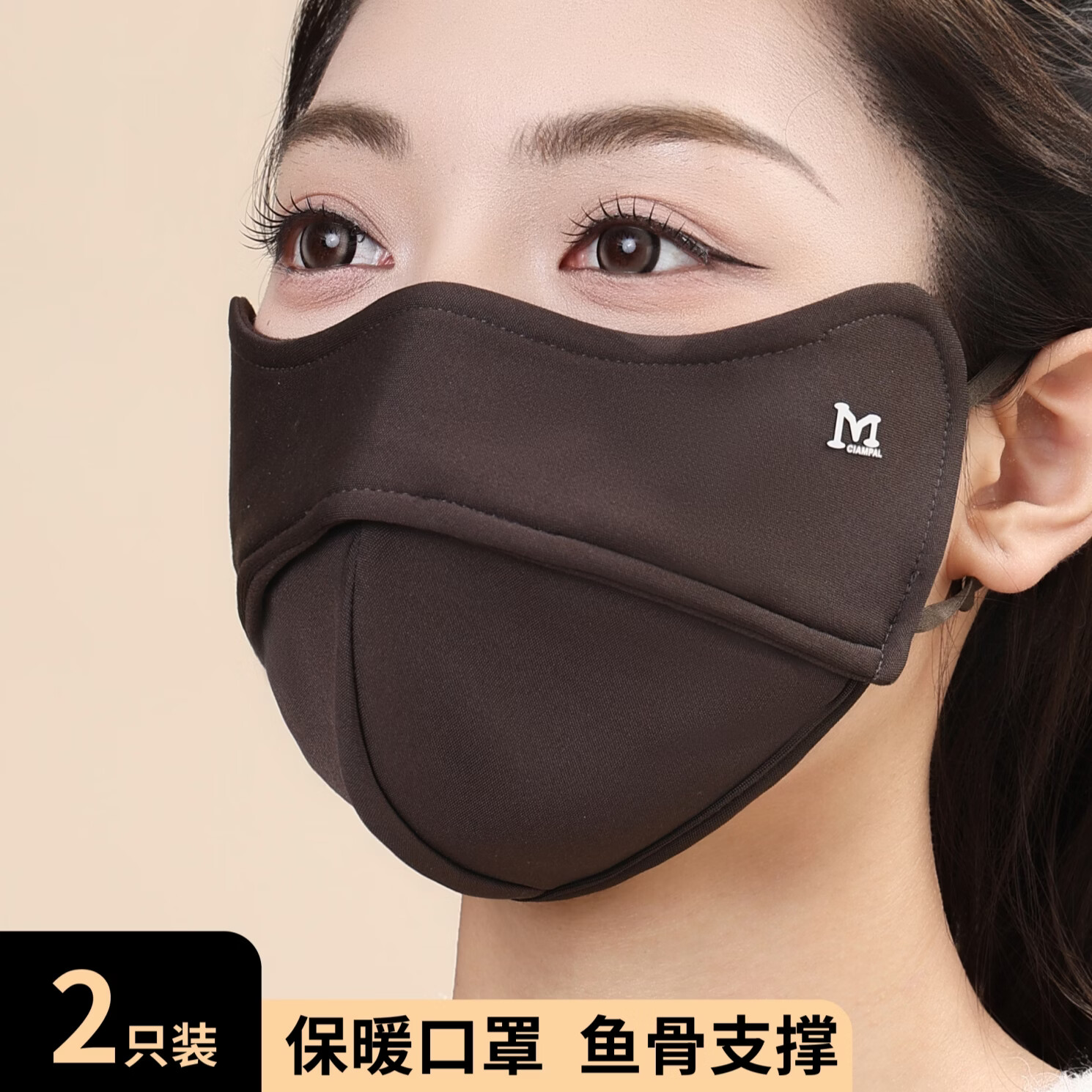 KUXA冬季保暖口罩女防风防寒高颜值不起雾加绒加厚户外骑行防风面罩男 保暖口罩1只装【咖色】鱼骨M