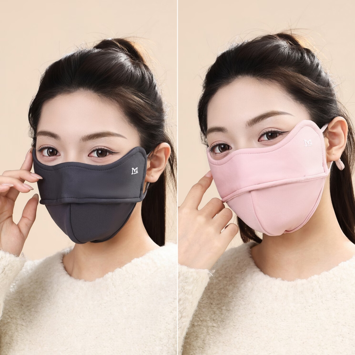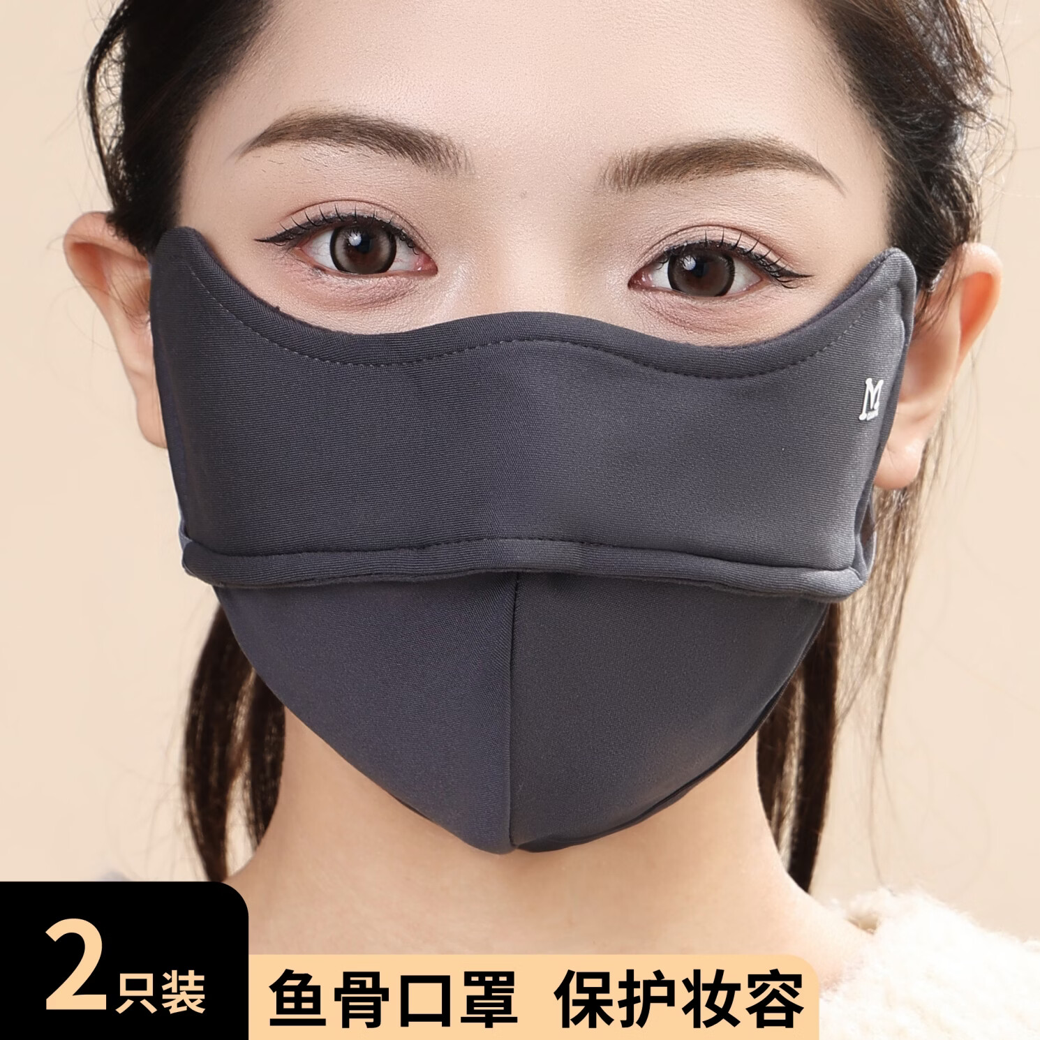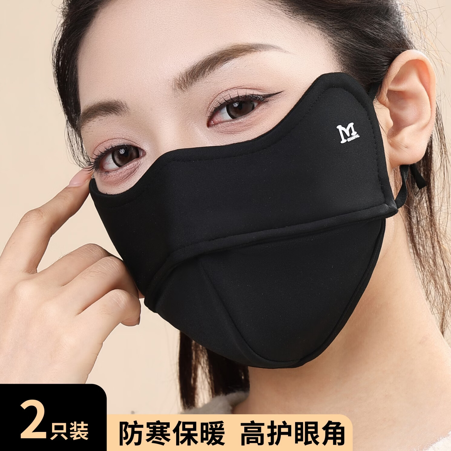KUXA冬季保暖口罩女防风防寒高颜值不起雾加绒加厚户外骑行防风面罩男 保暖口罩1只装【咖色】鱼骨M
