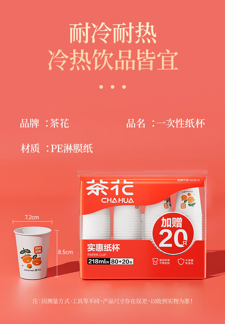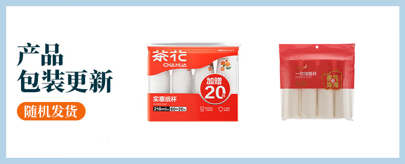 茶花(CHAHUA)纸杯一次性淋膜纸杯婚庆宴会商务酒店餐厅纸杯不含蜡批发 新年包装【100只】日常家用 新升级,加量不加价