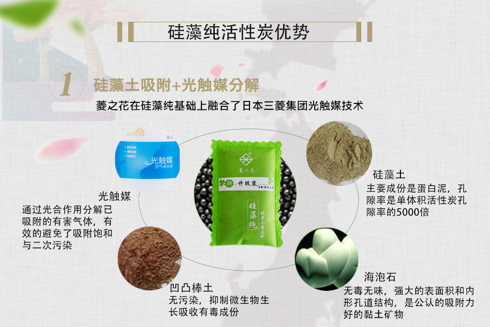 菱之花 硅藻纯活性炭除甲醛家用室内除味活性碳包新房新车去味活性炭包 100g*20包/2箱
