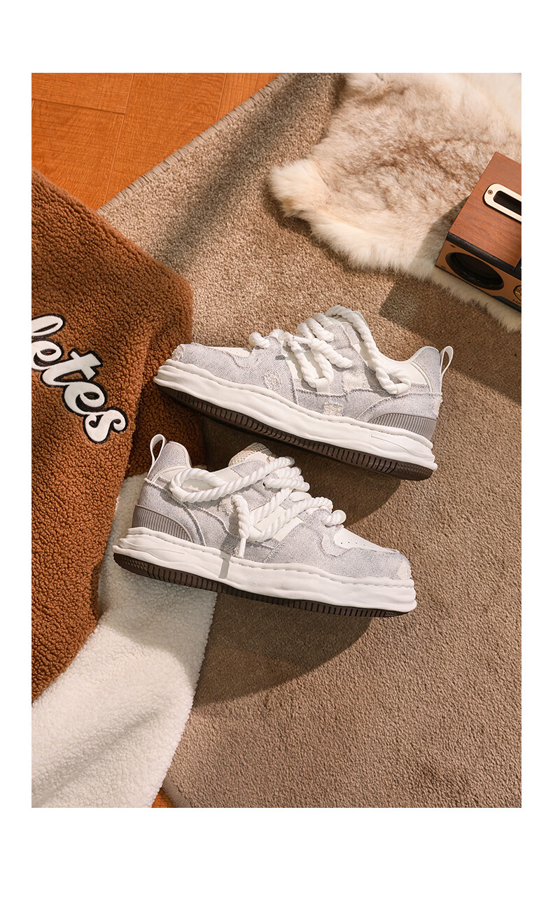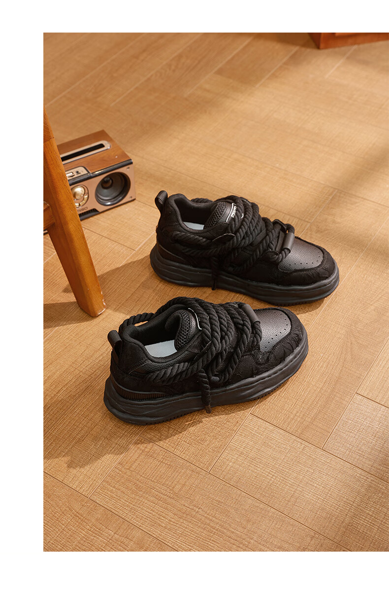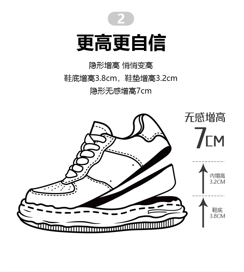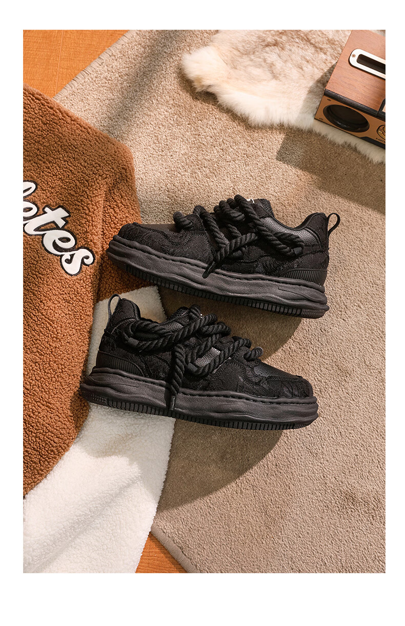 DVO7CM内增高厚底鞋男款秋冬新款百搭轻便帆布面包鞋国潮运动休闲鞋 蕾丝米黑 41 男码