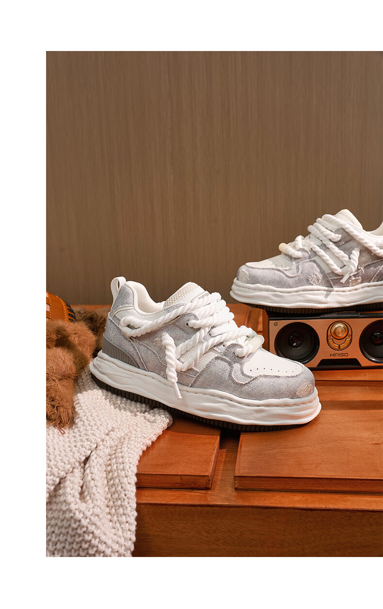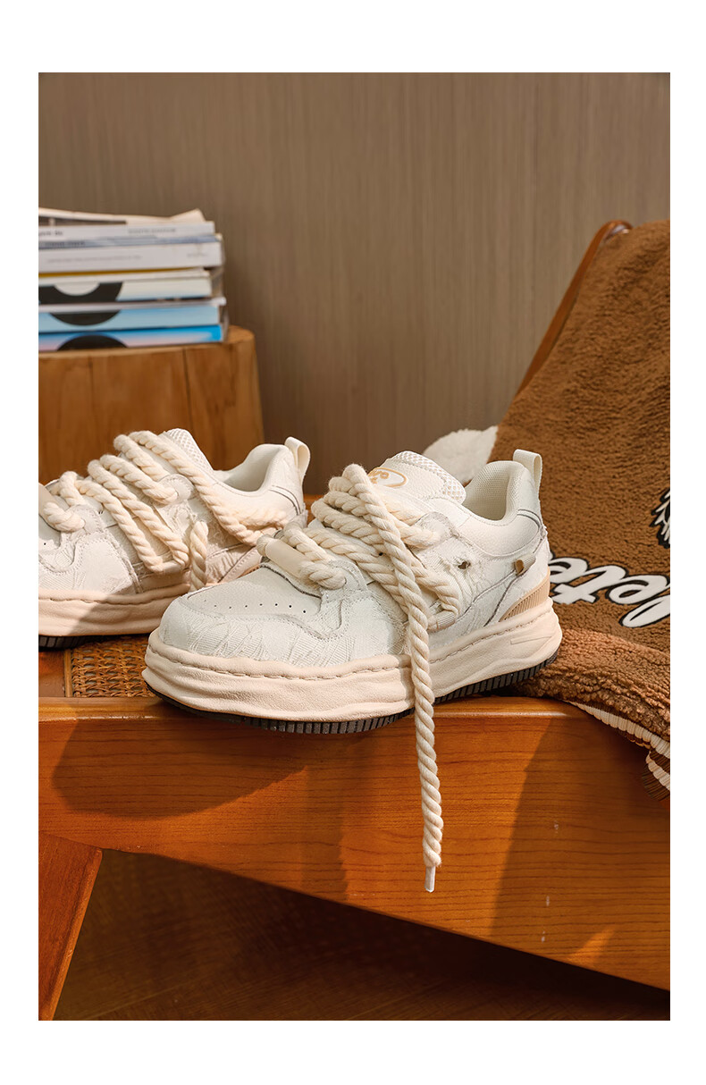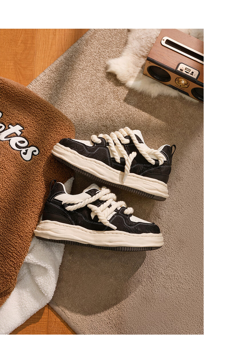 DVO7CM内增高厚底鞋男款秋冬新款百搭轻便帆布面包鞋国潮运动休闲鞋 蕾丝米黑 41 男码