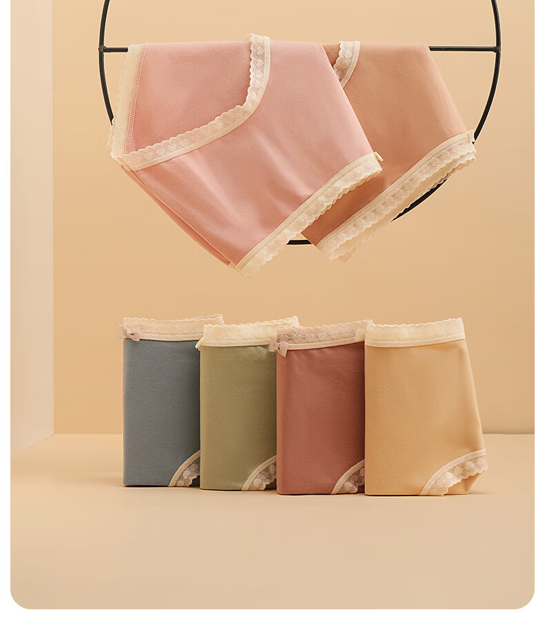 彩田内裤女澳洲棉 中腰透气提臀性感蕾丝边学生少女三角裤 抗菌底 组合一海贝粉 蓝 奶油桔 3条 XL 适合110-130斤左右