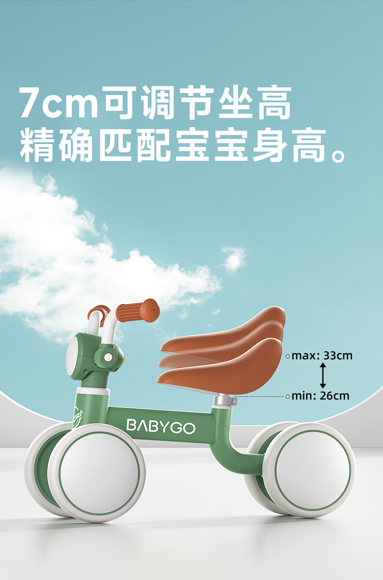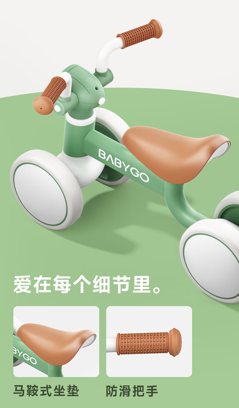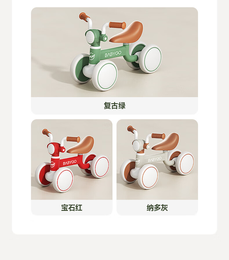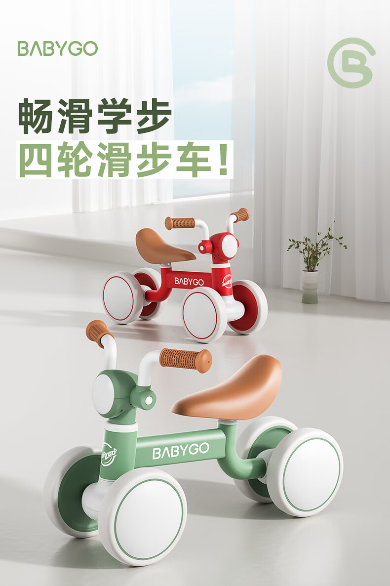 BG-BABYGO儿童平衡车1-3岁滑步车宝宝学步车婴幼儿无脚踏入门滑行车 宝石红 【无极调高 声光滑步】