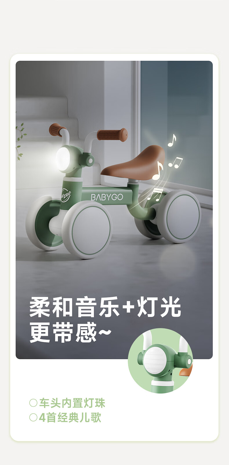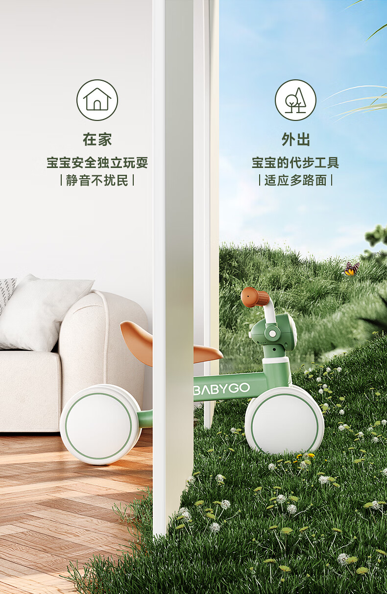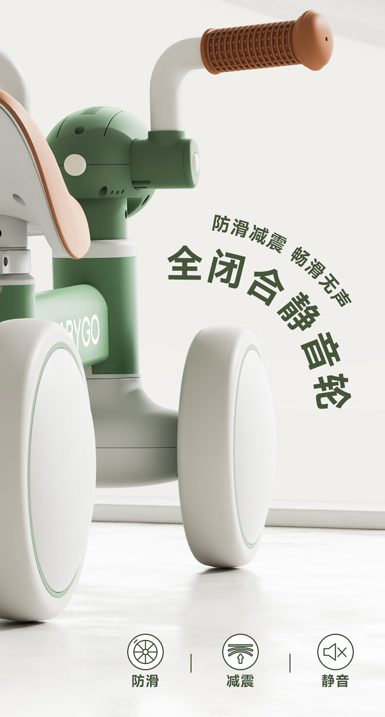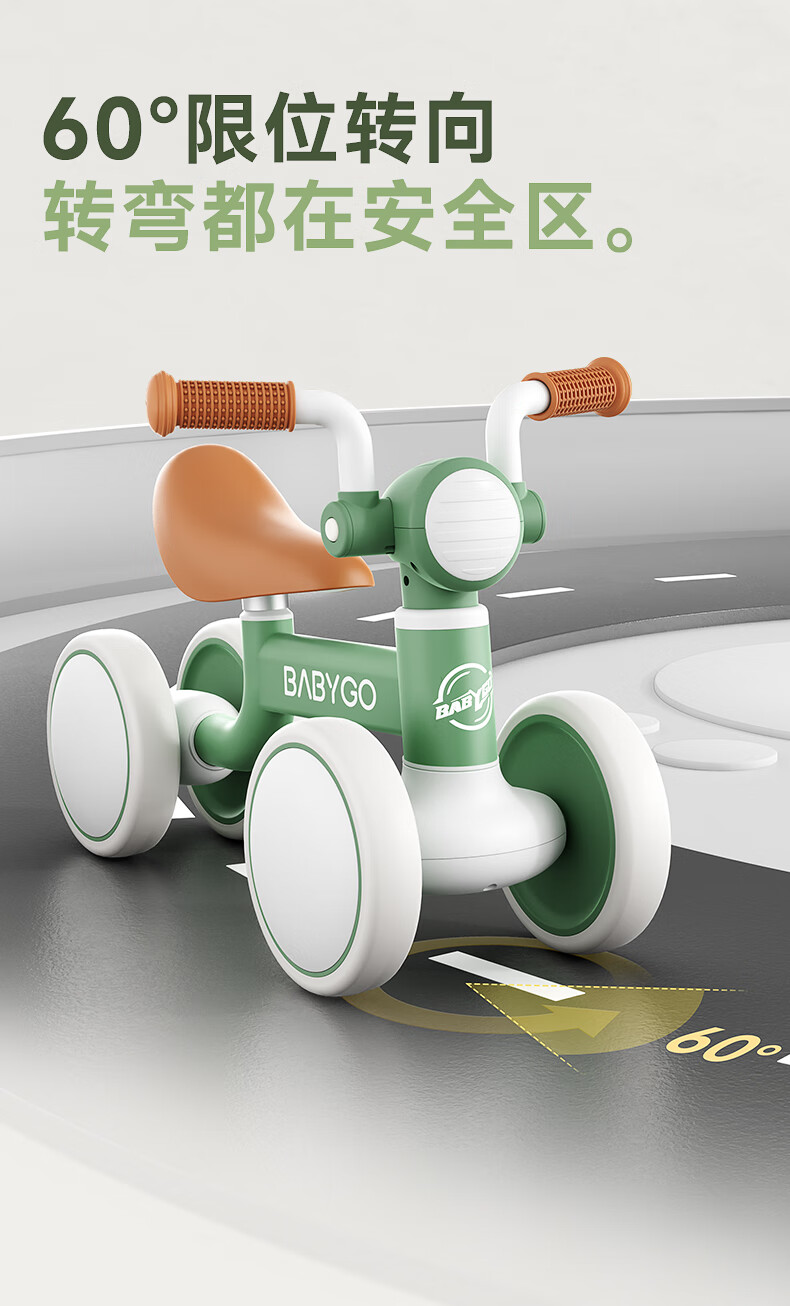 BG-BABYGO儿童平衡车1-3岁滑步车宝宝学步车婴幼儿无脚踏入门滑行车 宝石红 【无极调高 声光滑步】