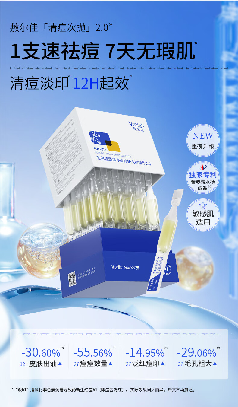 敷尔佳 清痘净肤修护次抛精华2.0 祛痘控油舒缓保湿 5支装【试用装】