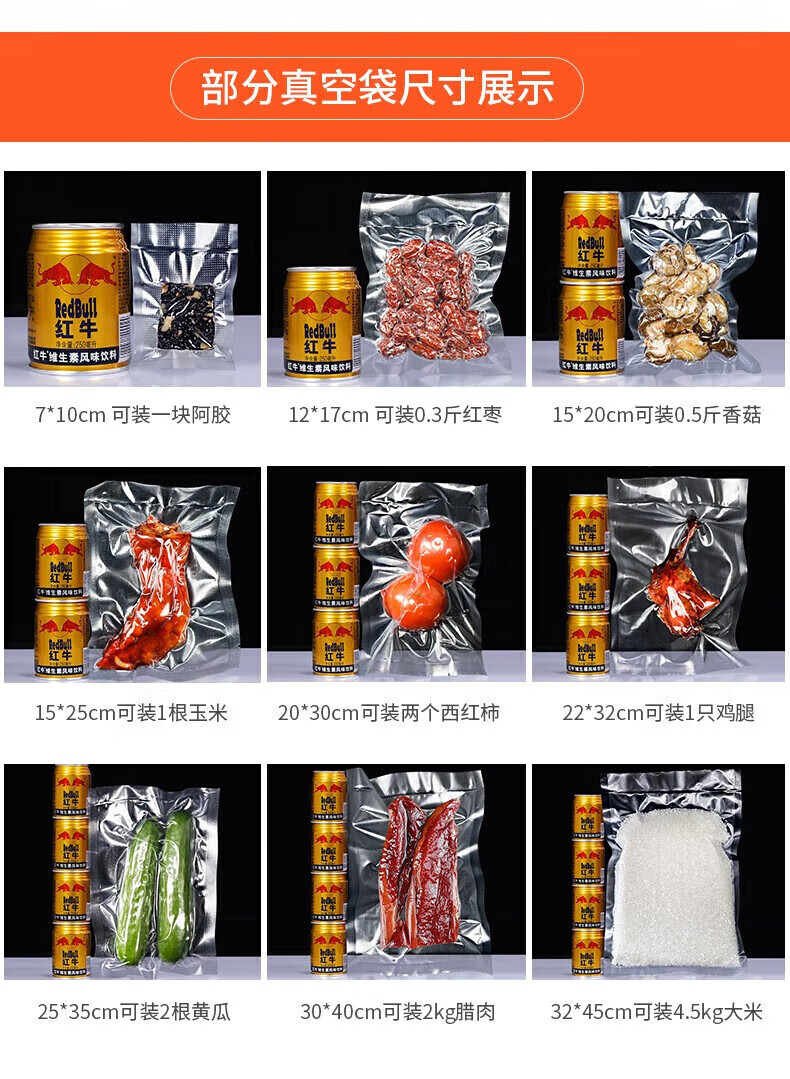 收米【100只】网纹路真空袋真空食品包装袋抽真空塑封袋封口压缩袋 【店长】20cm*30cm 100只装