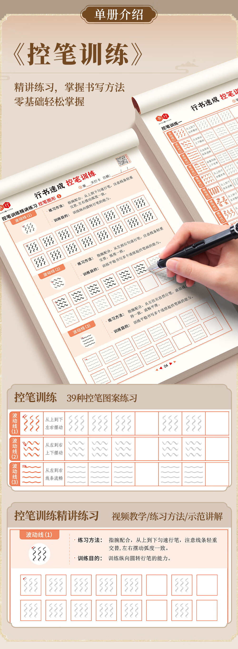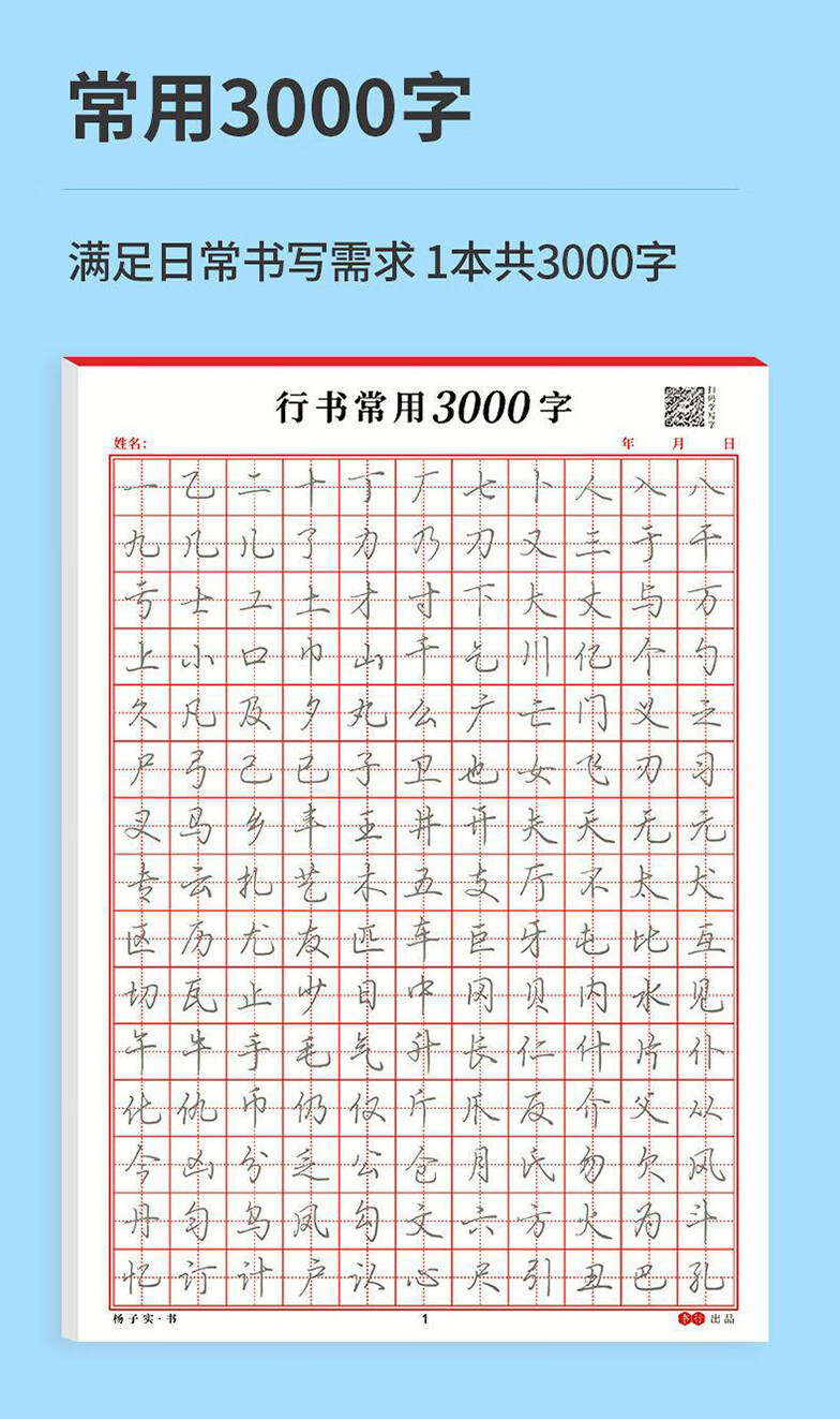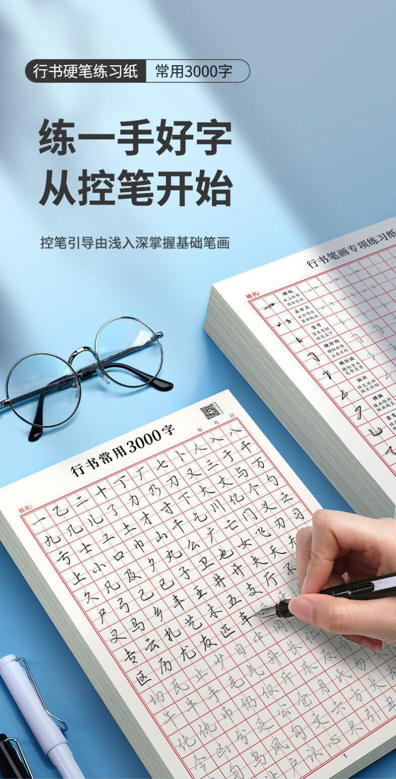 成人行书速成字帖学生入门零基础行书控笔常用3000字练习纸 行书常用3000字+控笔训练 字帖