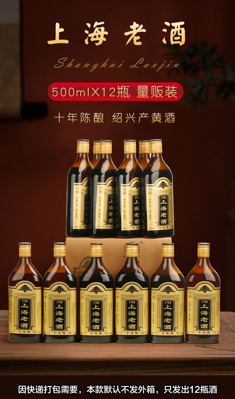 安稳黑标十年陈上海老酒整箱装12度500mlx12瓶装半干型绍兴产黄酒 500mL 12瓶