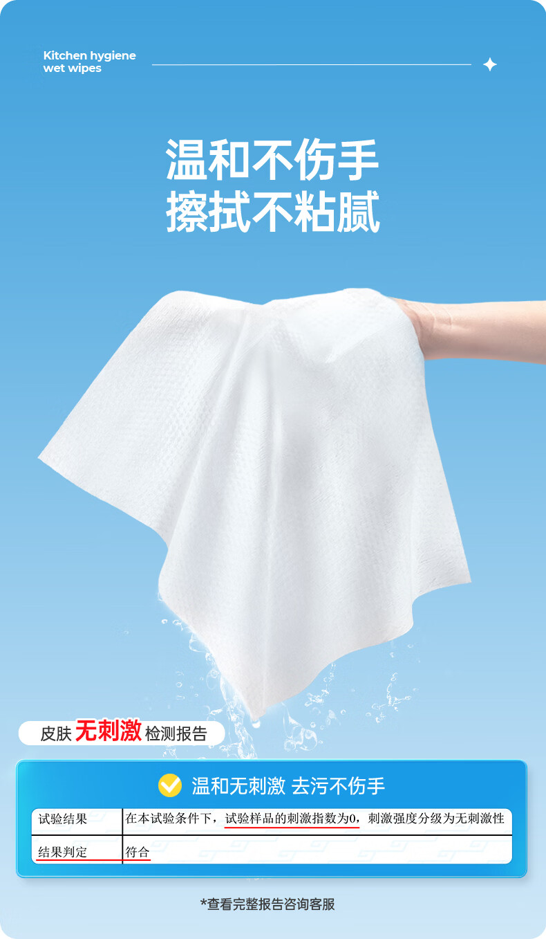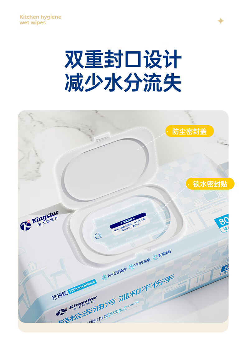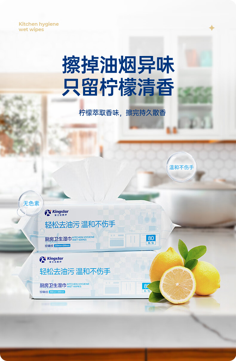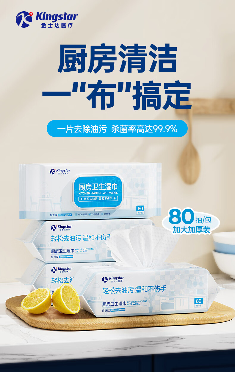 金士达厨房湿巾家用油烟机清洁卫生湿纸巾去油去污杀菌抹布专用湿纸巾 【尝鲜装】厨房卫生湿巾 1层 80抽*2包