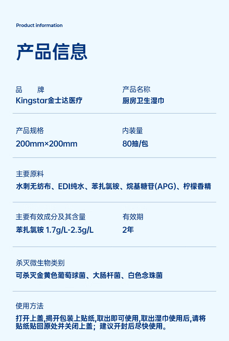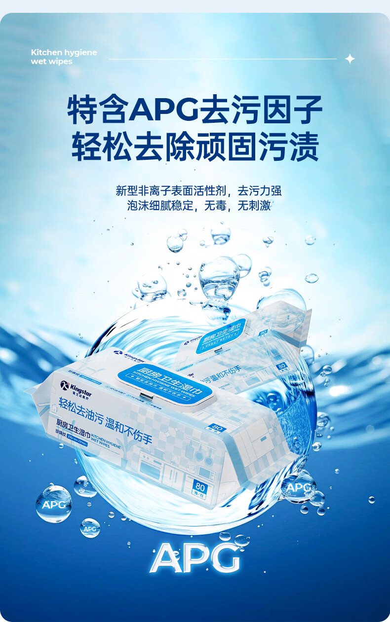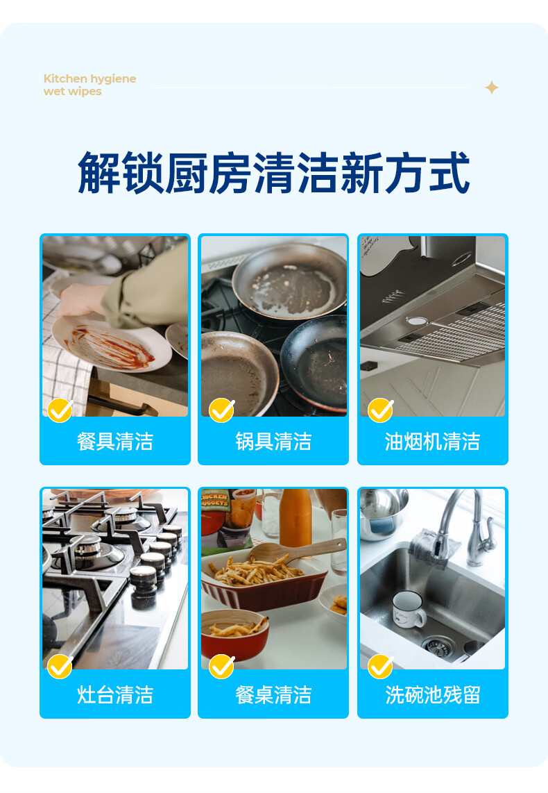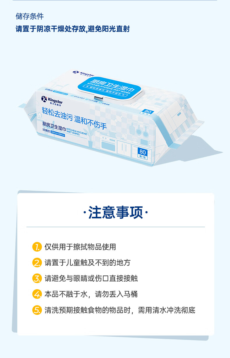 金士达厨房湿巾家用油烟机清洁卫生湿纸巾去油去污杀菌抹布专用湿纸巾 【尝鲜装】厨房卫生湿巾 1层 80抽*2包