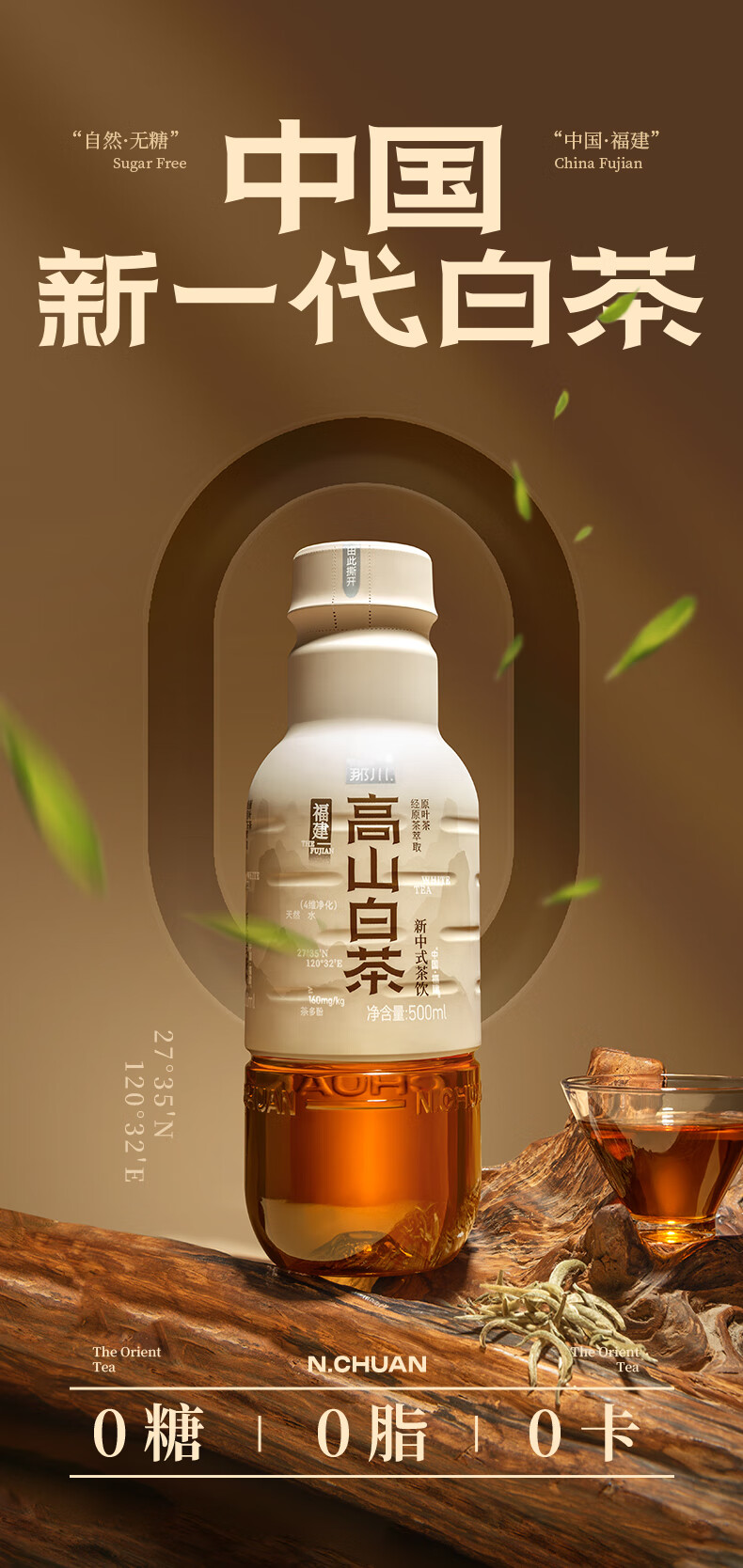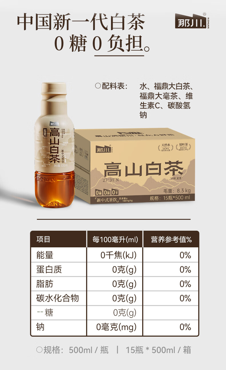 那川无糖茶 高山白茶 纯茶饮料 原叶萃取 0糖0脂0卡 500ml*15瓶整箱装 高山白茶500ml*15瓶【整箱装】