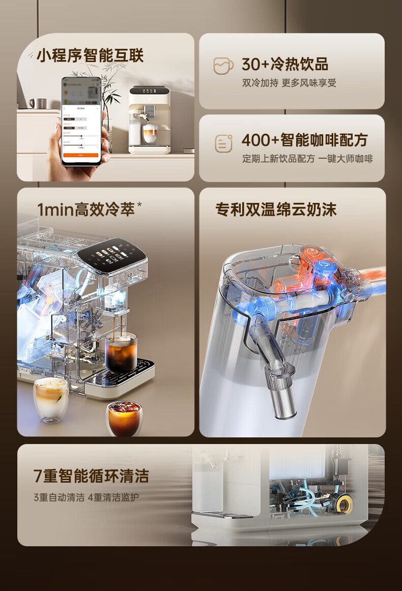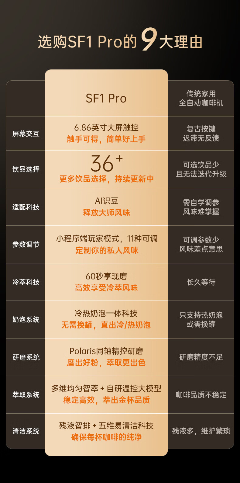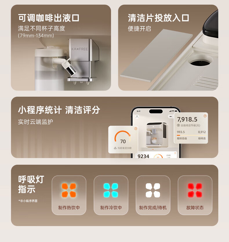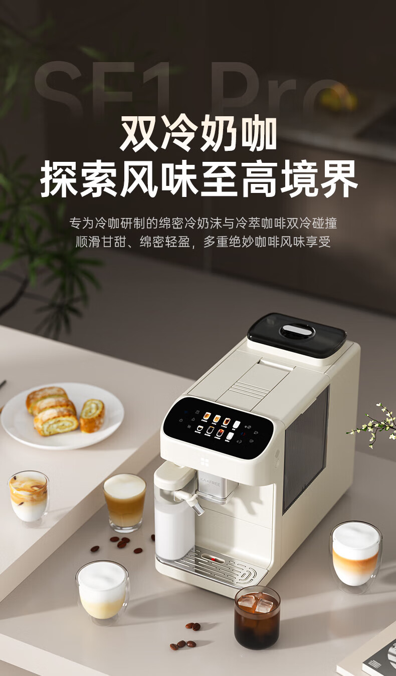 咖啡自由(KAxFREE)全自动咖啡机研磨一体家用意式美式冷萃 奶泡机冷热双温绵云奶咖coffeeSF1 Pro SF1Pro(墨黑色)