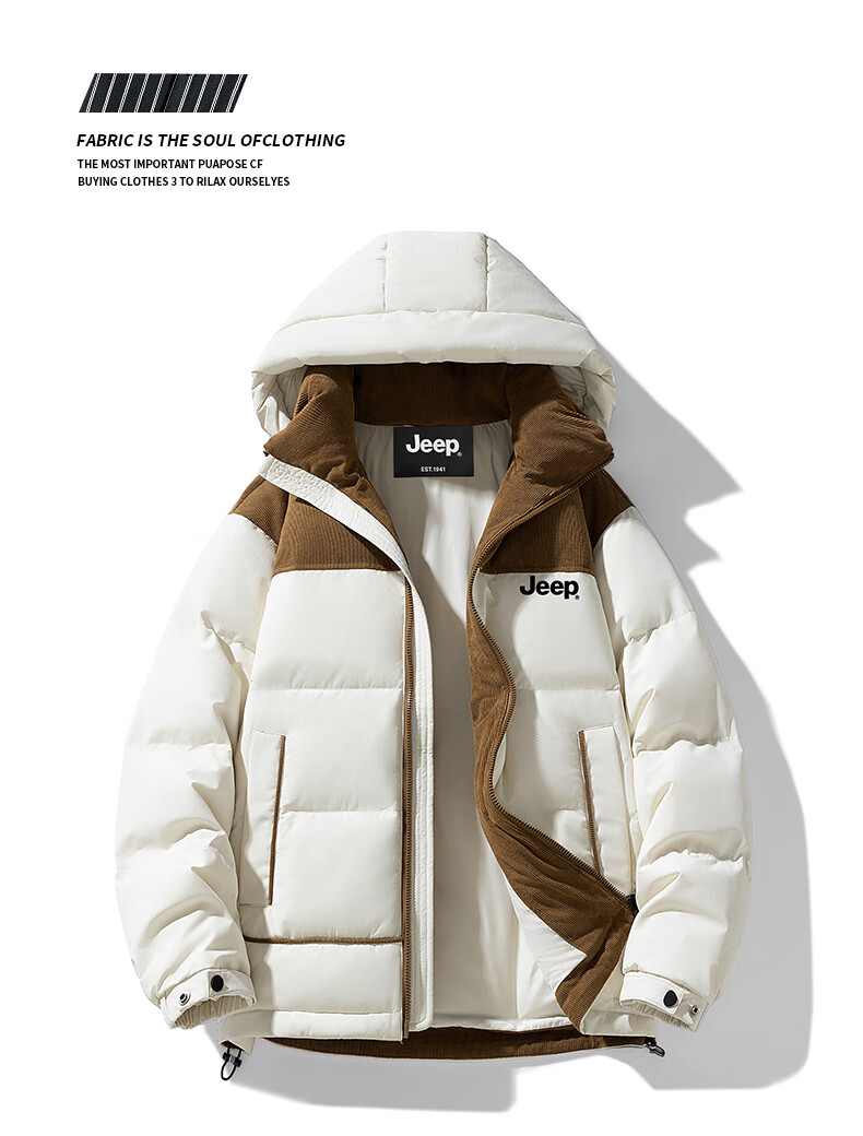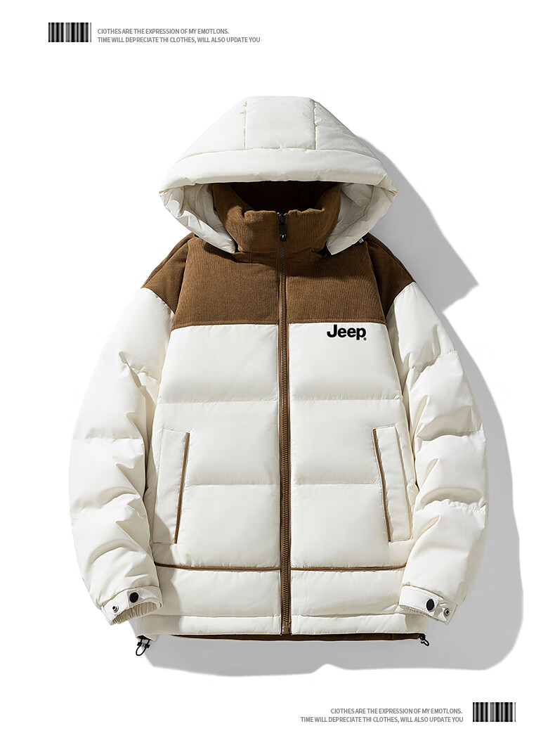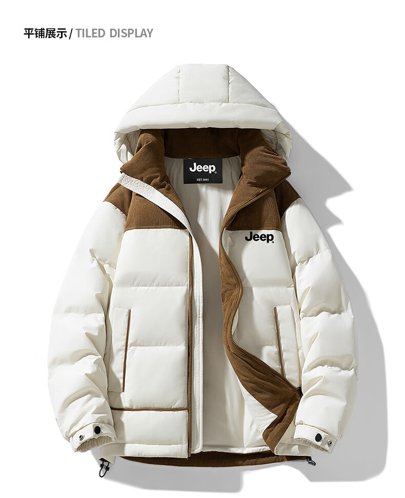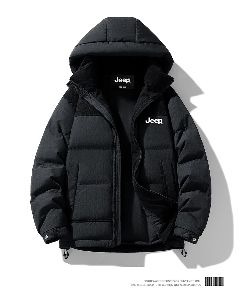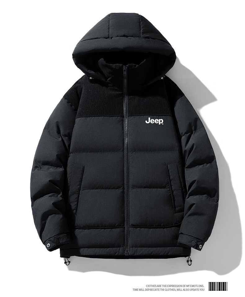JEEP美式羽绒服男士冬季新款短款宽松拼接撞色连帽加厚保暖休闲外套男 黑色 【官方正品】 M