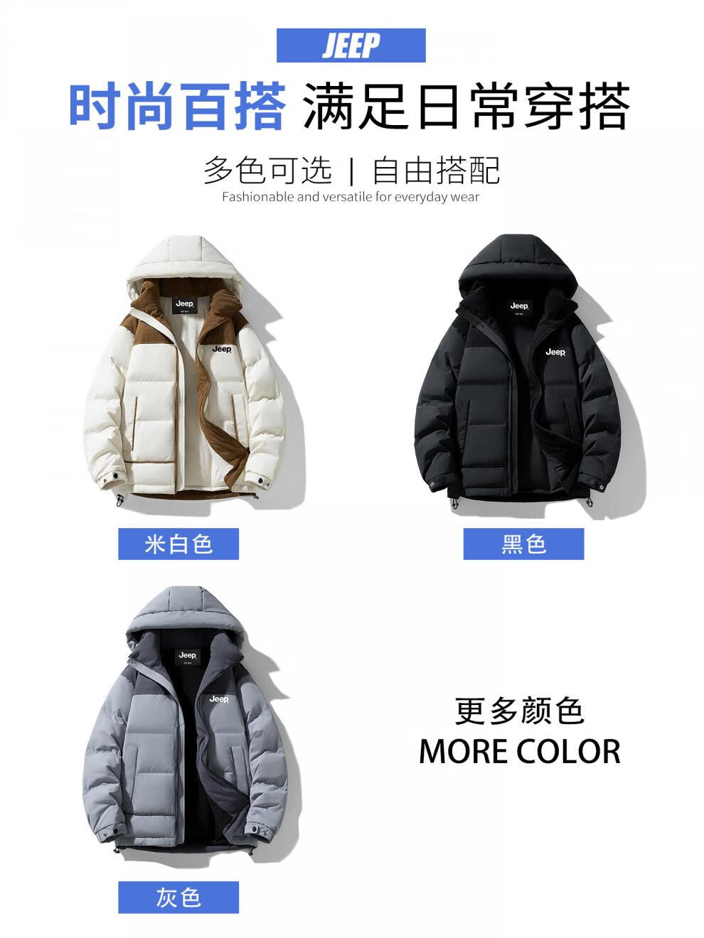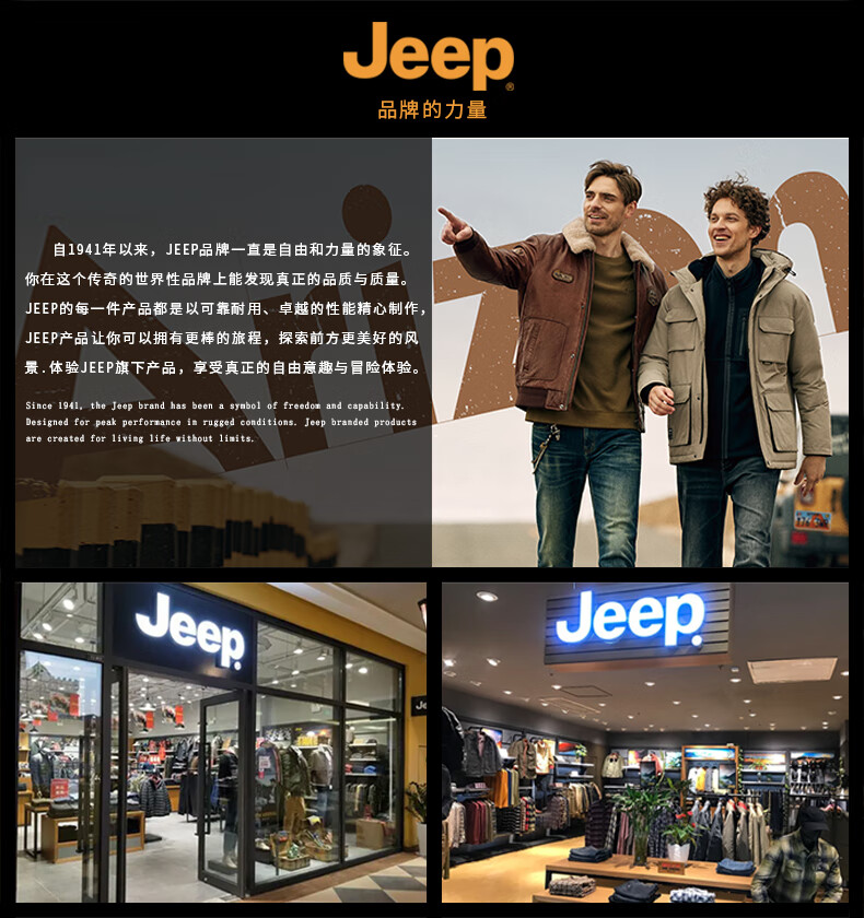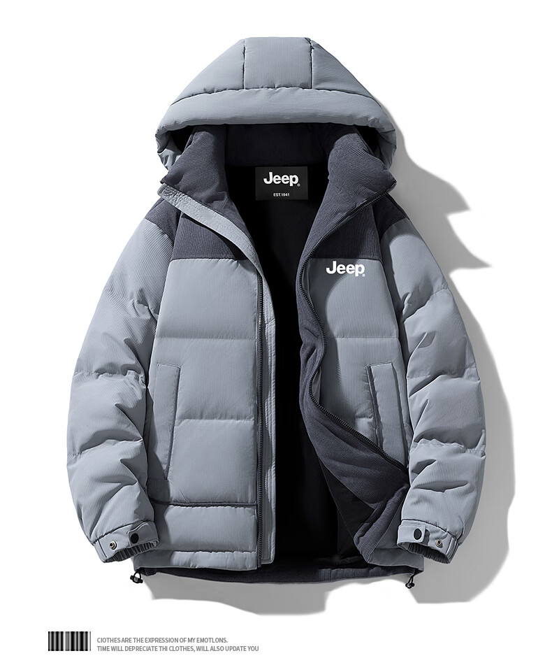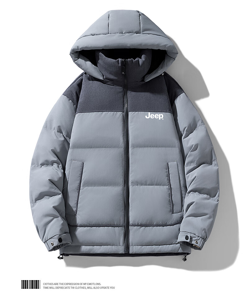 JEEP美式羽绒服男士冬季新款短款宽松拼接撞色连帽加厚保暖休闲外套男 黑色 【官方正品】 M