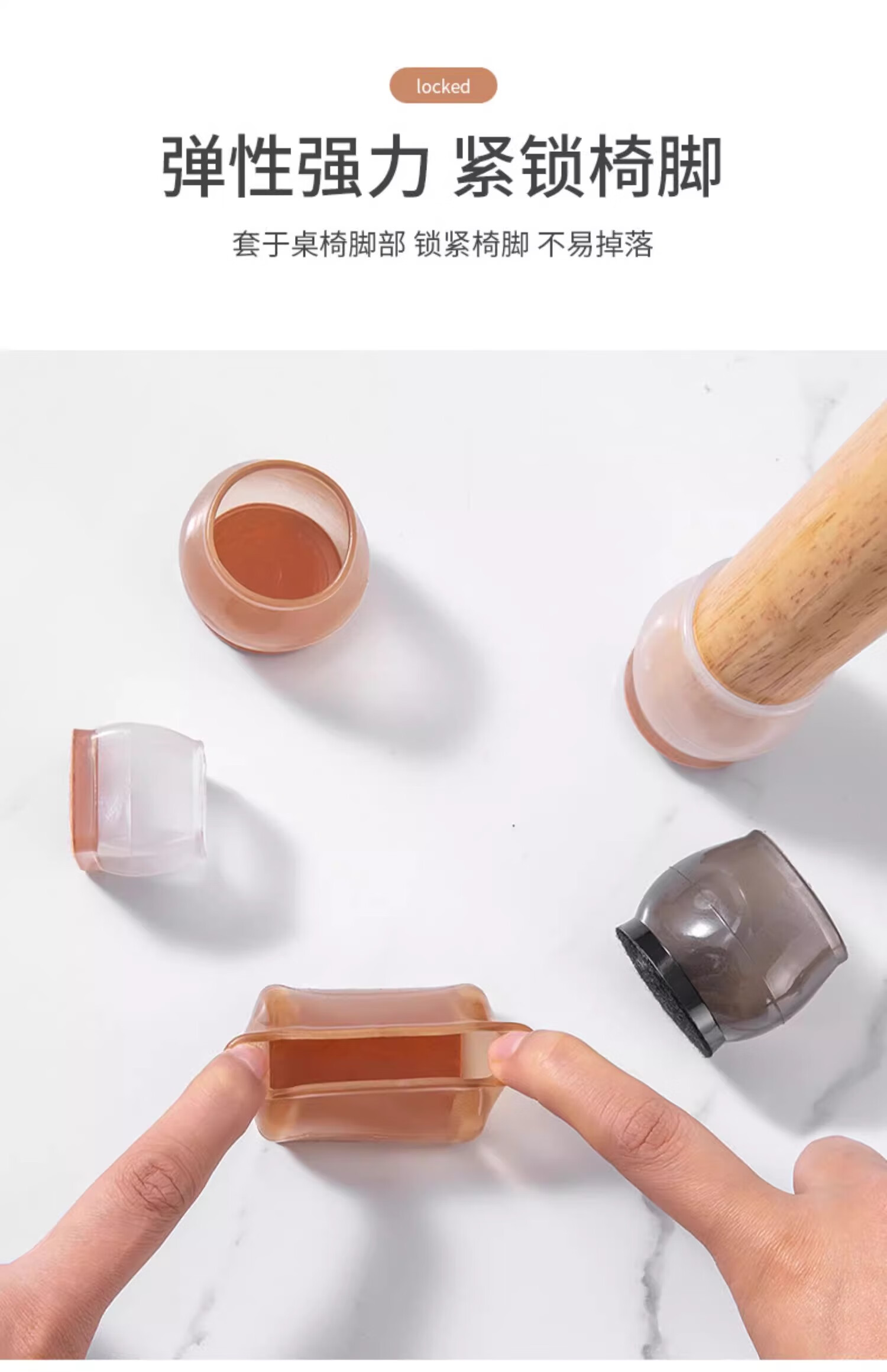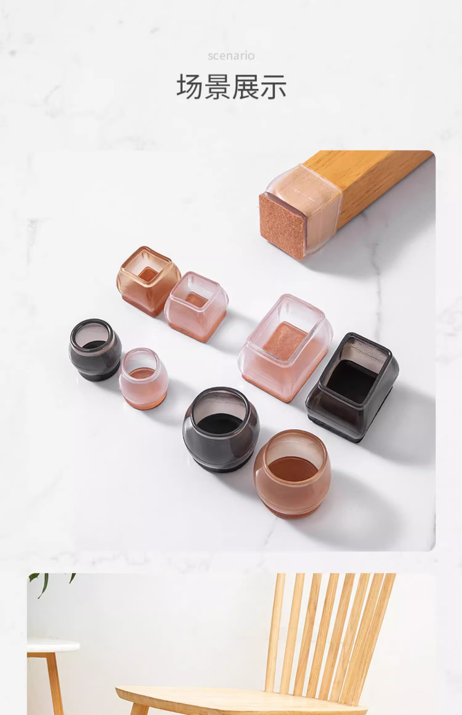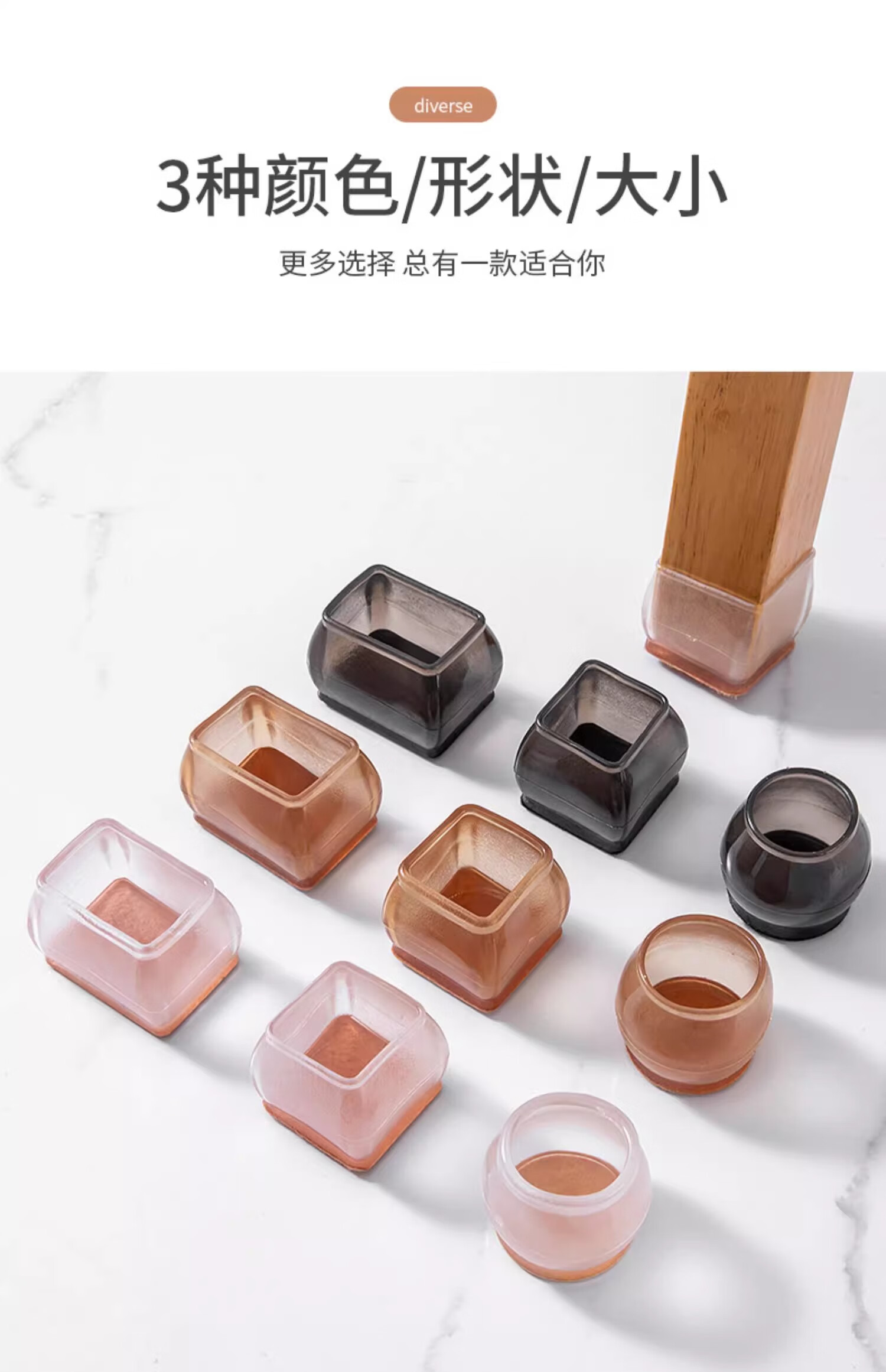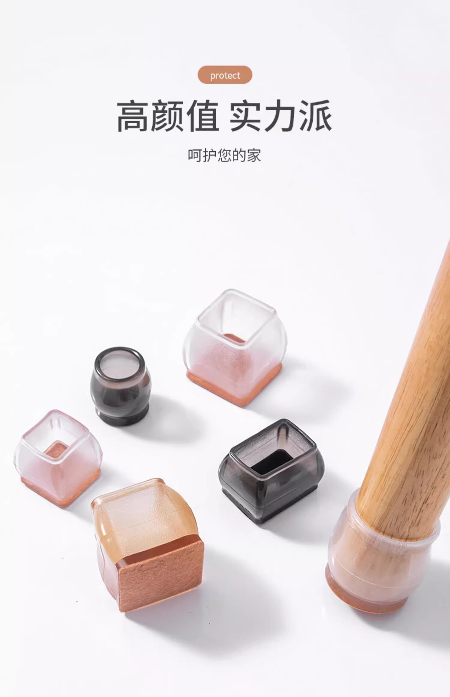 【严选直发】通用椅子脚套硅胶桌椅椅脚套腿垫凳子腿胶垫桌腿套套 正方形小号透明(24个装)