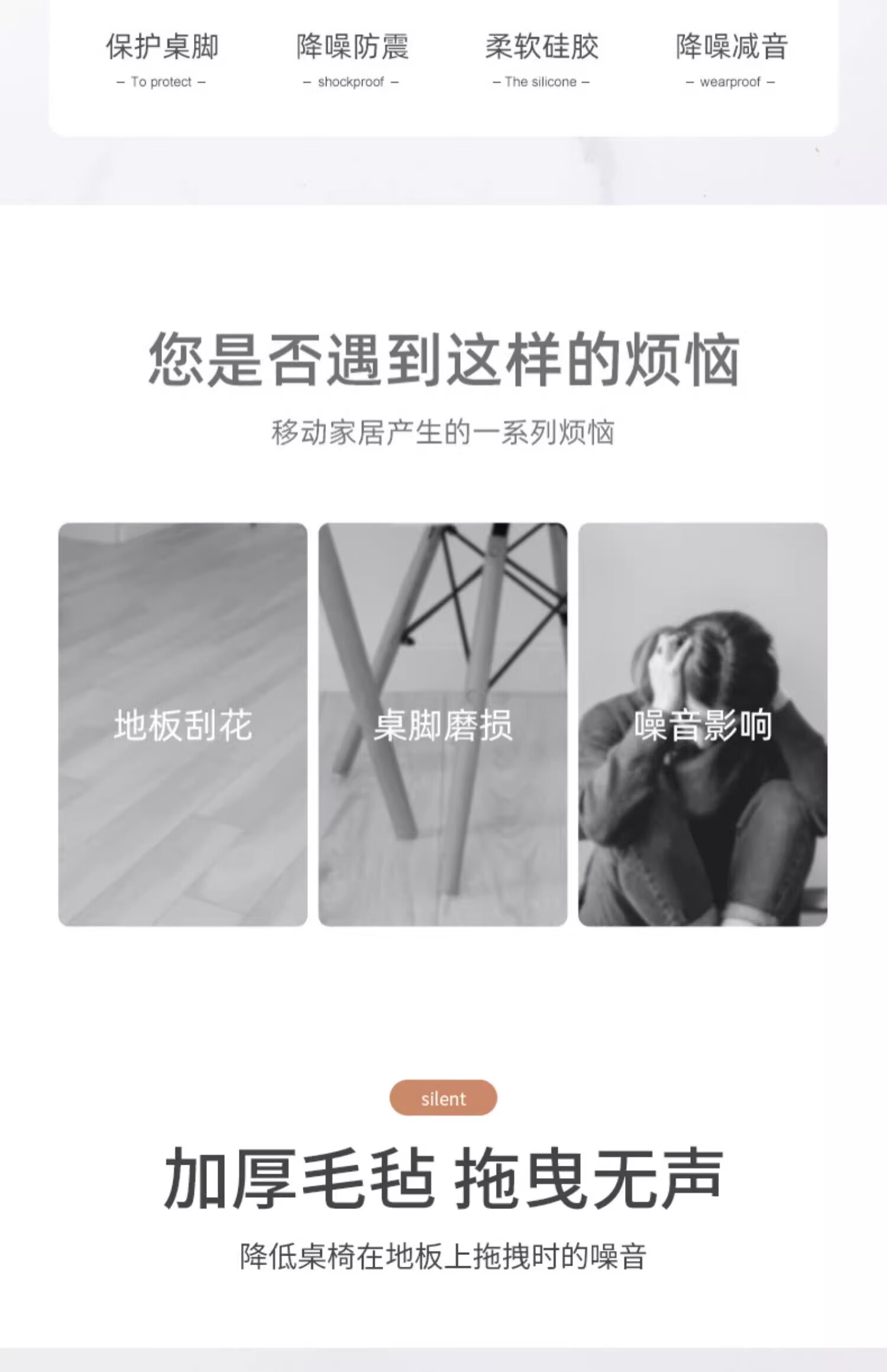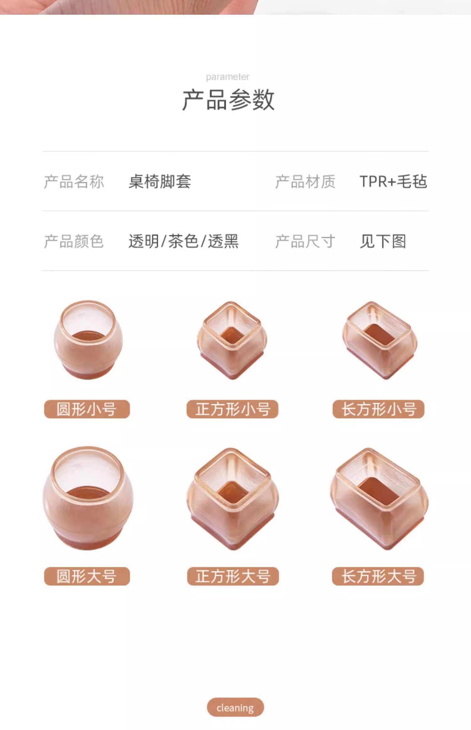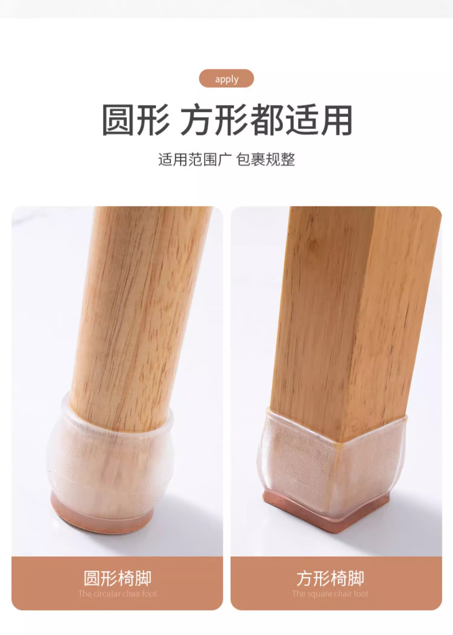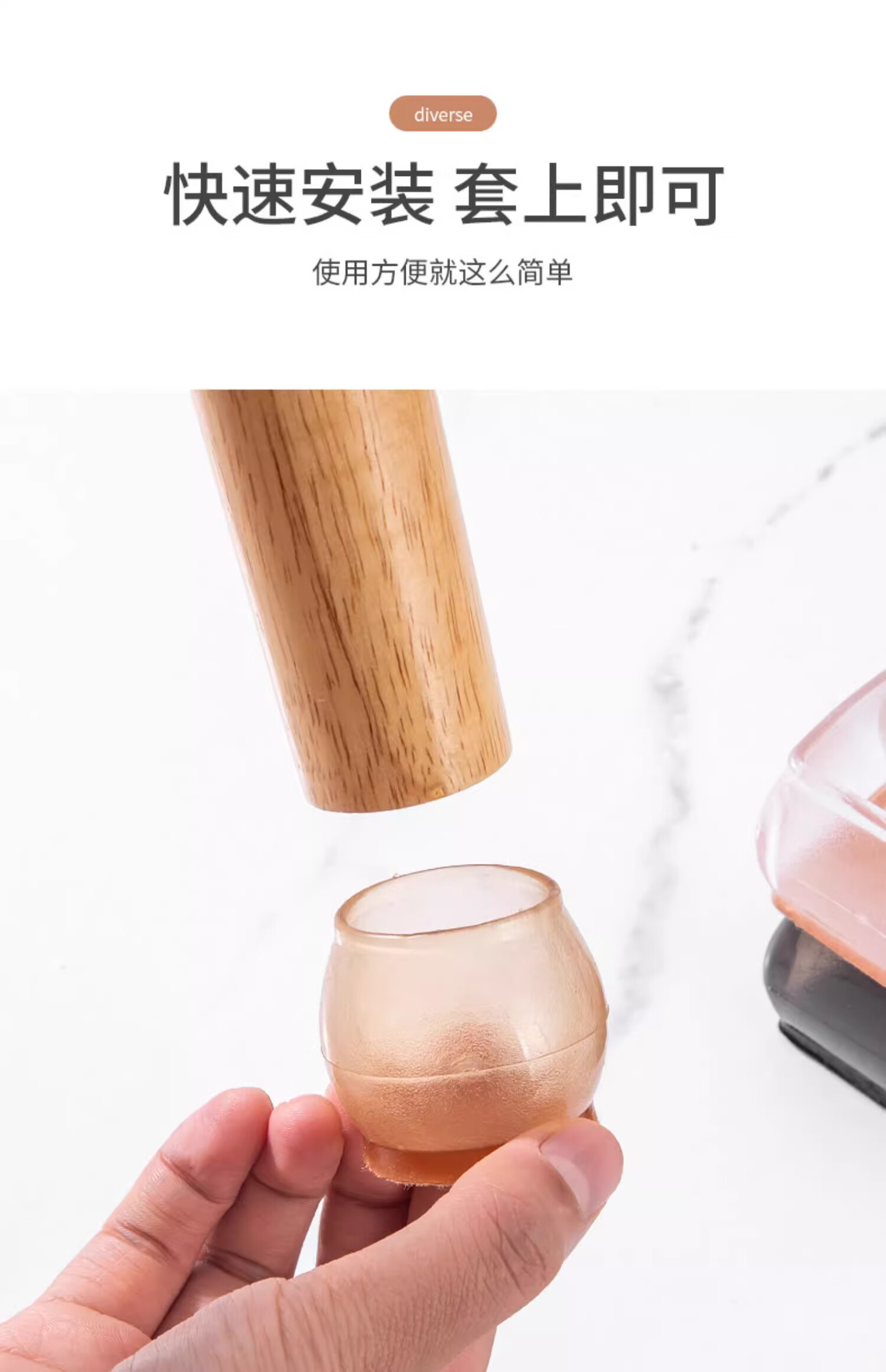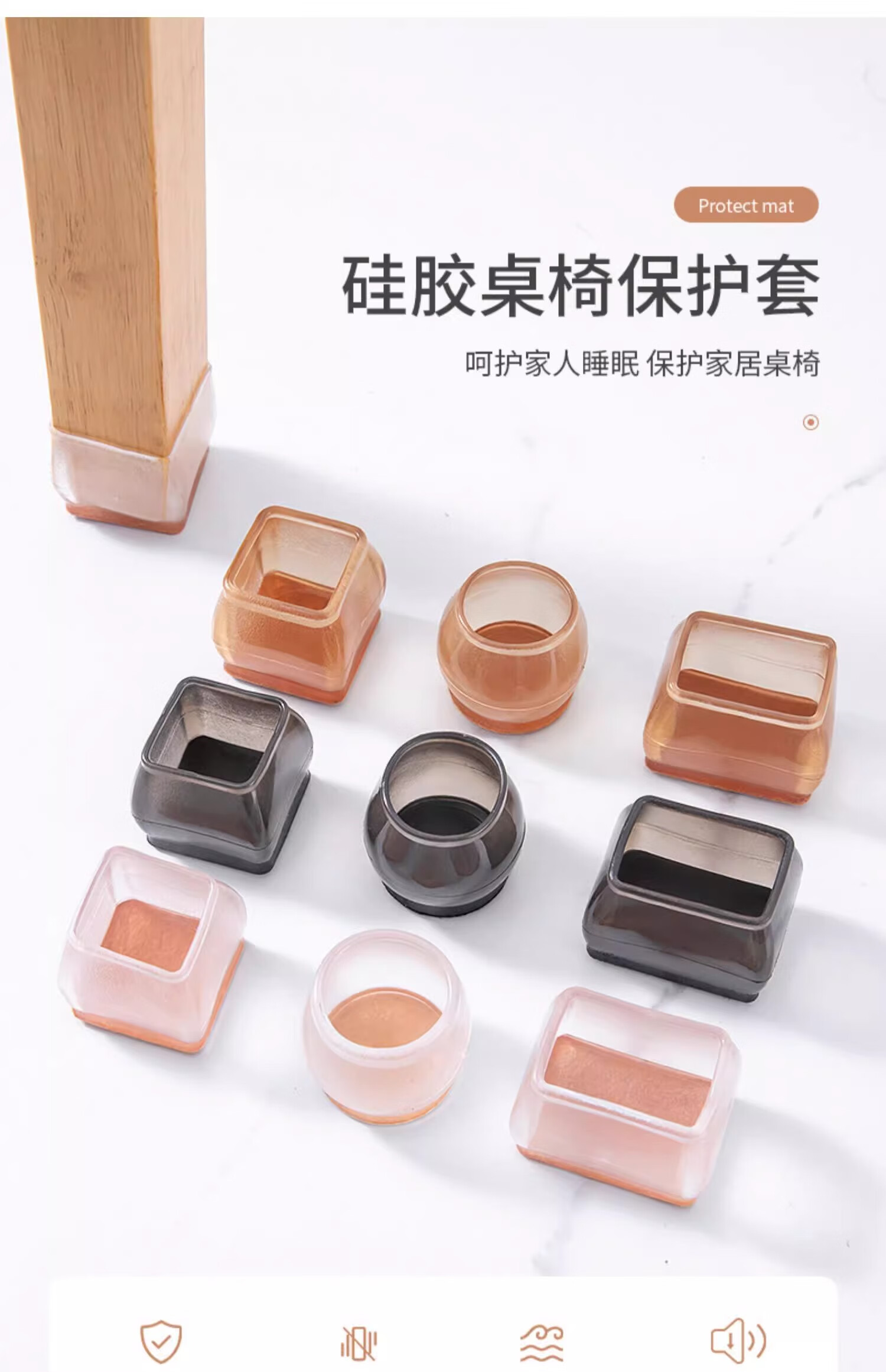 【严选直发】通用椅子脚套硅胶桌椅椅脚套腿垫凳子腿胶垫桌腿套套 正方形小号透明(24个装)