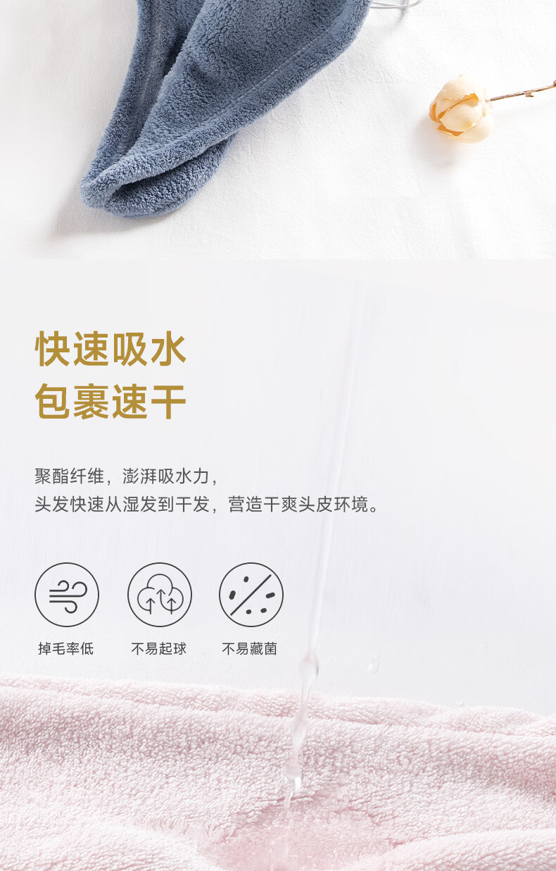内野(UCHINO)纯色柔软干发帽 强吸水加厚长发中短发速干包头巾浴帽TK 柔软干发帽2条(粉色+蓝色)