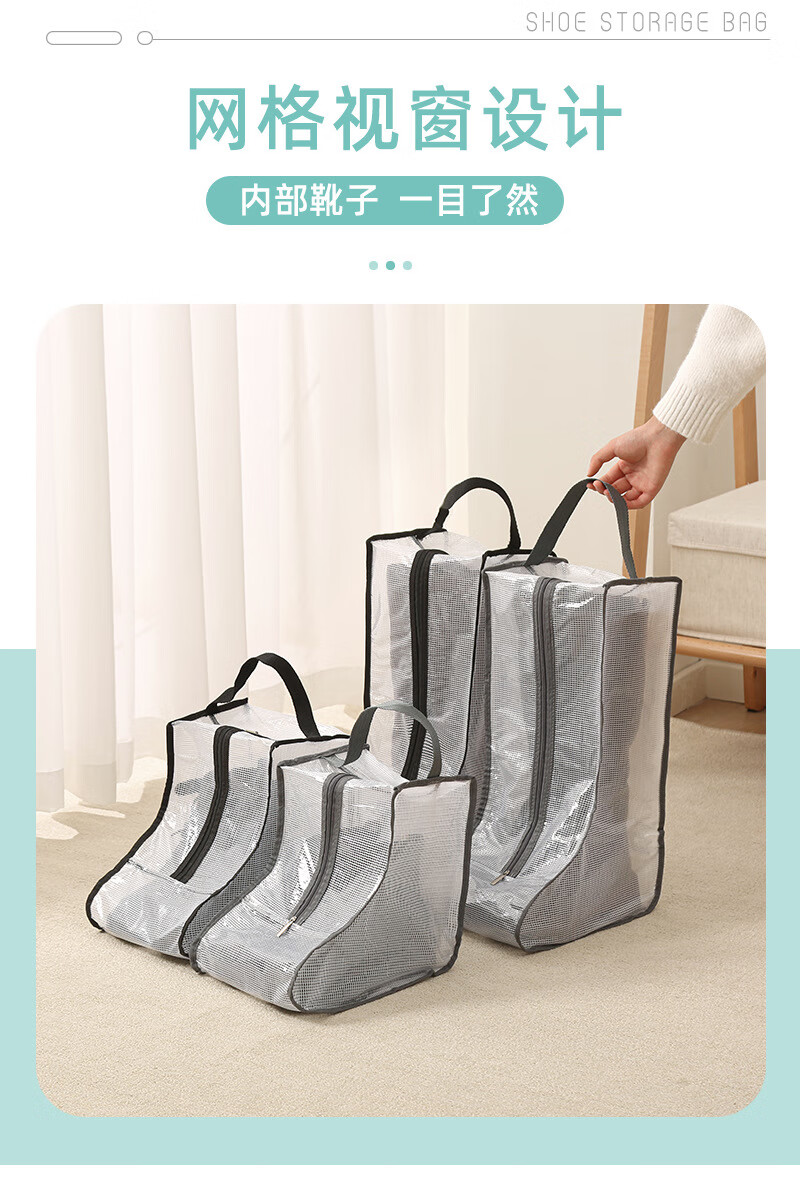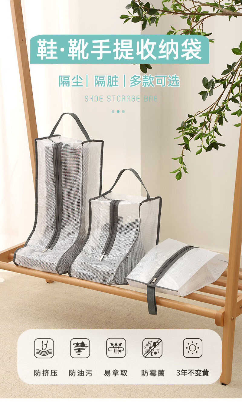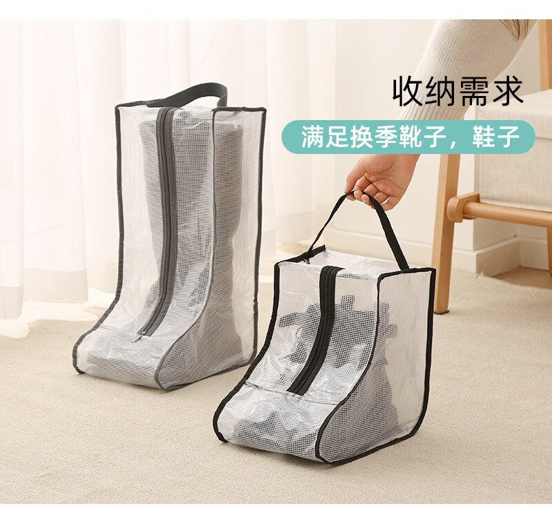 鞋靴防尘袋旅行透明防尘鞋子防尘套防水便携手提靴子收纳袋鞋配件 长款