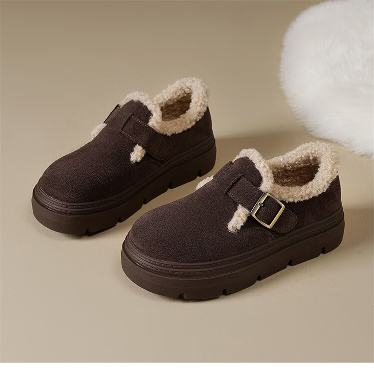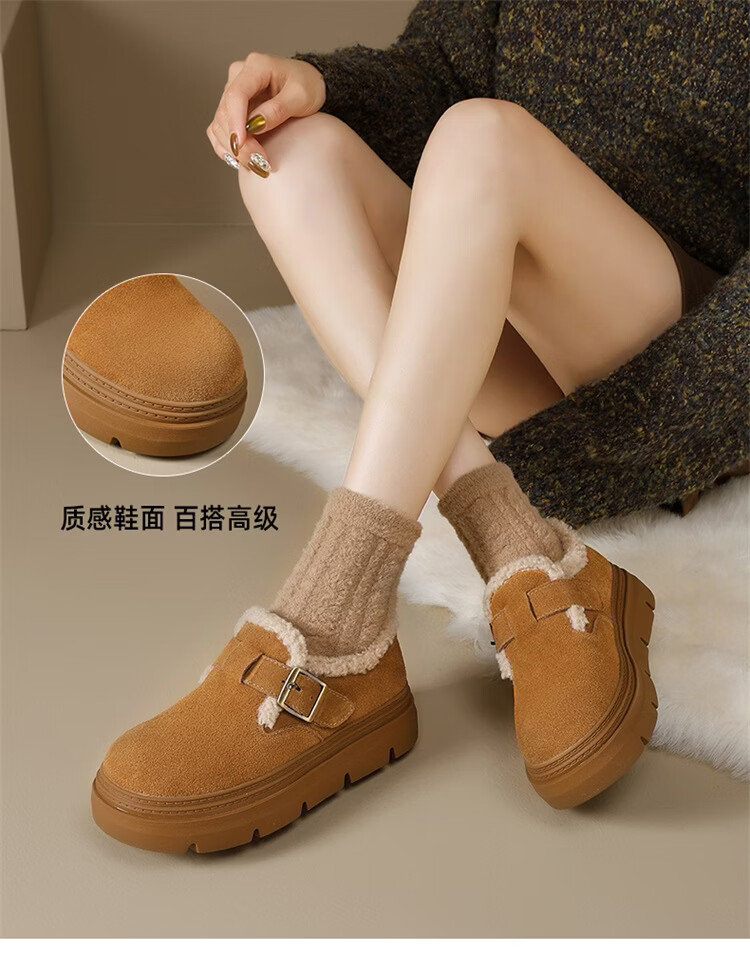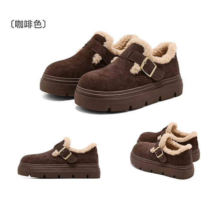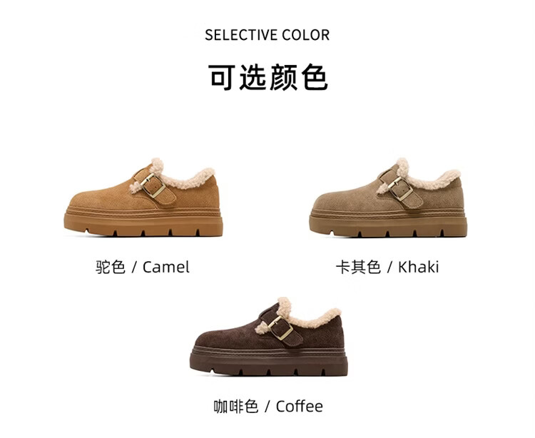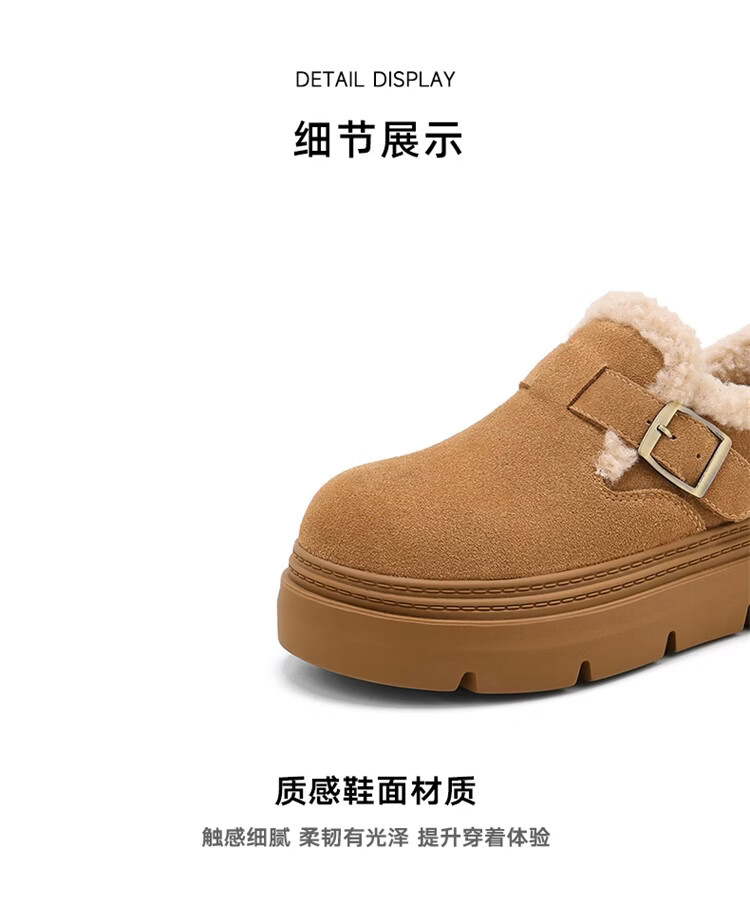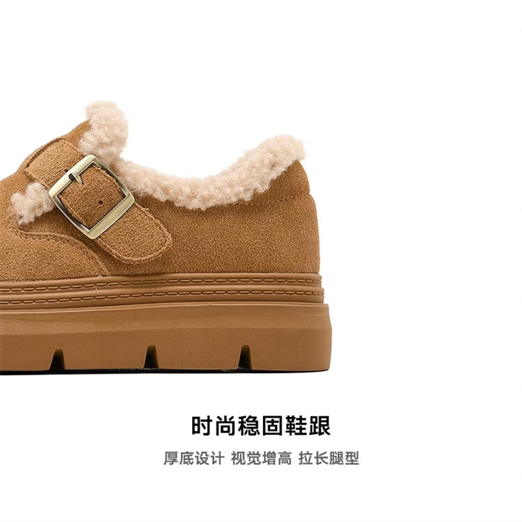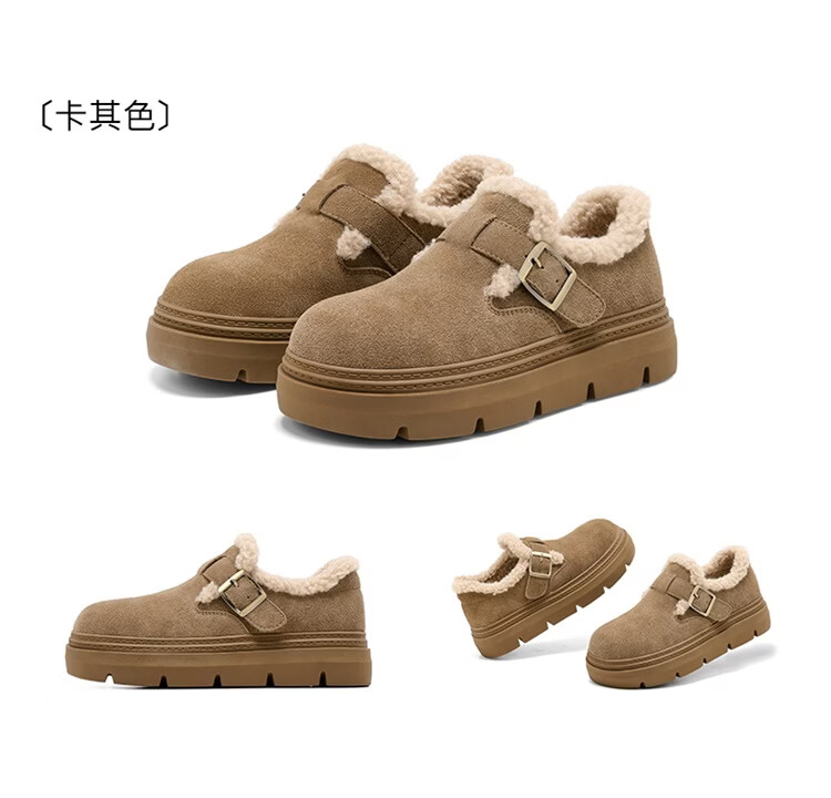 星期六加绒勃肯鞋女2025冬季新款厚底全包保暖毛毛面包棉鞋雪地靴 卡其色 【厚底增高】 35