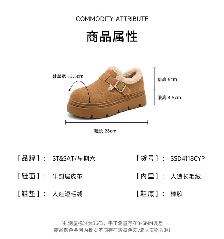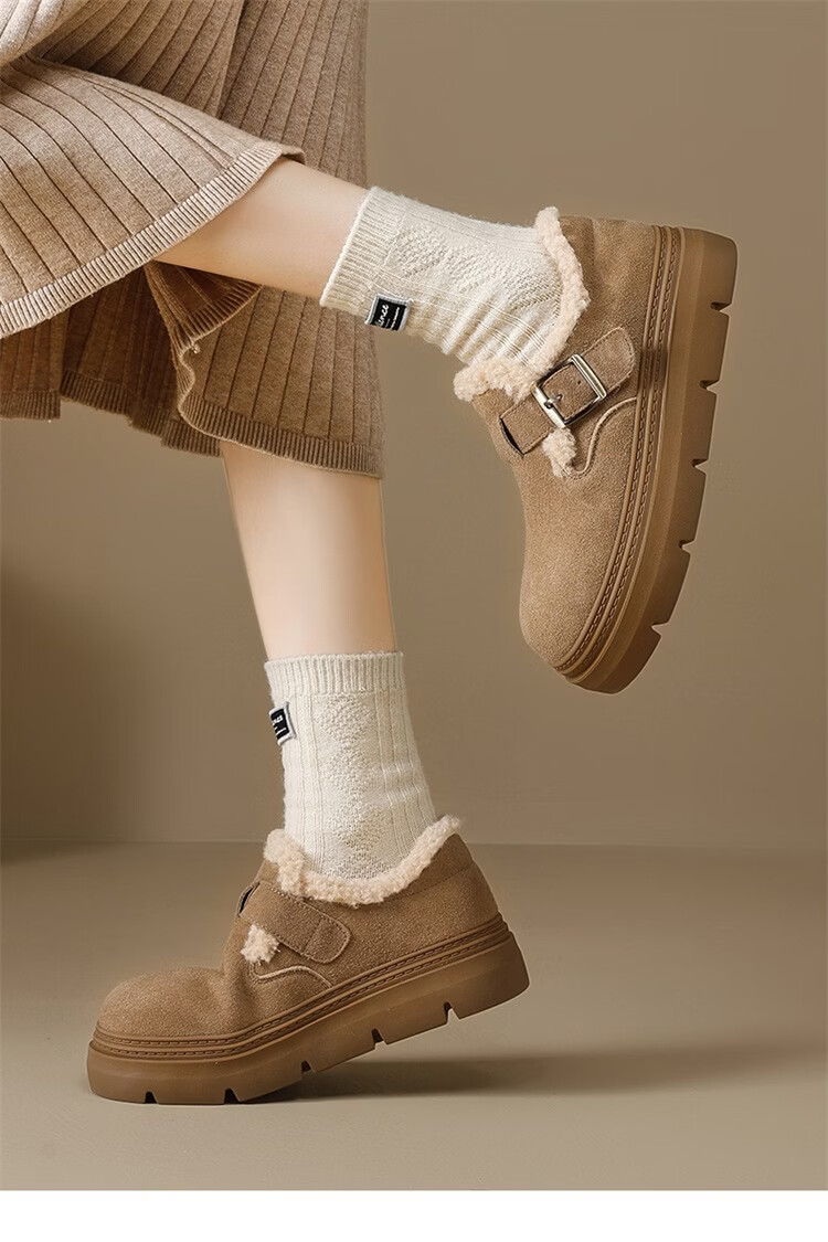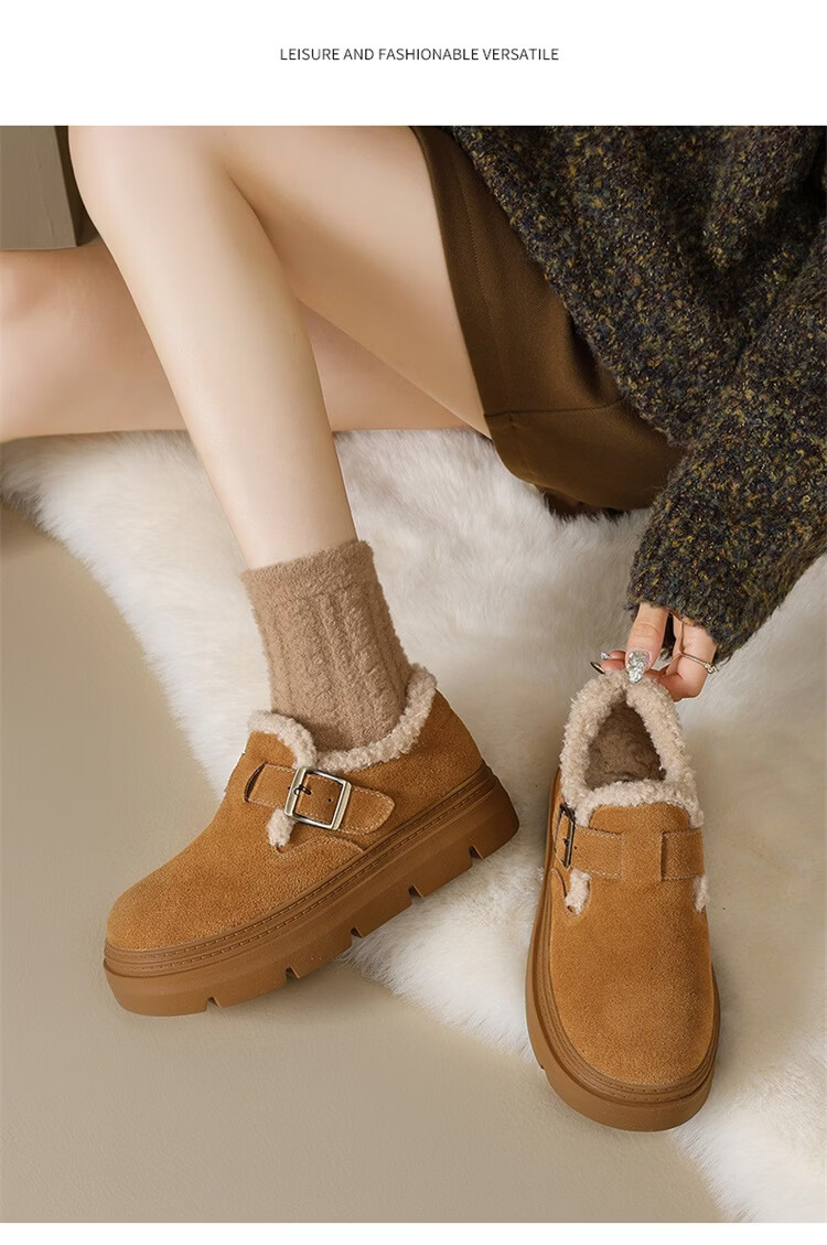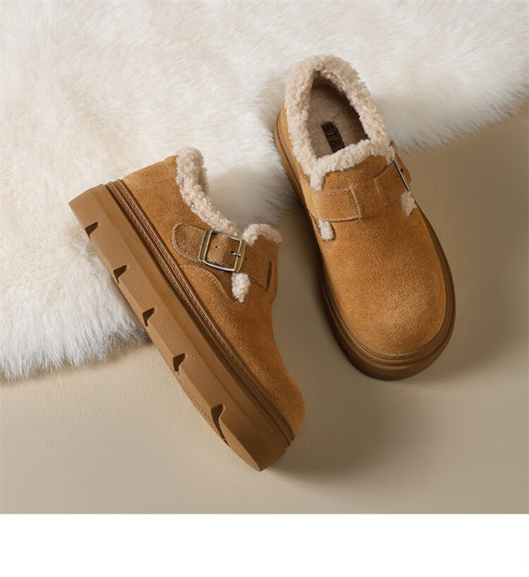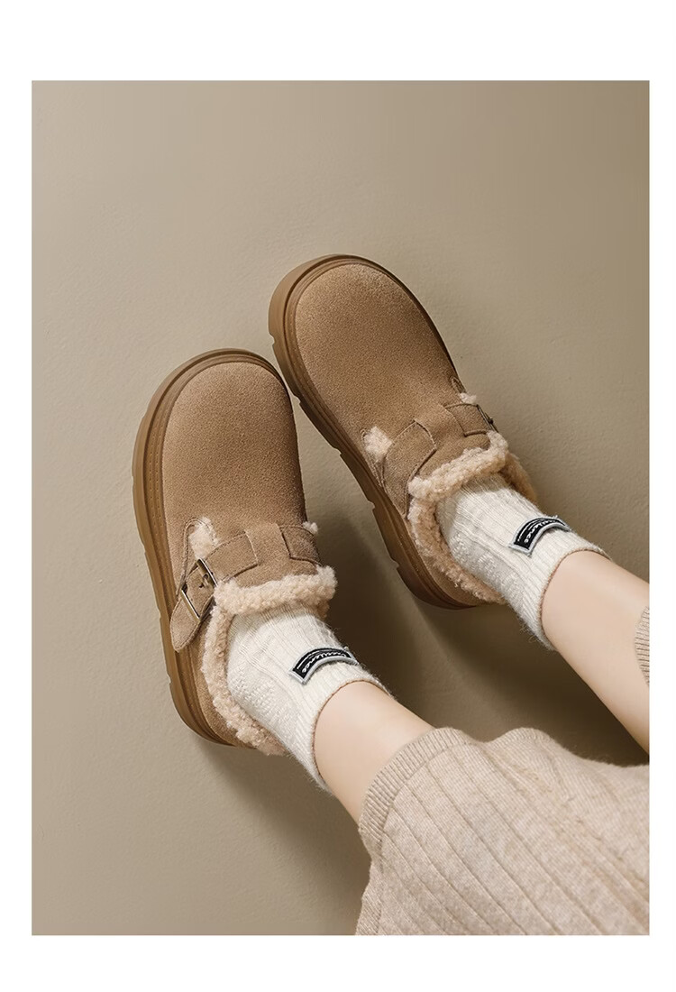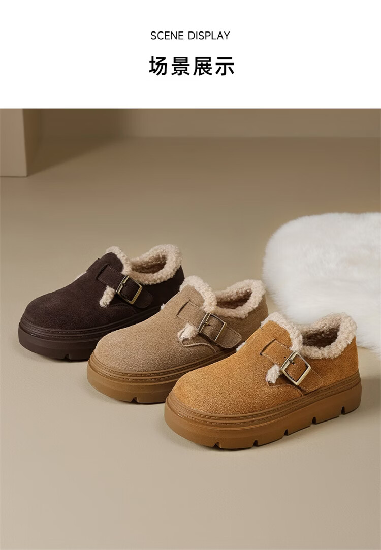 星期六加绒勃肯鞋女2025冬季新款厚底全包保暖毛毛面包棉鞋雪地靴 卡其色 【厚底增高】 35