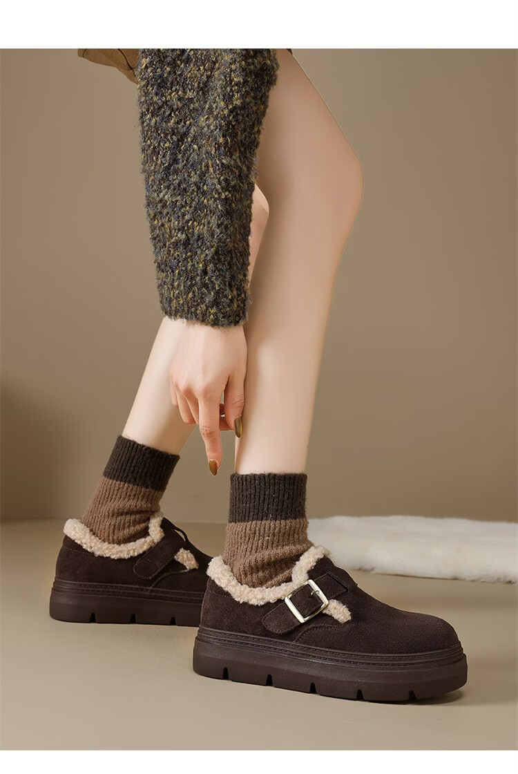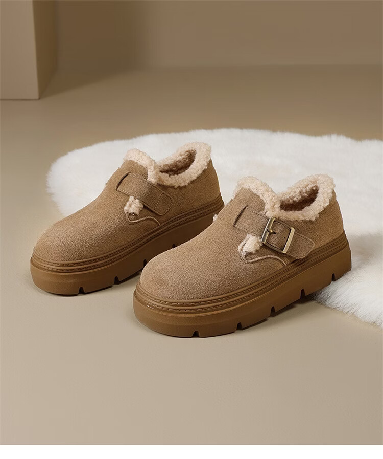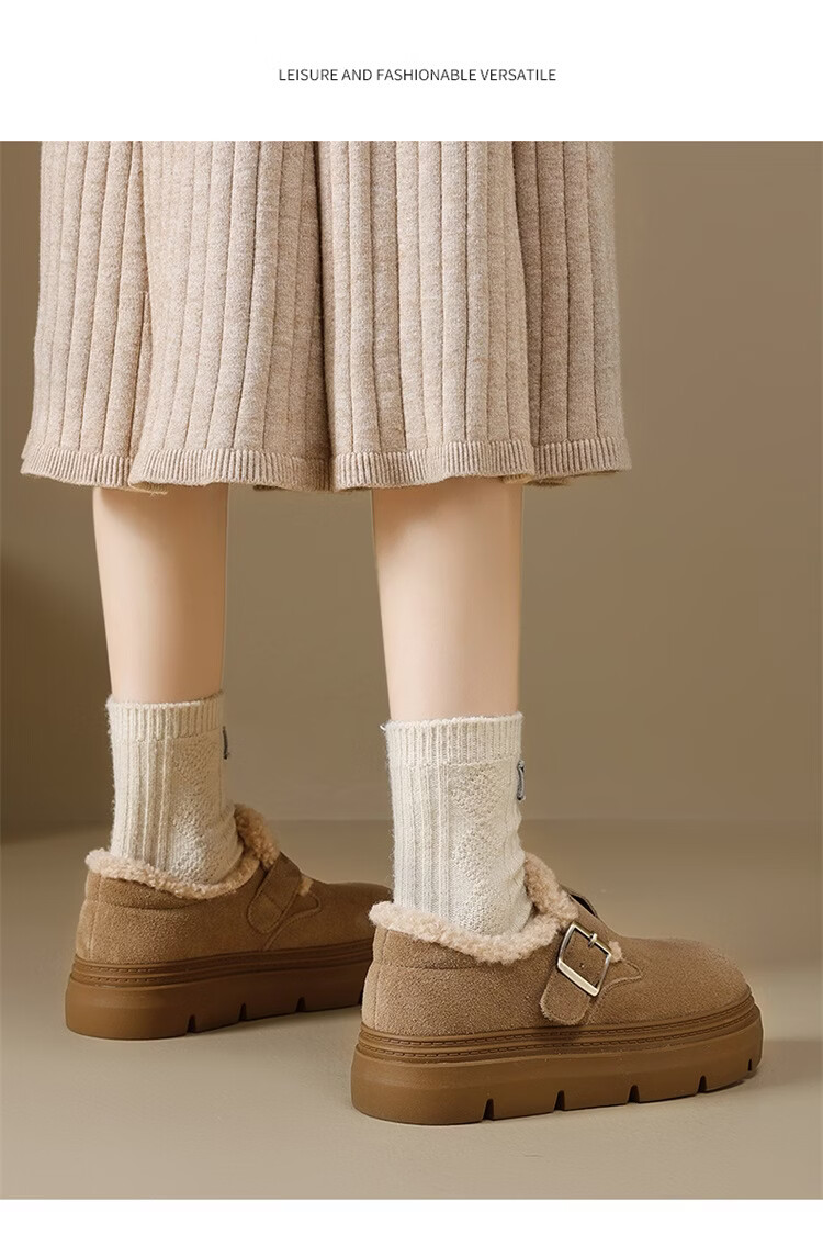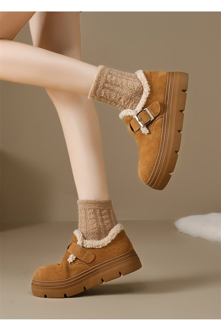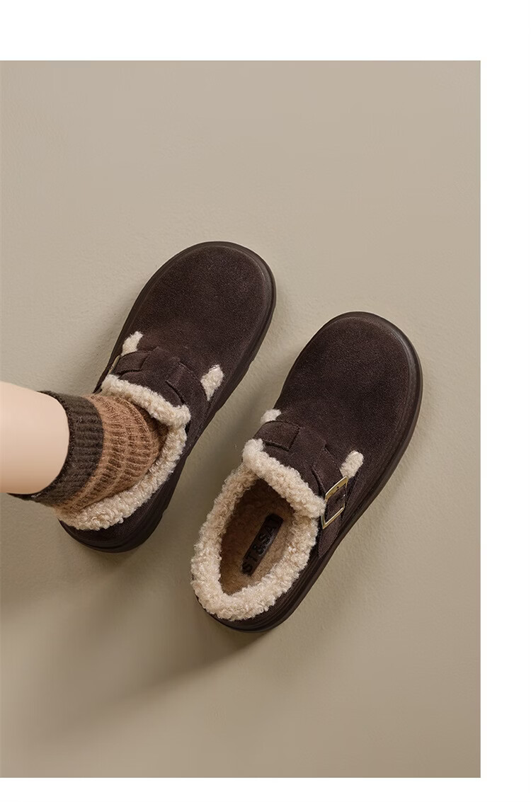 星期六加绒勃肯鞋女2025冬季新款厚底全包保暖毛毛面包棉鞋雪地靴 卡其色 【厚底增高】 35