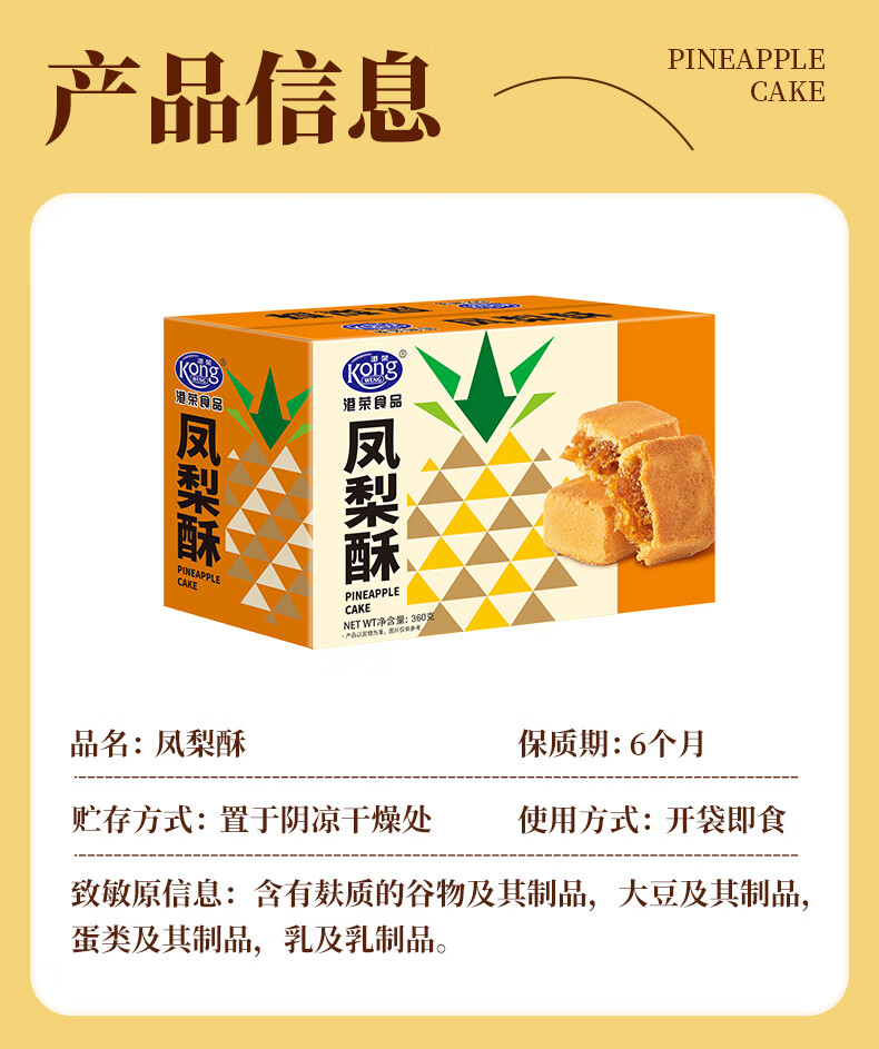 港荣凤梨酥早餐代餐下午茶休闲小吃夜宵速食中式糕点零食品 凤梨酥360g*2
