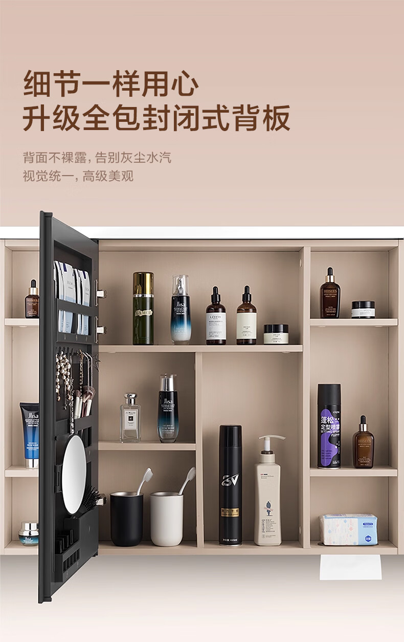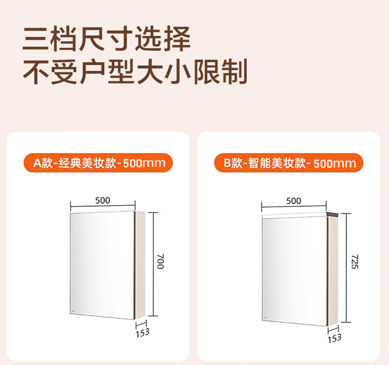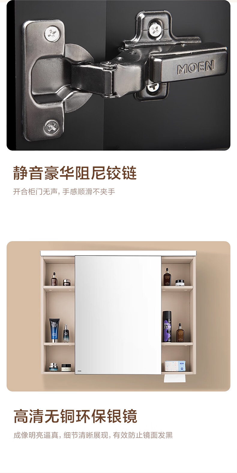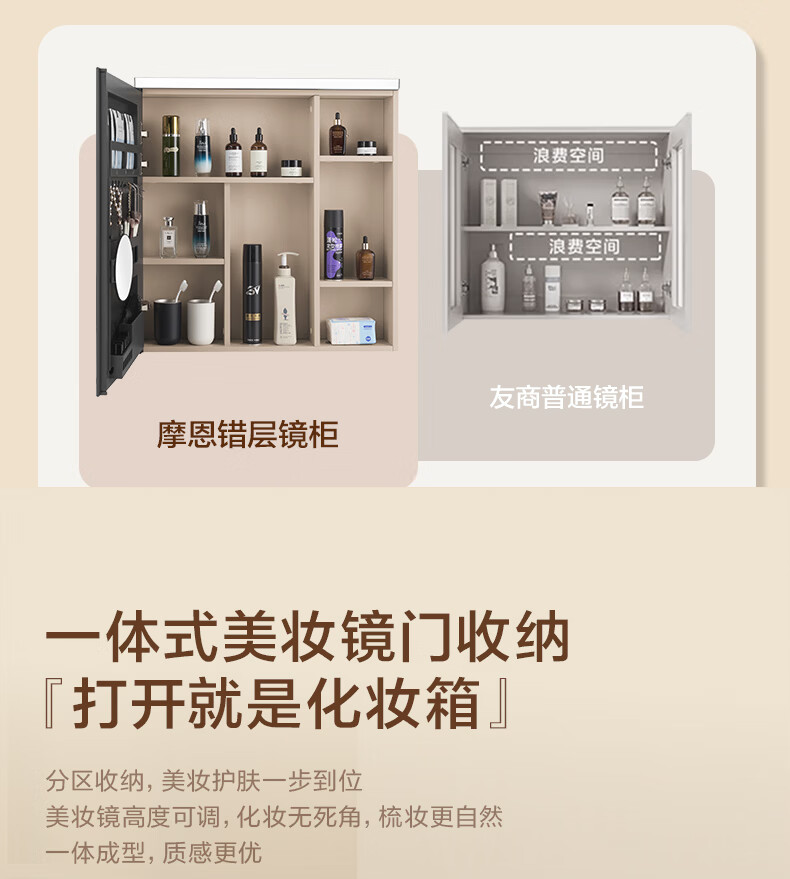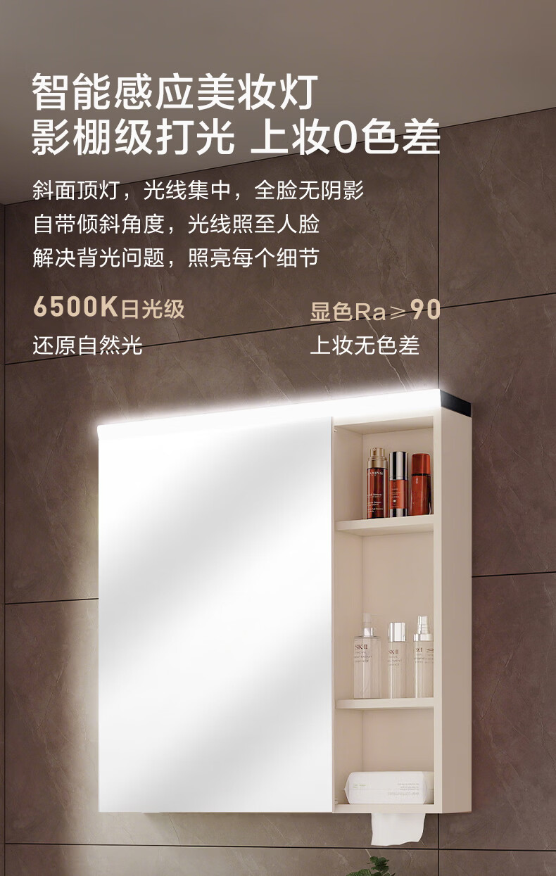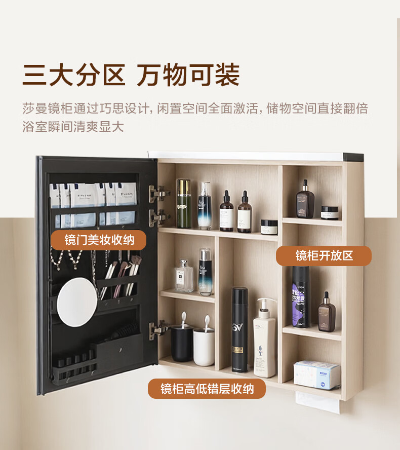 摩恩(MOEN)莎曼系列浴室智能镜柜美妆镜开放收纳卫生间带灯除雾挂墙式BC7506 500毫米莎曼镜柜|美妆版