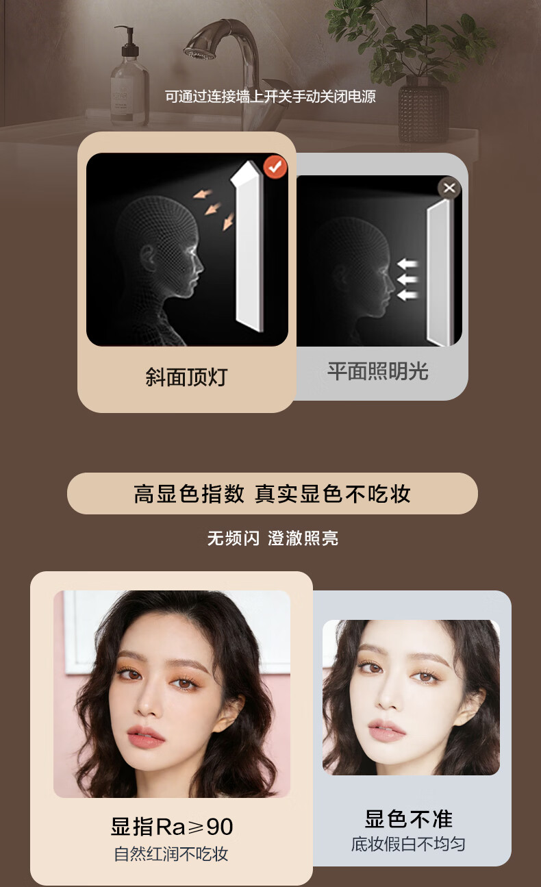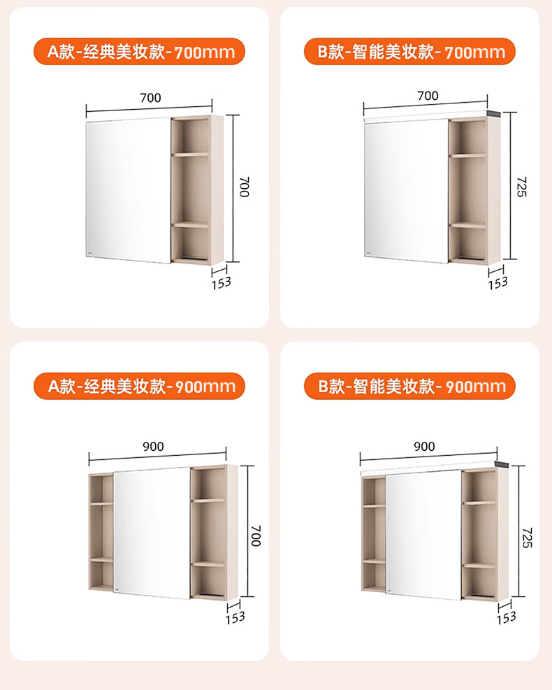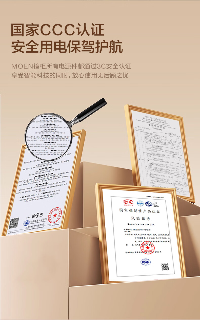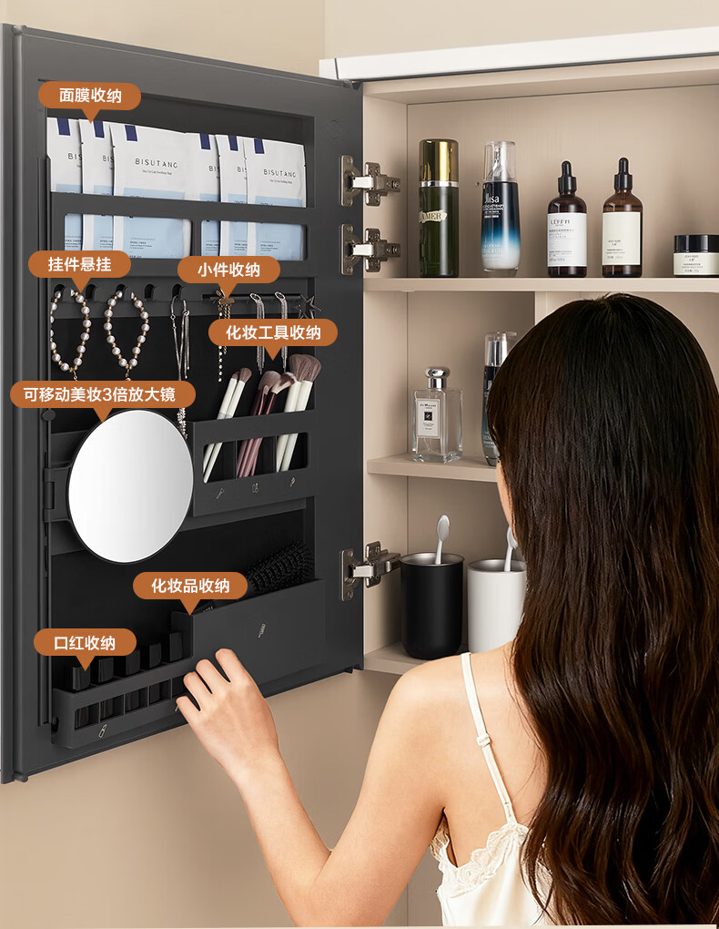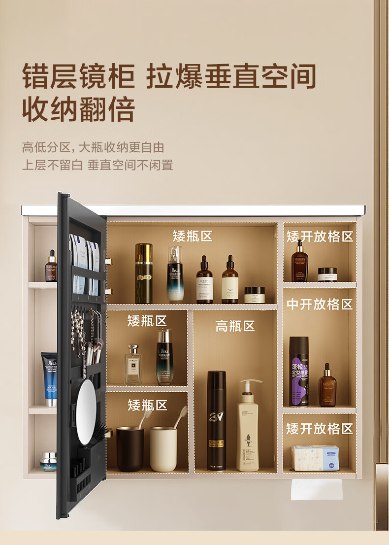 摩恩(MOEN)莎曼系列浴室智能镜柜美妆镜开放收纳卫生间带灯除雾挂墙式BC7506 500毫米莎曼镜柜|美妆版