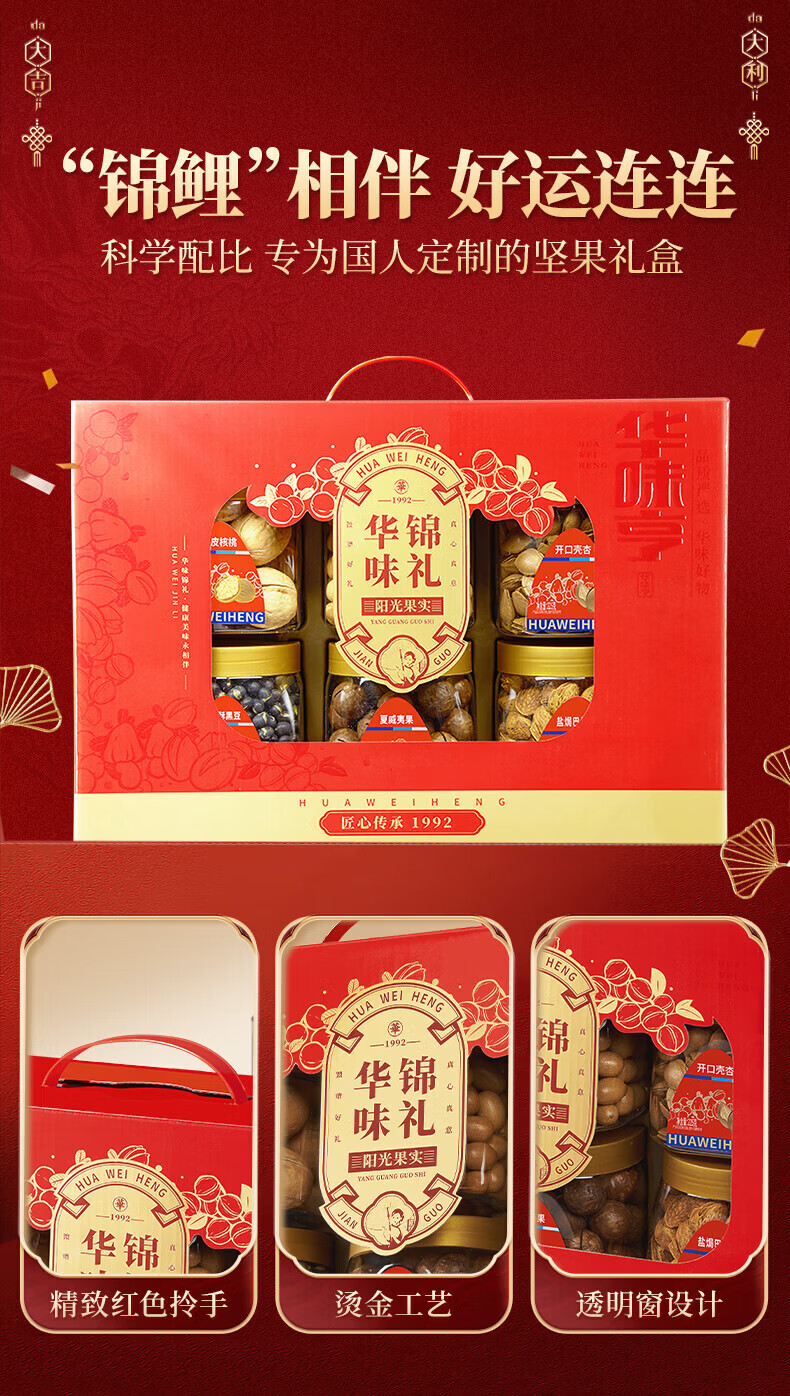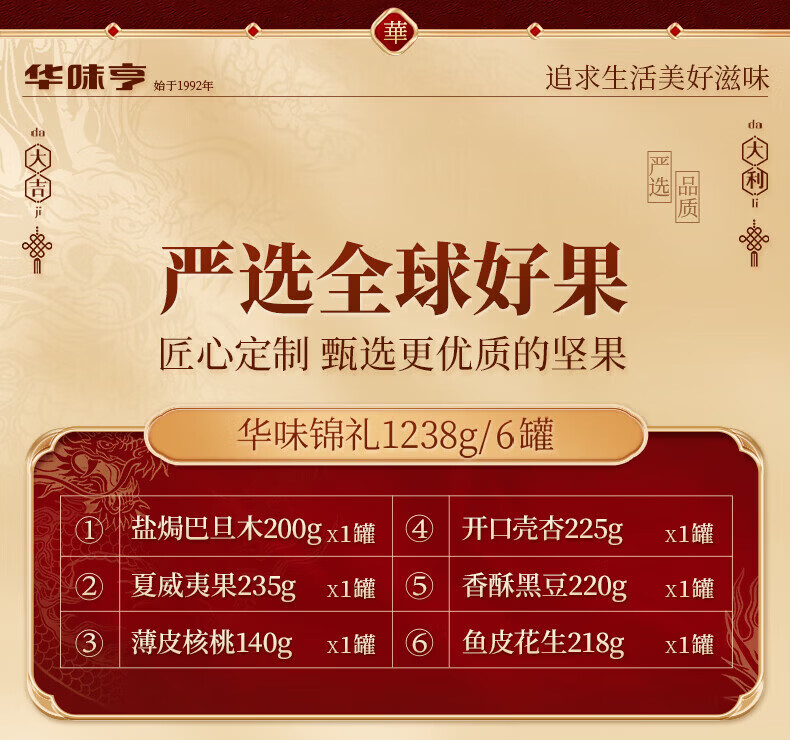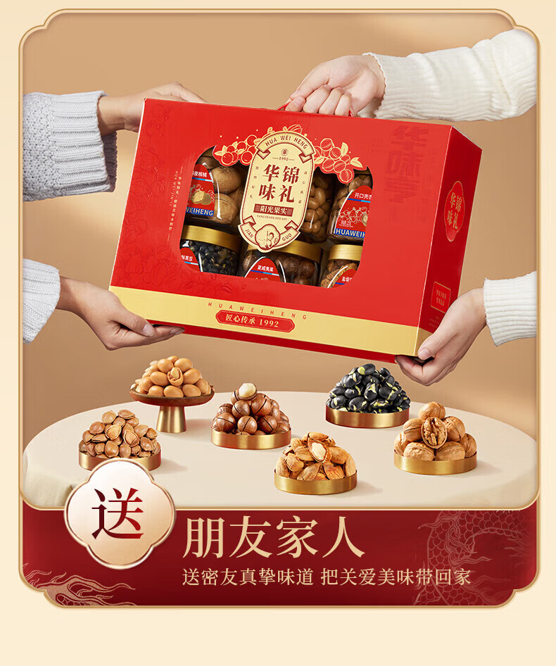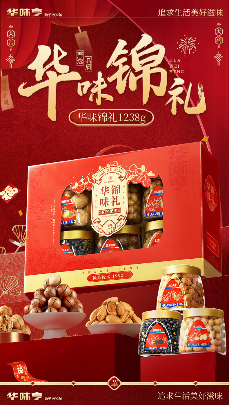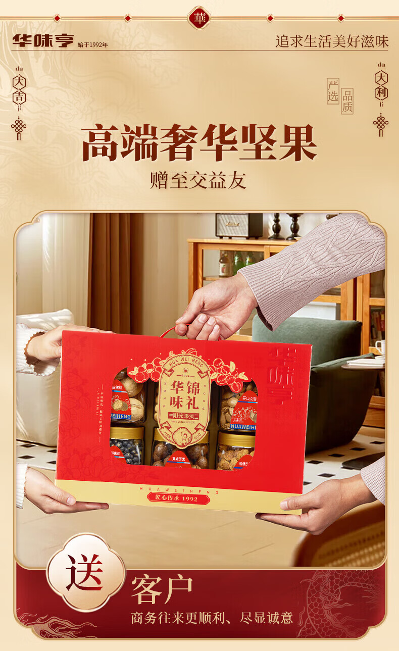 华味亨华味锦礼 坚果礼盒1238g/6罐 团购送礼坚果炒货夏威夷果休闲零食 1238g年货团购礼盒