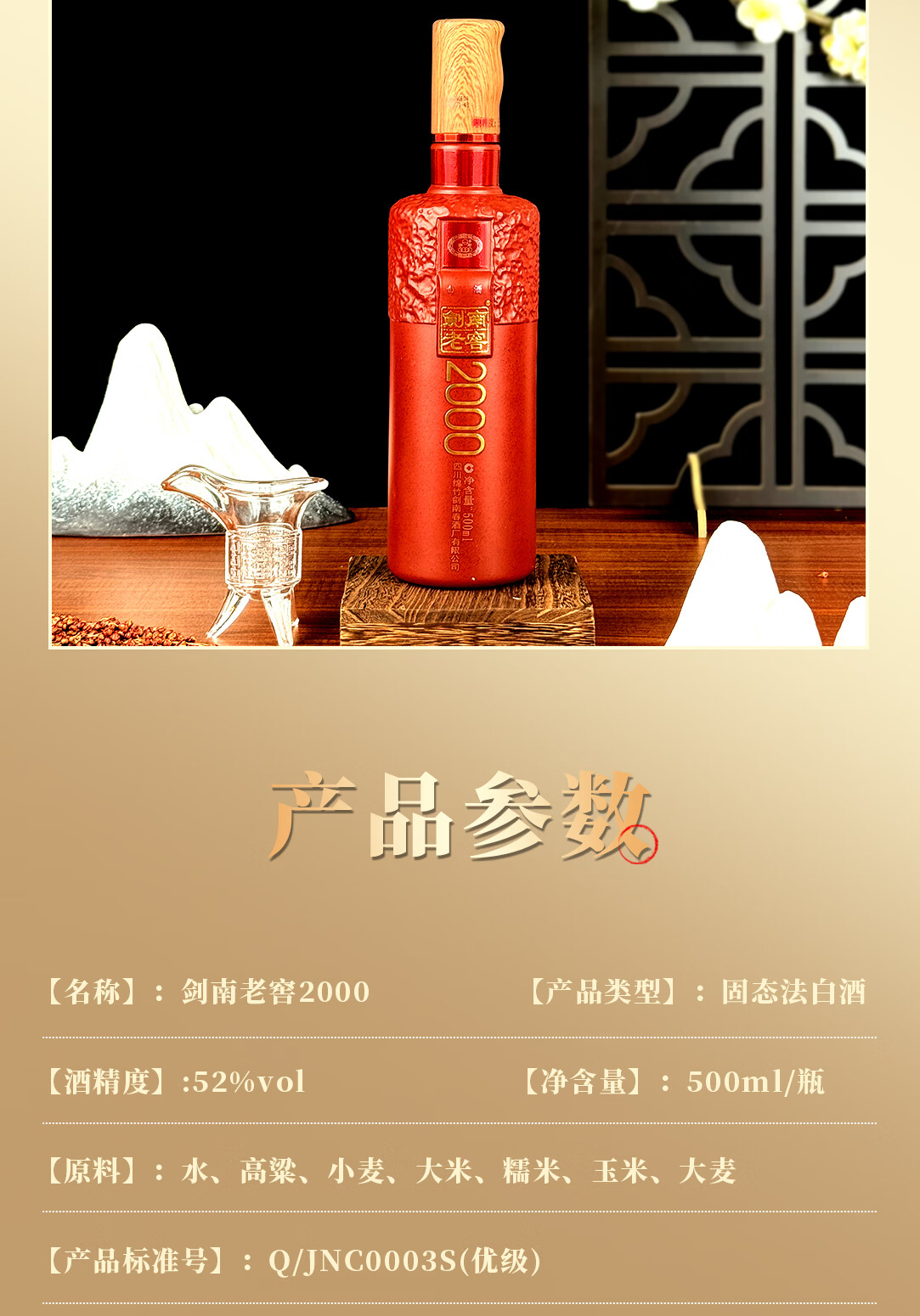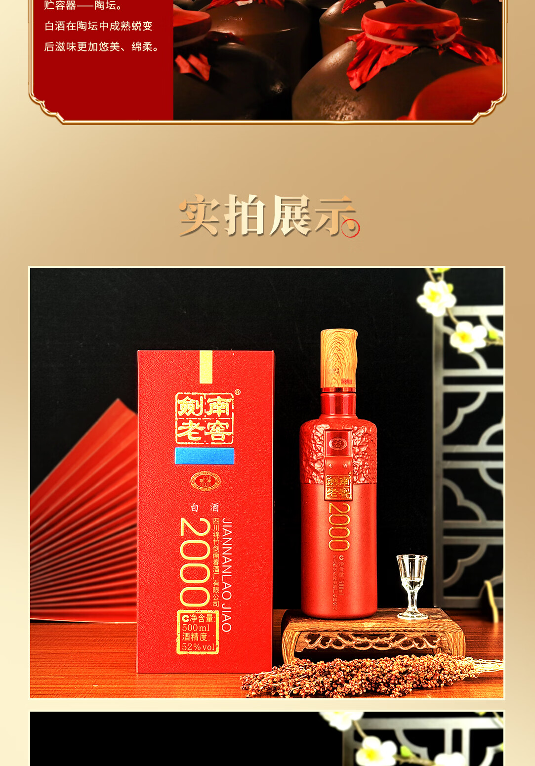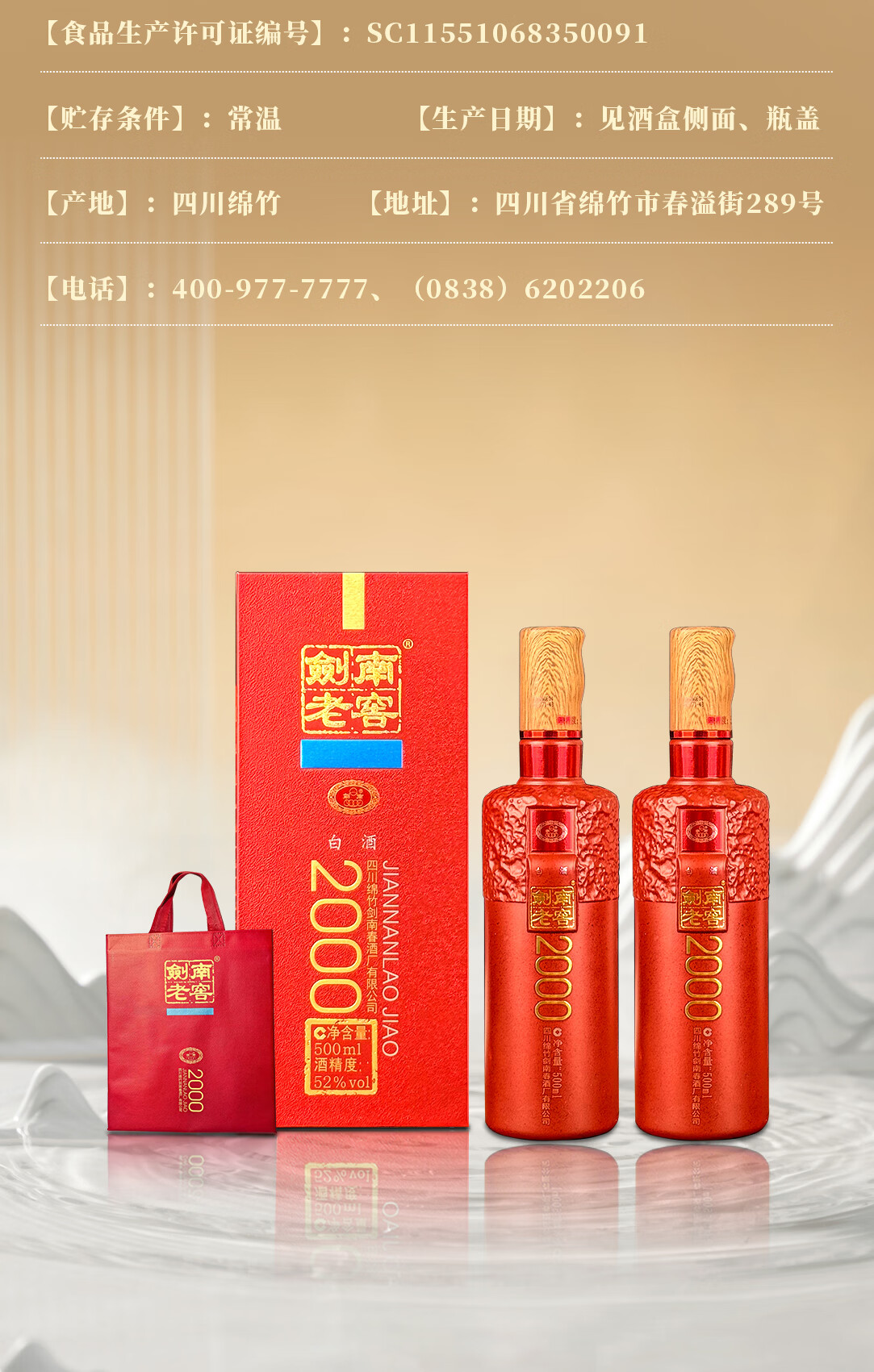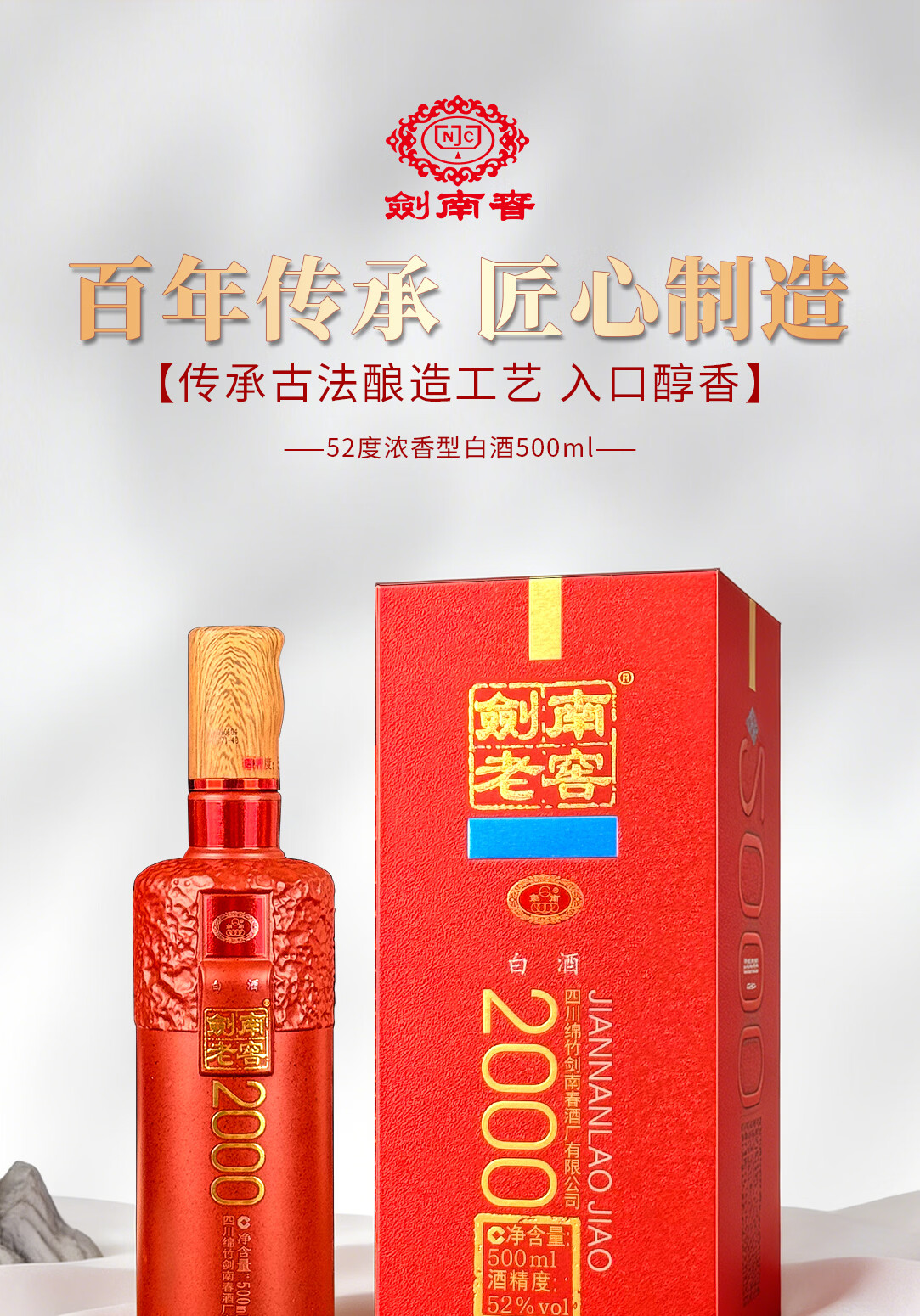 剑南春剑南老窖2000 纯粮优级浓香型白酒 年货送礼收藏 52度 500mL 2瓶 双瓶装 赠礼袋