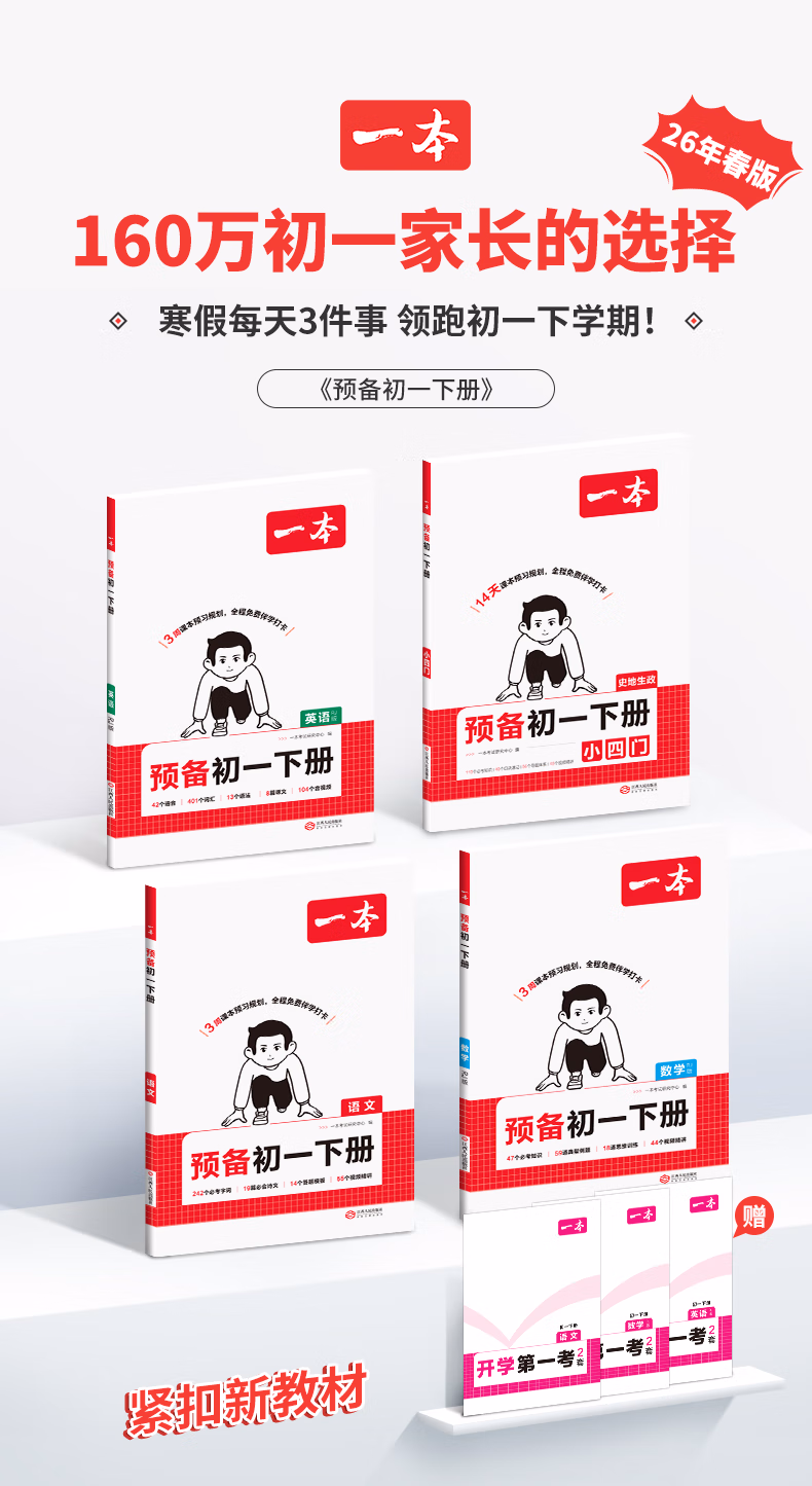 【2026春新版】一本预备初一下册 初中七年级下册语文数学英语小四门课本预习笔记寒假衔接作业语数英基础知识练习册初中知识必刷题初中教辅书 语文+数学(人教)+英语+小四门 4本套 预备初一下册