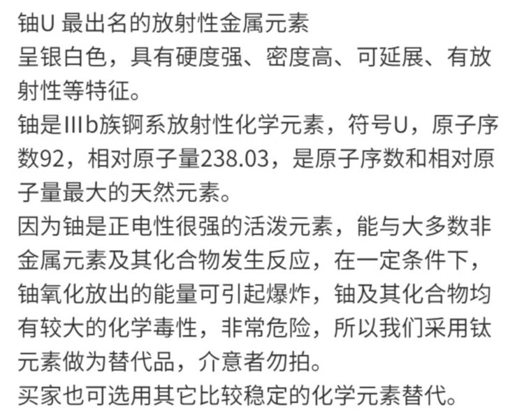 铀235模型238立方体标本矿石元素周期表实物摆件学习创意礼物 10mm英文钛版+盒