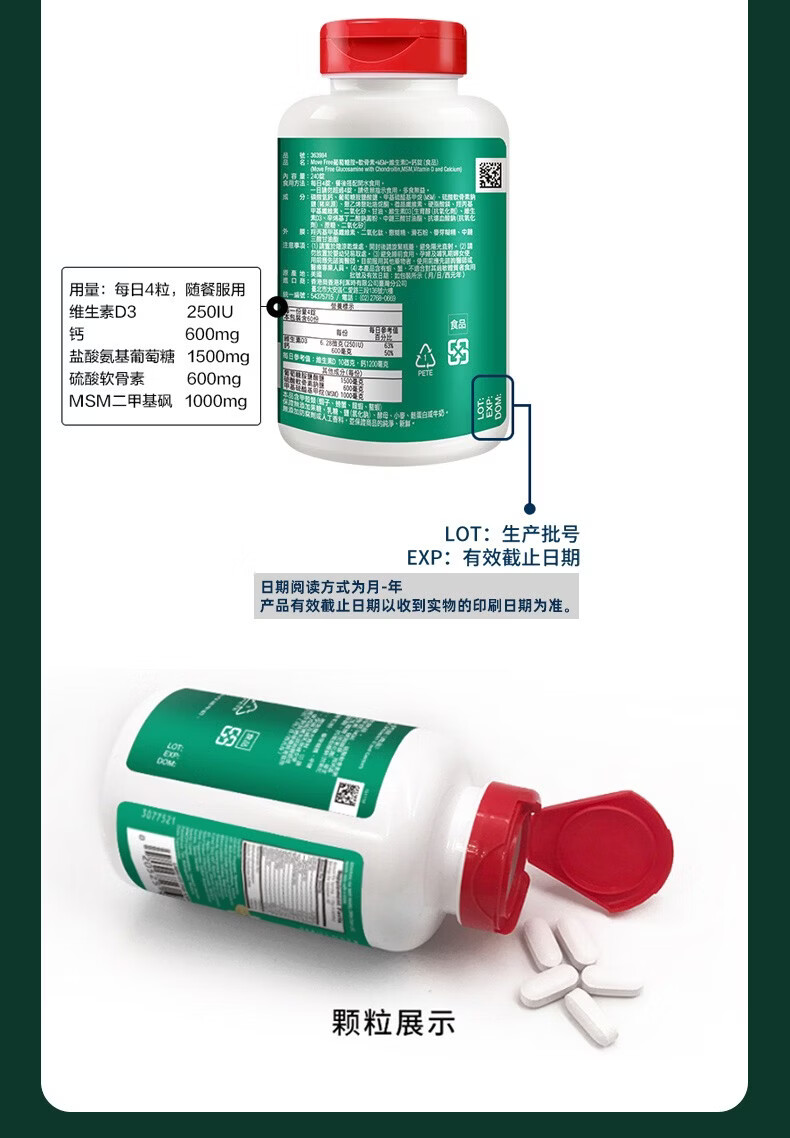 Move Free益节UC2骨胶原75粒 美国进口 胶原软骨素蛋白维骨力 成人中老年 【氨糖搭档】专利骨胶原 75粒*1瓶