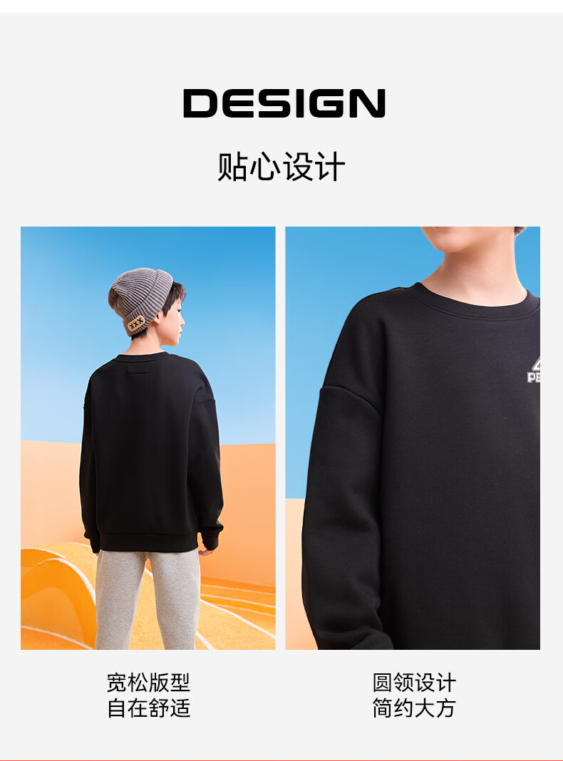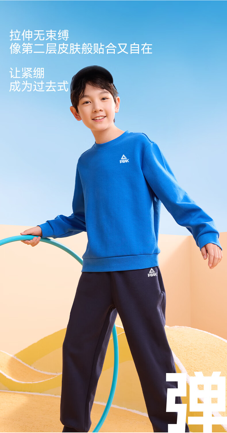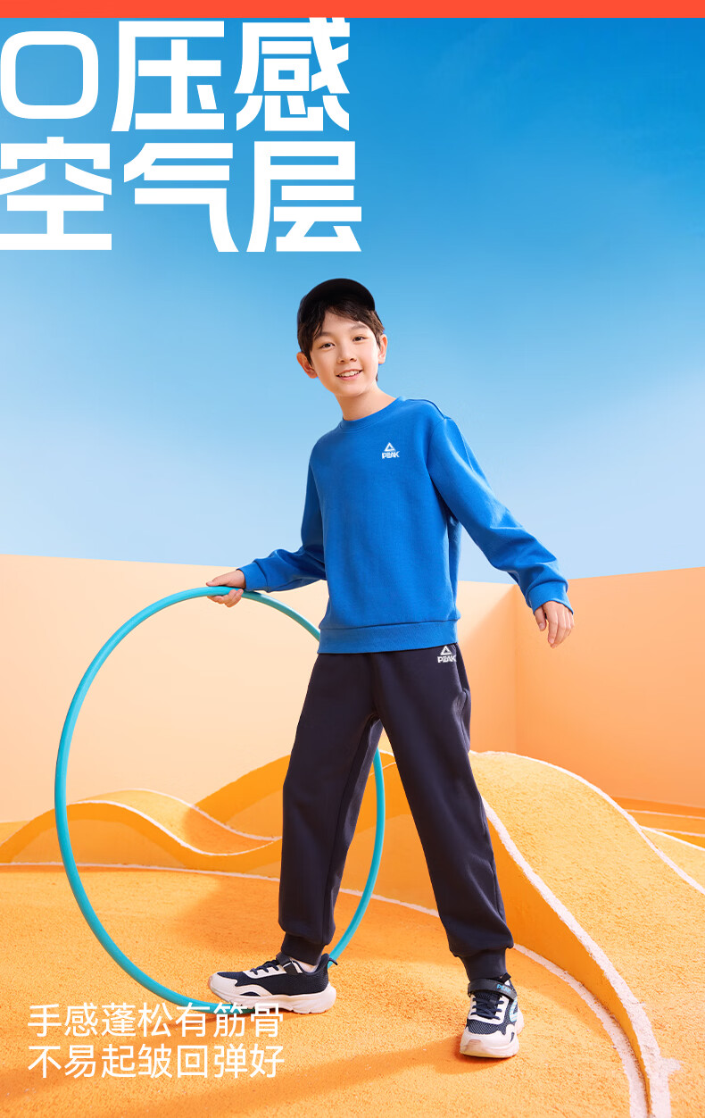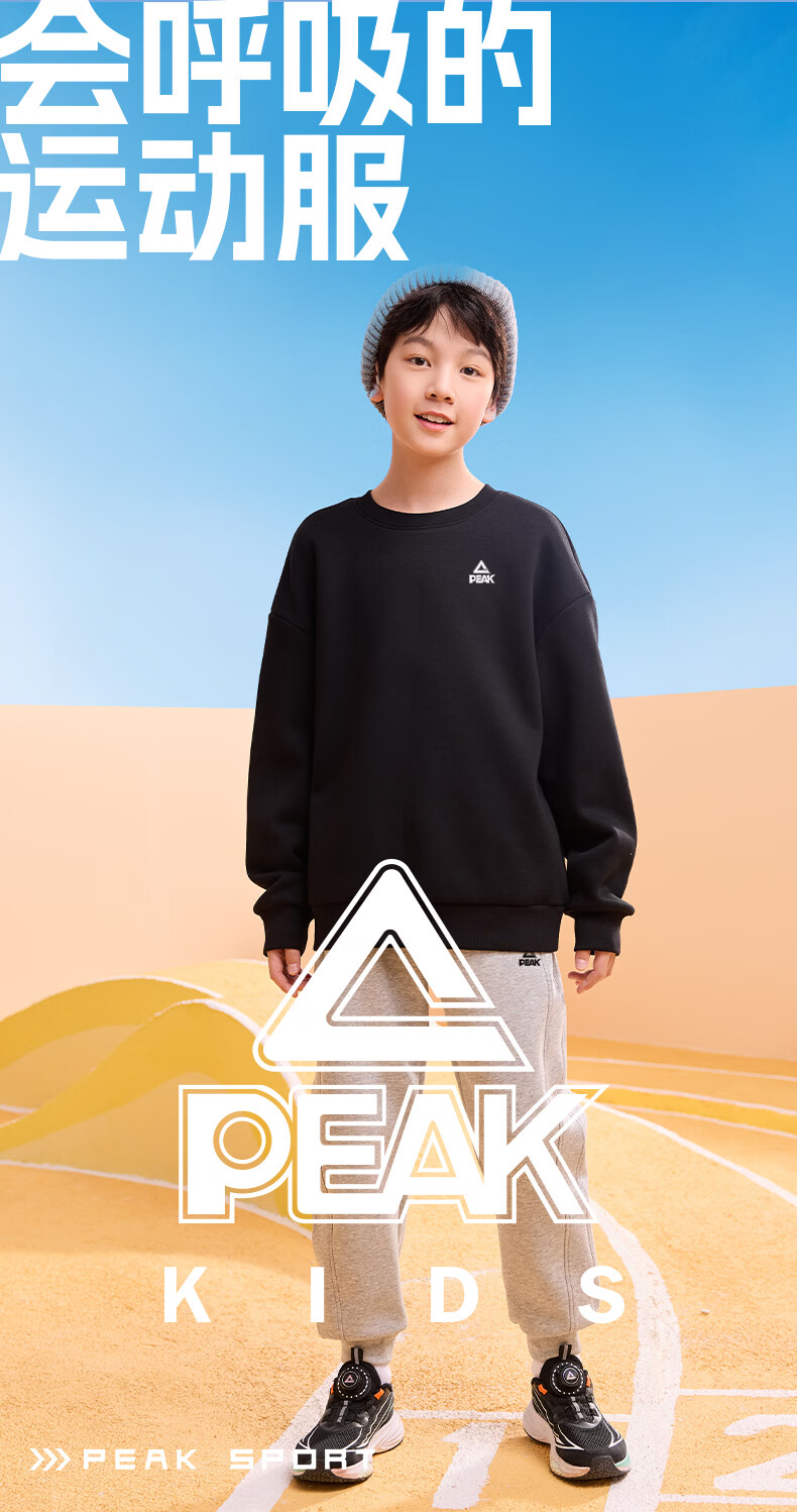 匹克童装男童运动套装春秋款2026新款儿童卫衣薄款春装中大童长袖衣服 暖橘/PK标白硅胶K-黑/PK标白硅胶K 140