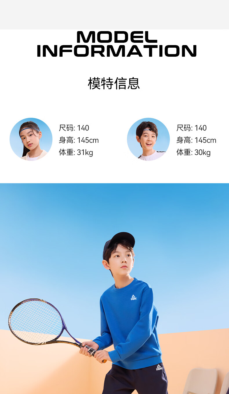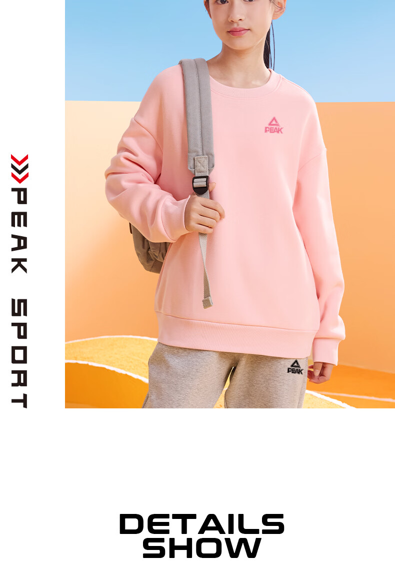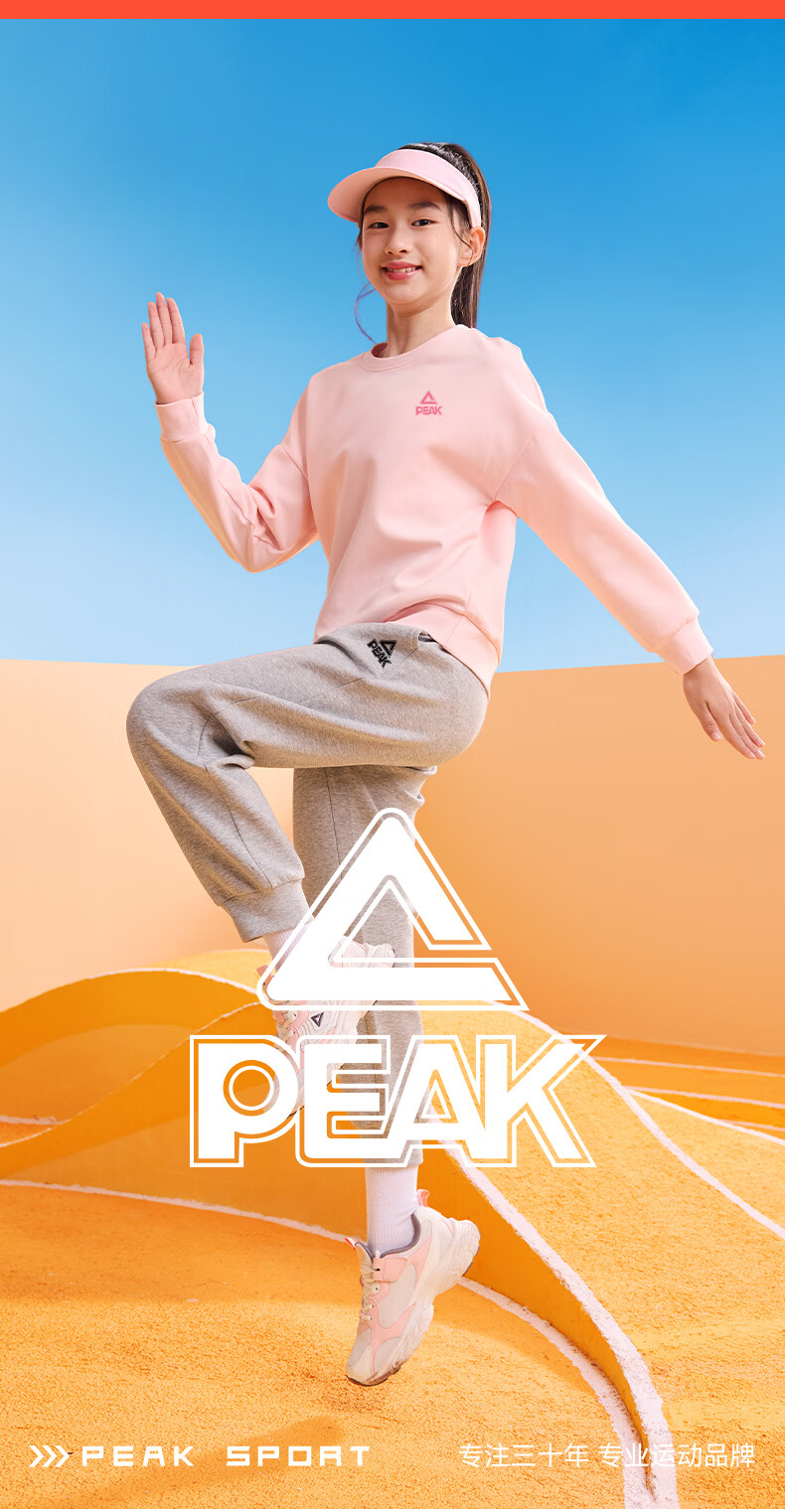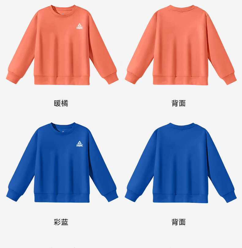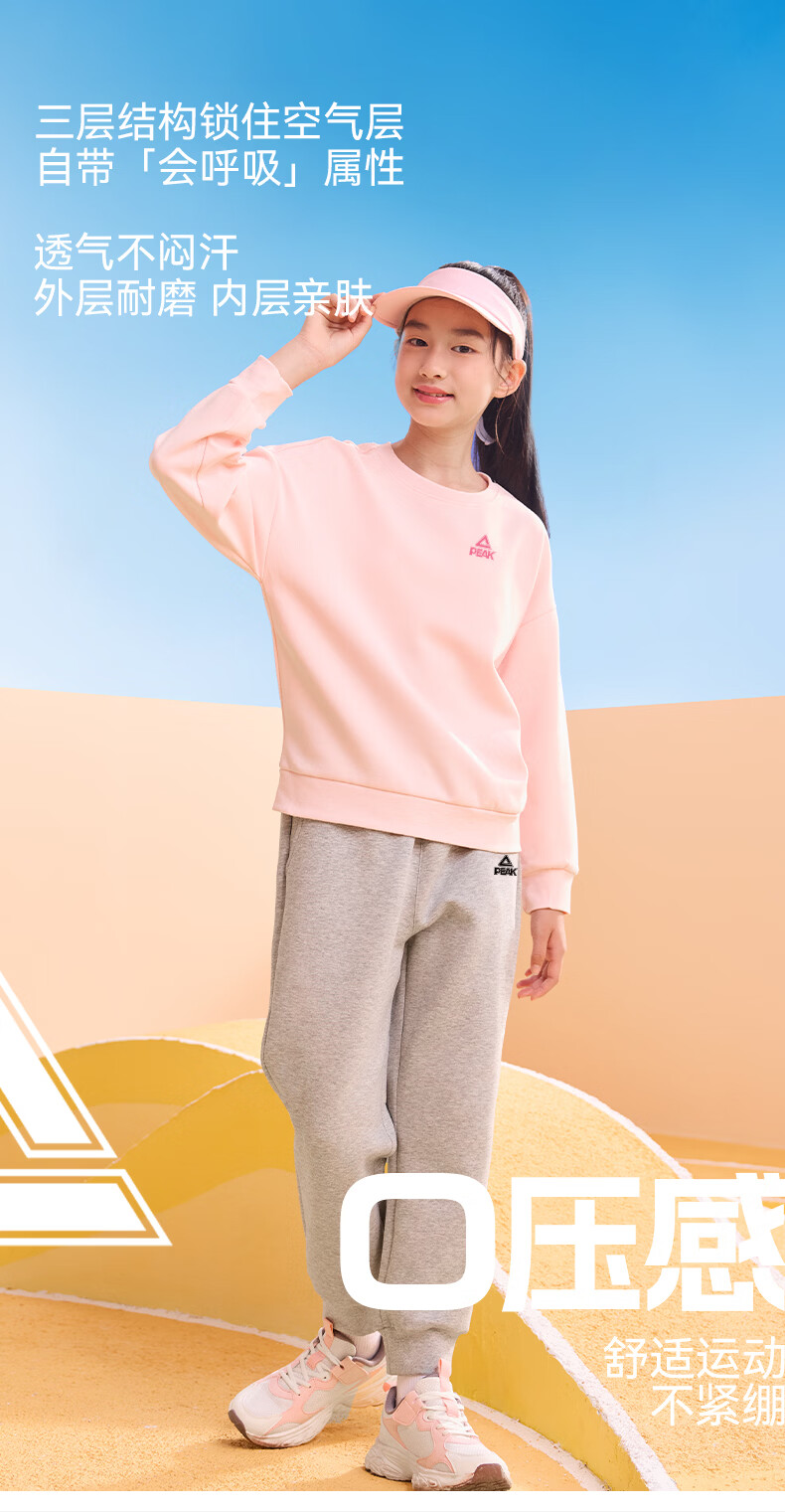 匹克童装男童运动套装春秋款2026新款儿童卫衣薄款春装中大童长袖衣服 暖橘/PK标白硅胶K-黑/PK标白硅胶K 140