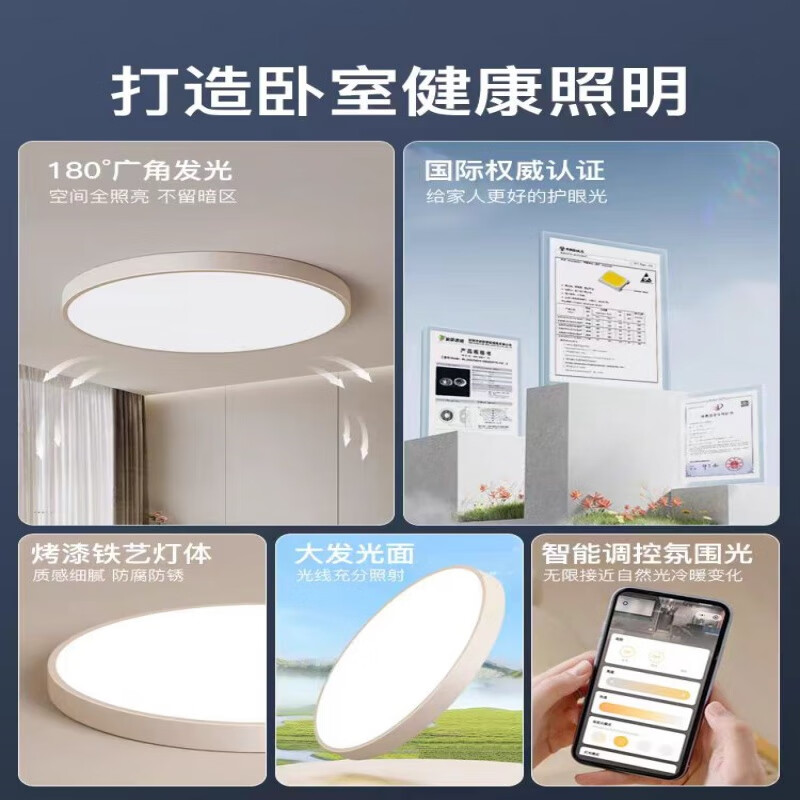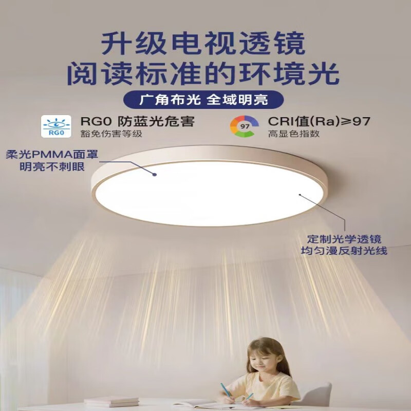 米家军全光谱米家APP智能护眼吸顶灯新款卧室护眼灯LED圆方形已接入米家 金属款-圆60CM(米家智能全光谱)