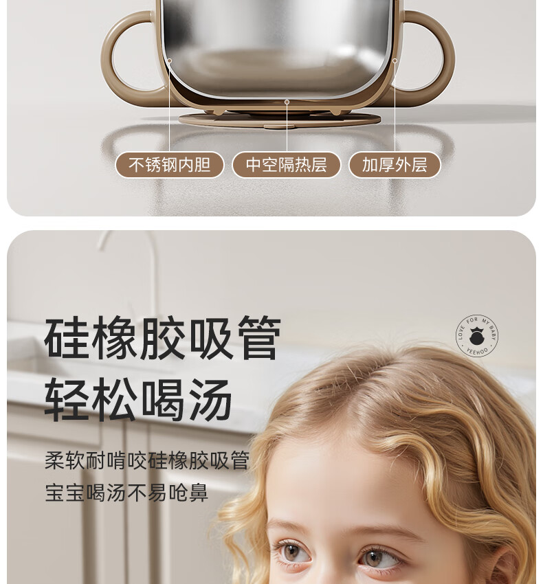 英氏(YEEHOO)宝宝吸管碗喝汤婴儿专用辅食碗吸盘碗三合一儿童吃饭餐具